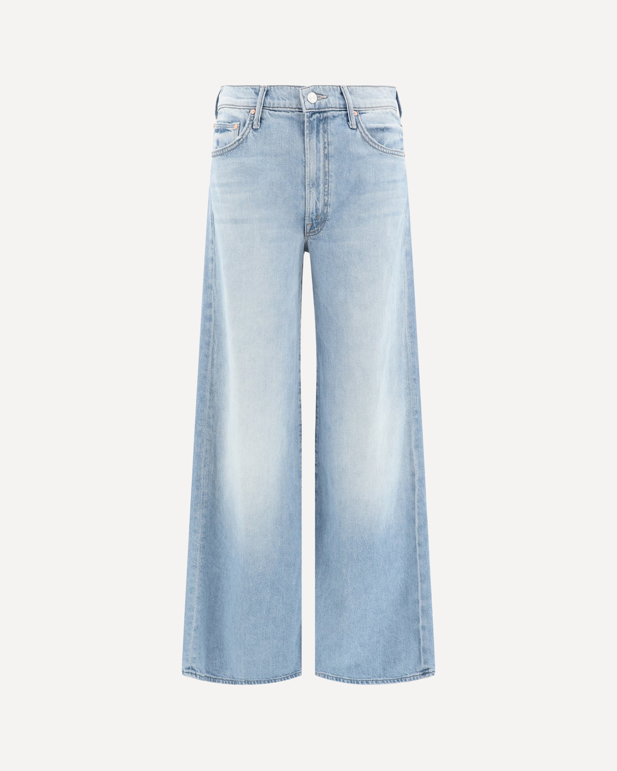 Mother Denim's Undercover Jeans, with their wide-leg design, are a modern, sophisticated fit. The loose, relaxed fit creates a sleek and comfortable silhouette. The five-pocket style is functional, while the front zipper-and-button closure provides practicality. Belt loops on the waistband offer the option to customize the look with a belt, while the high waist enhances the figure and gives a lengthening effect.