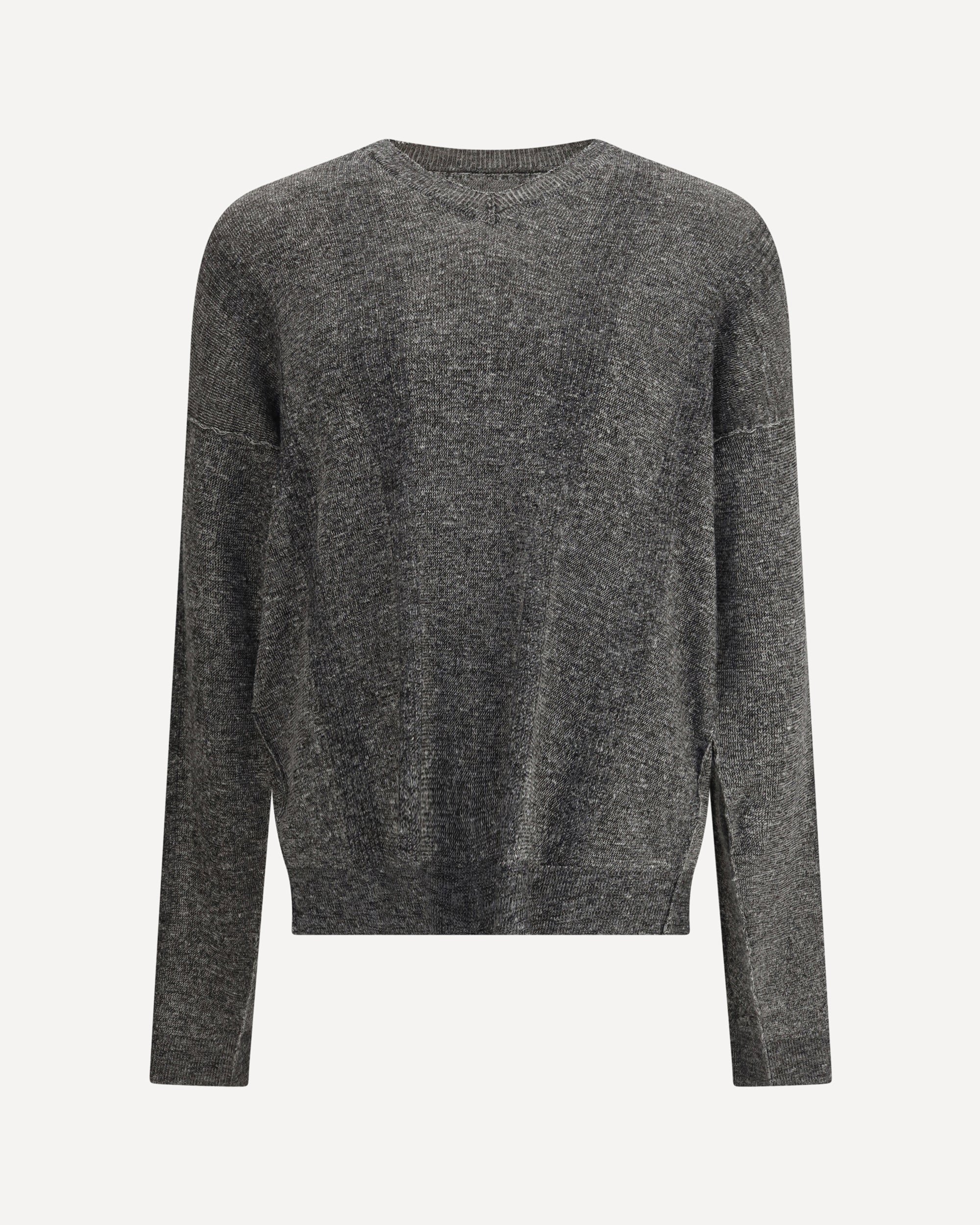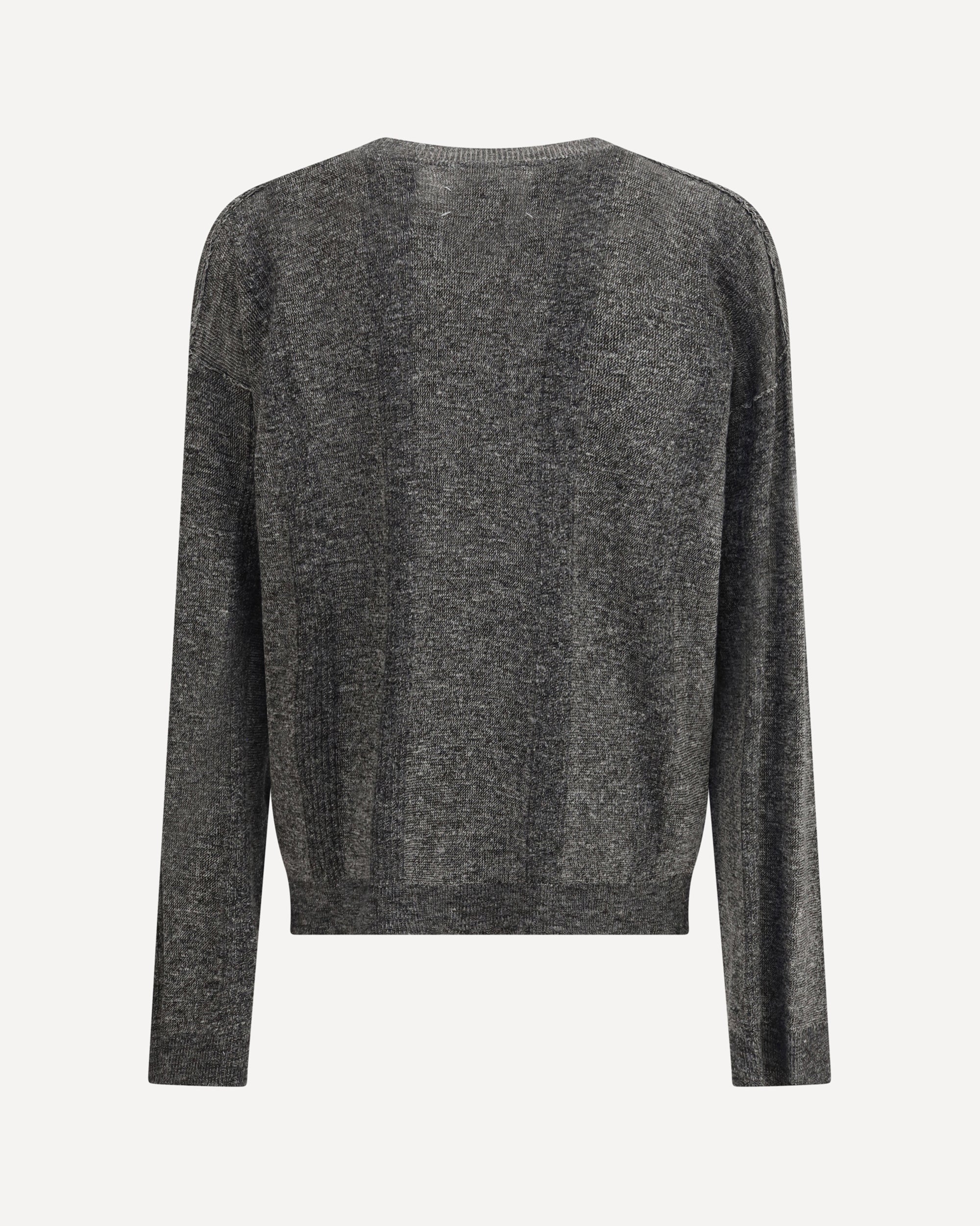 Linen and cotton mélange V-neck oversized Sweater by Maison Margiela, perfect for a relaxed yet refined style. Featuring a mélange pattern, it features a V-neck on the front, brand-typical exposed seams, and ribbed cuffs and hem that define the structure. The oversized fit gives a contemporary and comfortable feel, ideal for casual yet distinctive looks.
