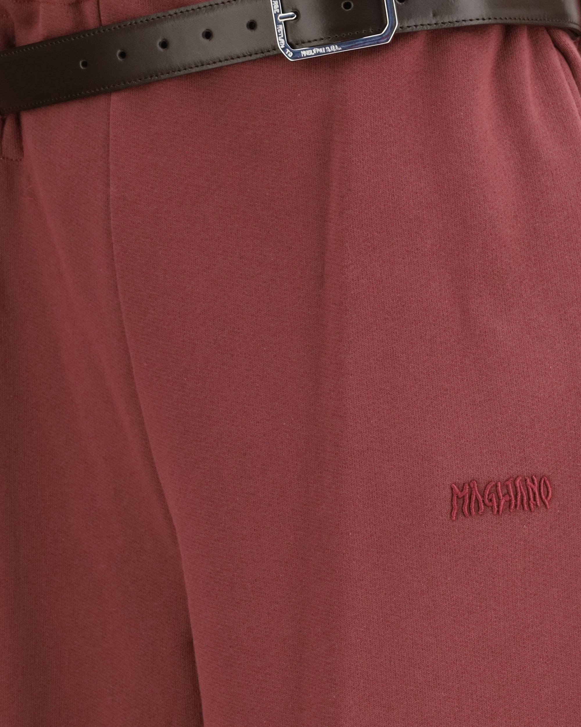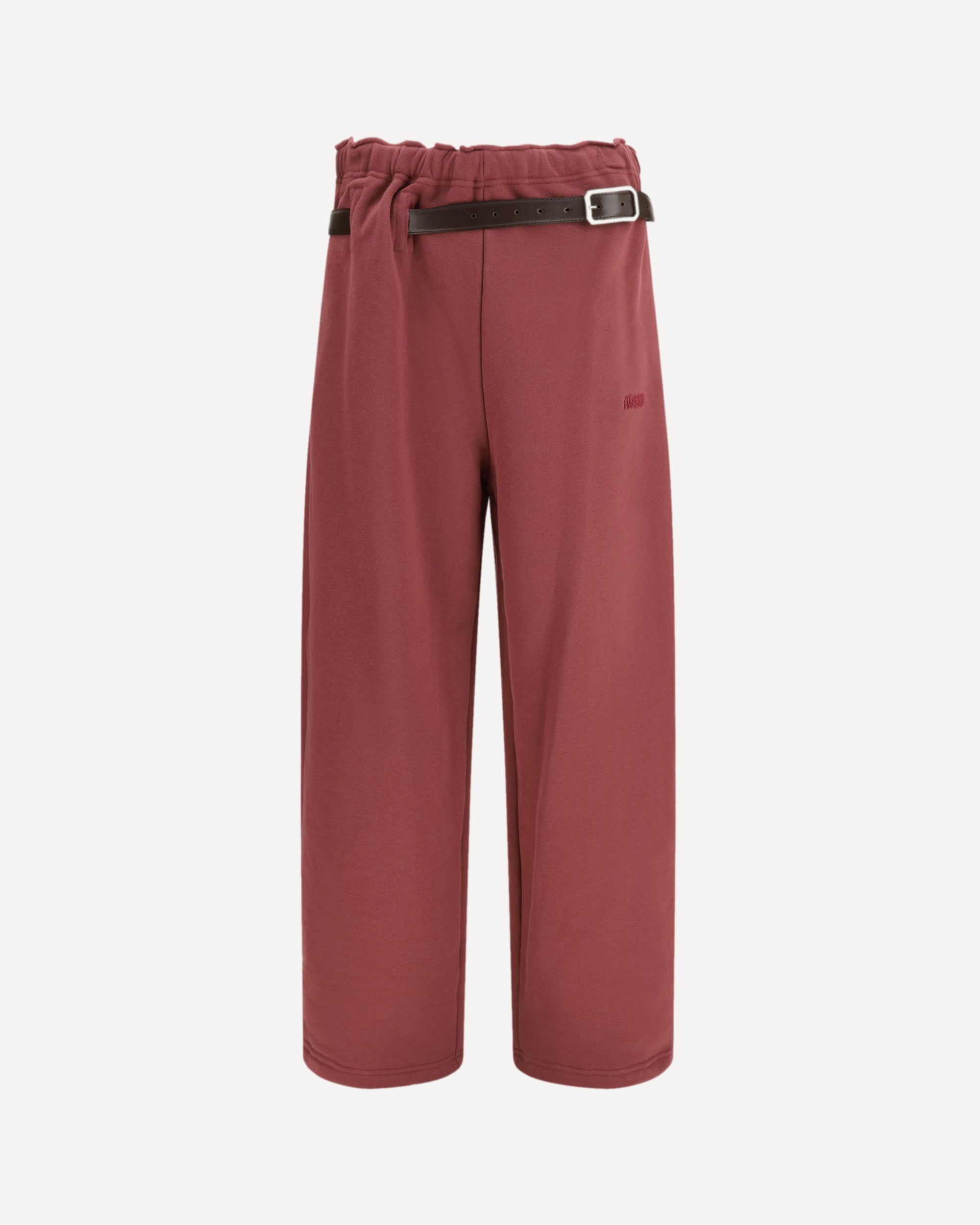 The Buckle-belt Track Pants by Magliano reinterpret sportswear through a conceptual and contemporary lens. Designed with an elasticated waistband, they feature an integrated belt detail that creates an unexpected contrast between functionality and stylistic research. A drawstring fastening allows for adjustable comfort, while the fluid silhouette follows the body with ease, maintaining a relaxed and clean aesthetic. A pair of trousers created for urban styling that merges comfort with experimental identity.