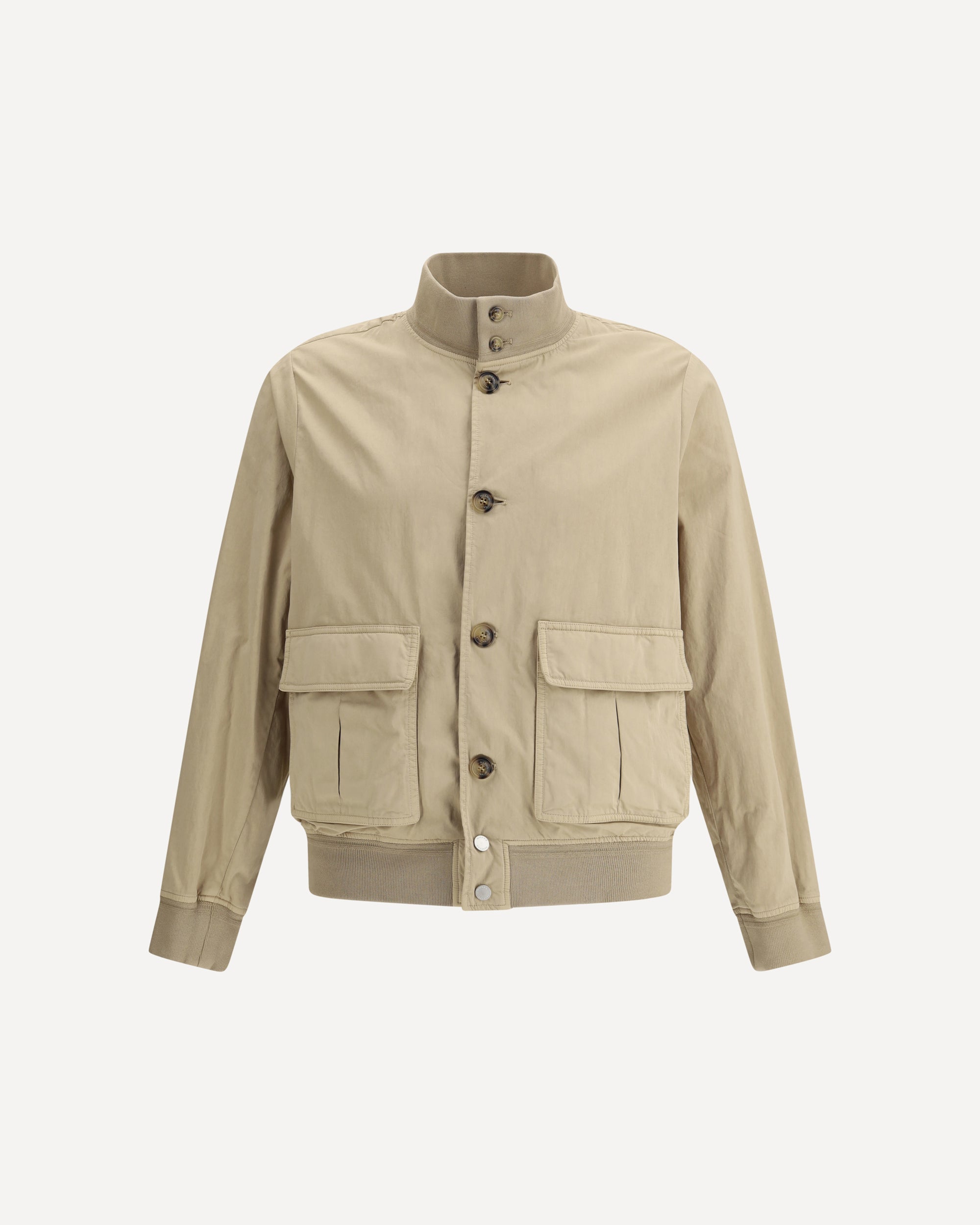 Valstar's Valstarino Jacket is an icon of casual elegance, a modern reinterpretation of the classic bomber jacket. Made of high-quality cotton, it features a high collar and a front button closure, enhancing its refined style. The design is enhanced by two flap welt pockets applied to the front and two side slit pockets, offering practicality without sacrificing elegance. Ribbed cuffs and hem ensure a snug and comfortable fit, emphasizing the garment's silhouette.