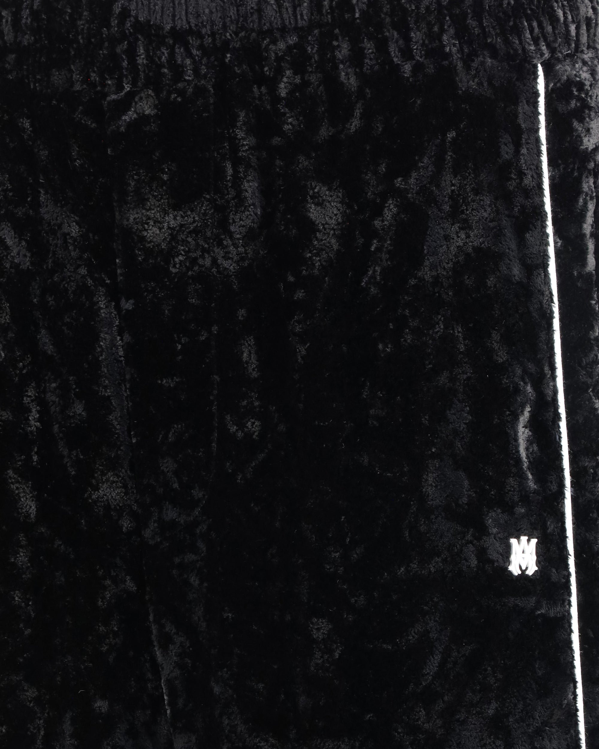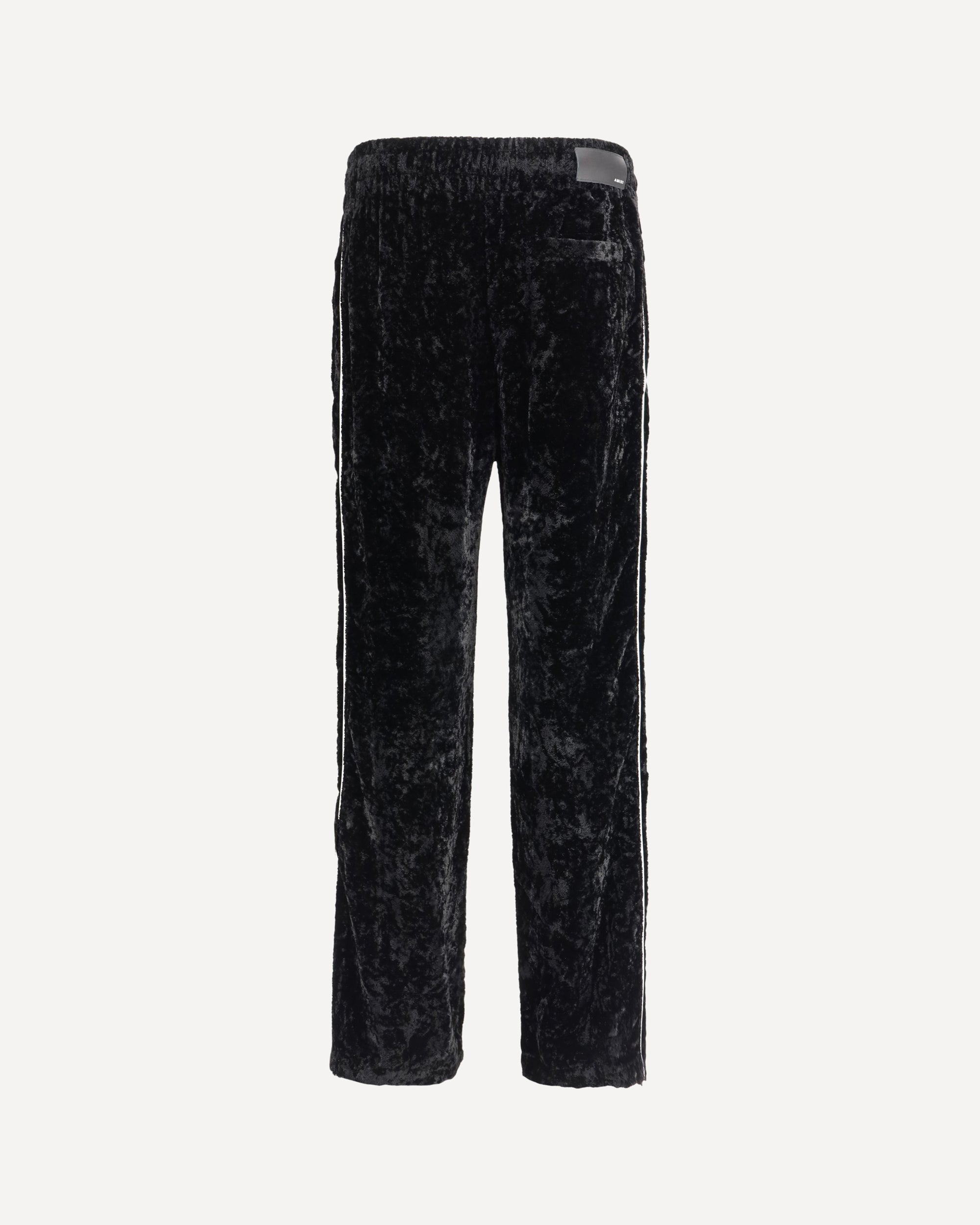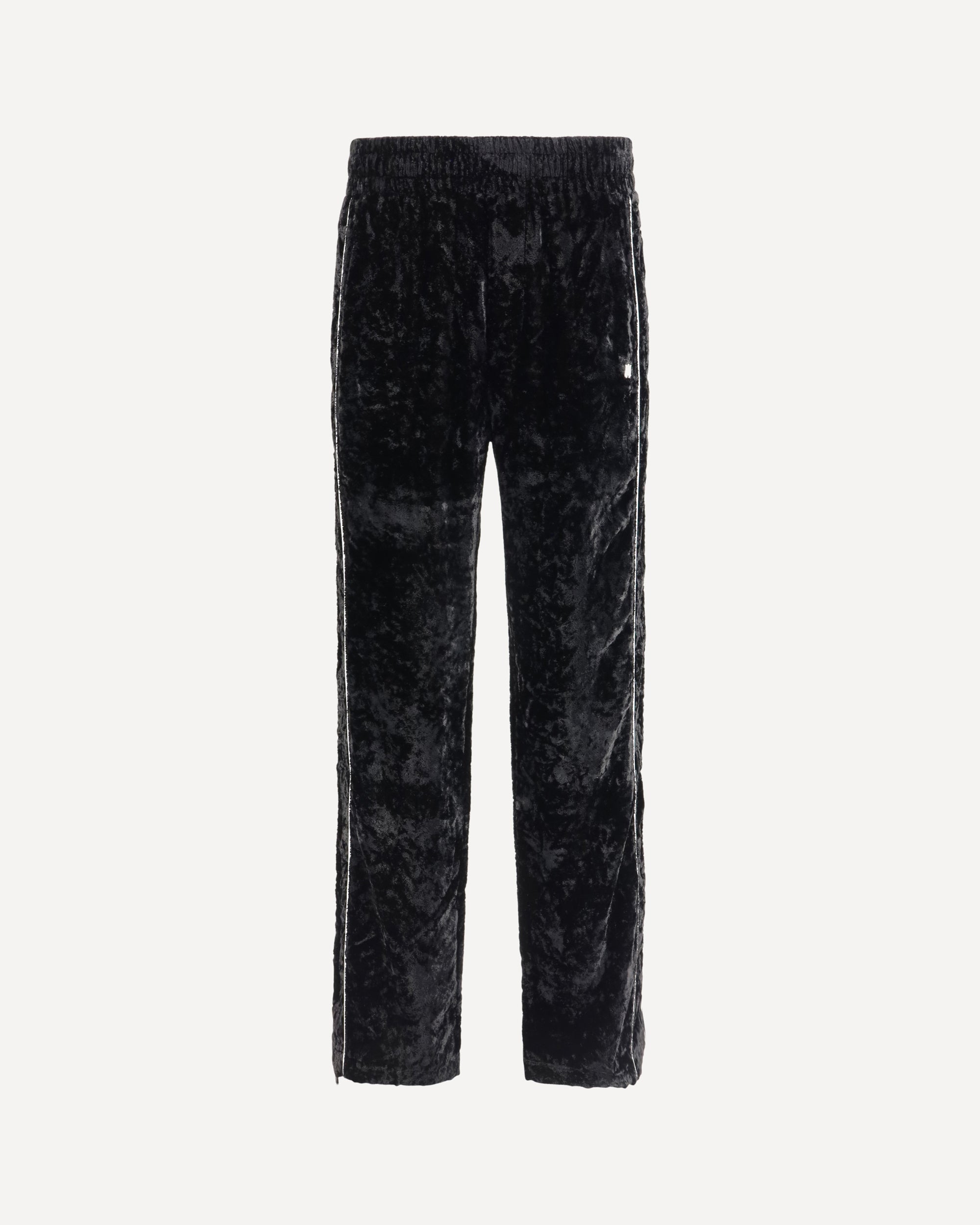 Amiri's Velvet Sweatpants combine comfort and style with a touch of urban elegance. Made of soft velvet, they feature an adjustable elastic waistband with drawstring for a customized fit. The design includes two side slit pockets and a patch pocket on the back panel, offering practicality and functionality. The hem is adjustable via an internal drawstring, allowing you to adjust the fit to your style. The distinctive detail is the applied logo patch on the front, adding a touch of authenticity to the garment.