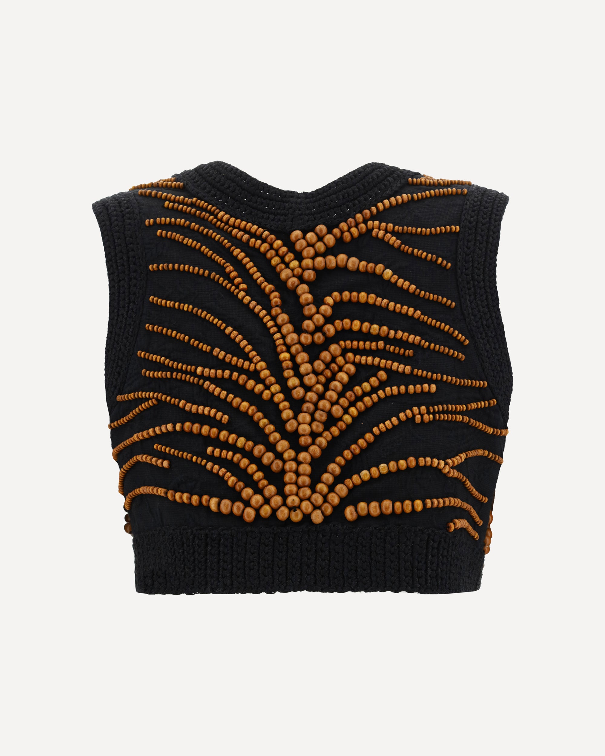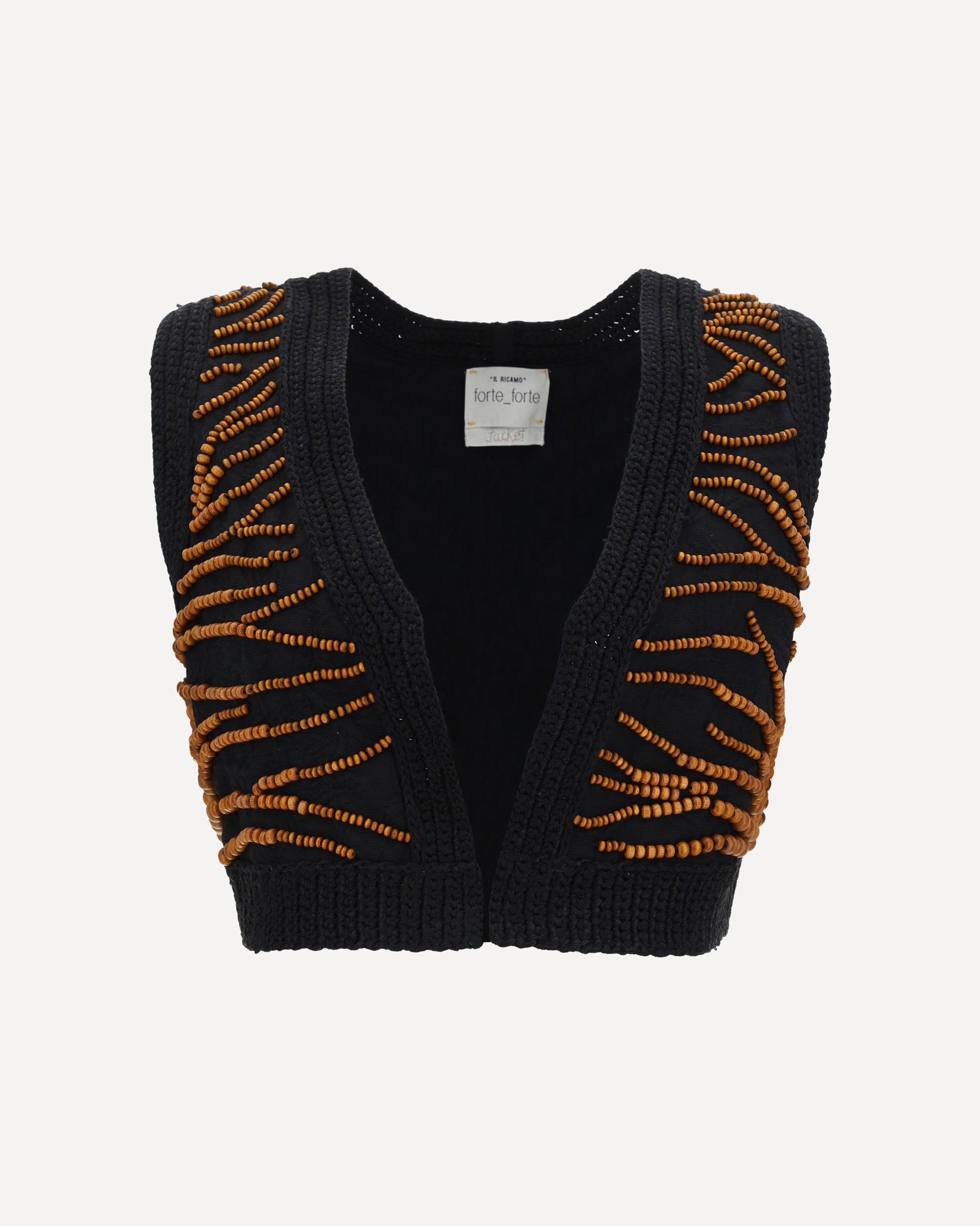 Cotton Vest by Forte_Forte, cropped pattern, V-neck front, all-over contrasting applique bead detail, regular fit.
