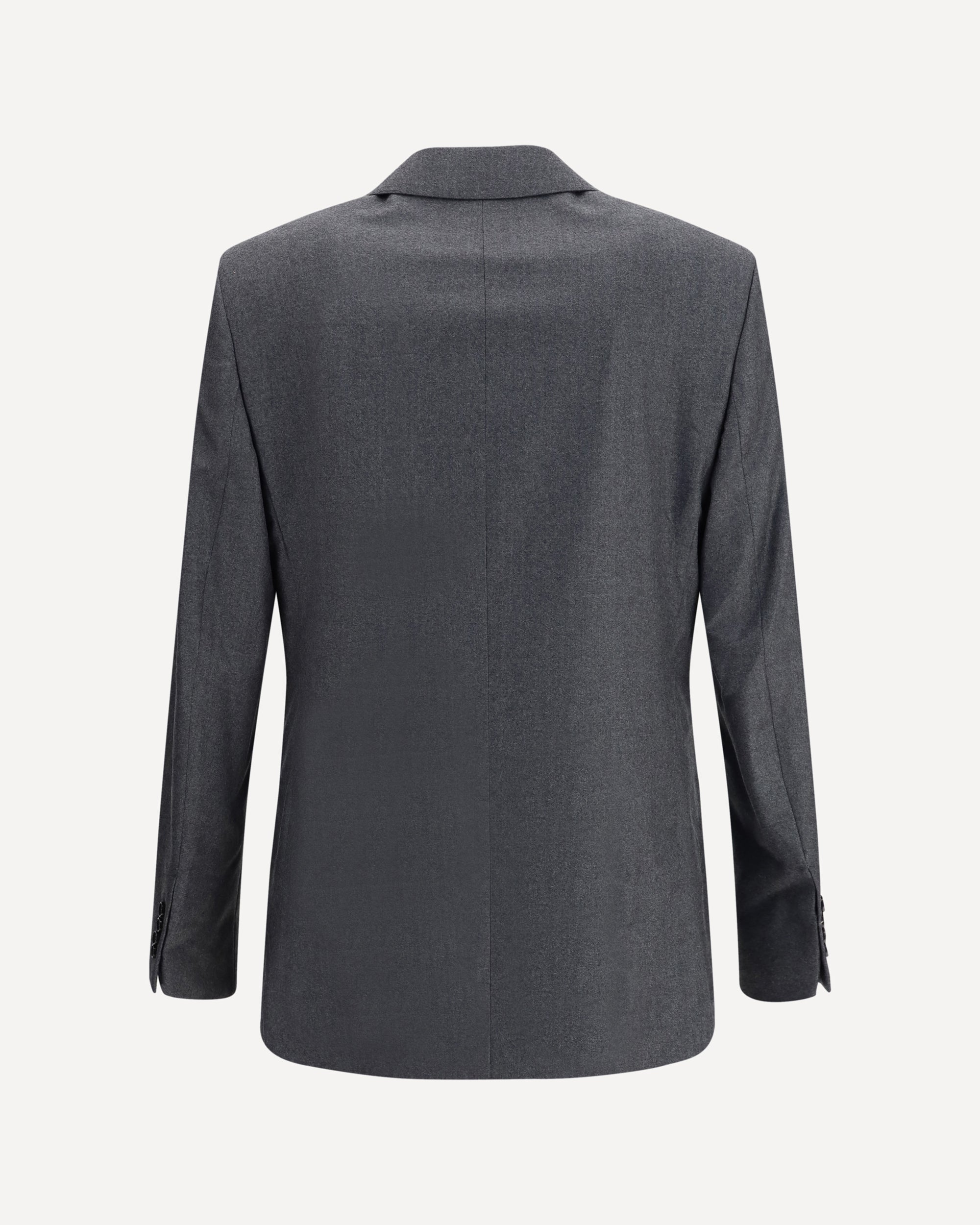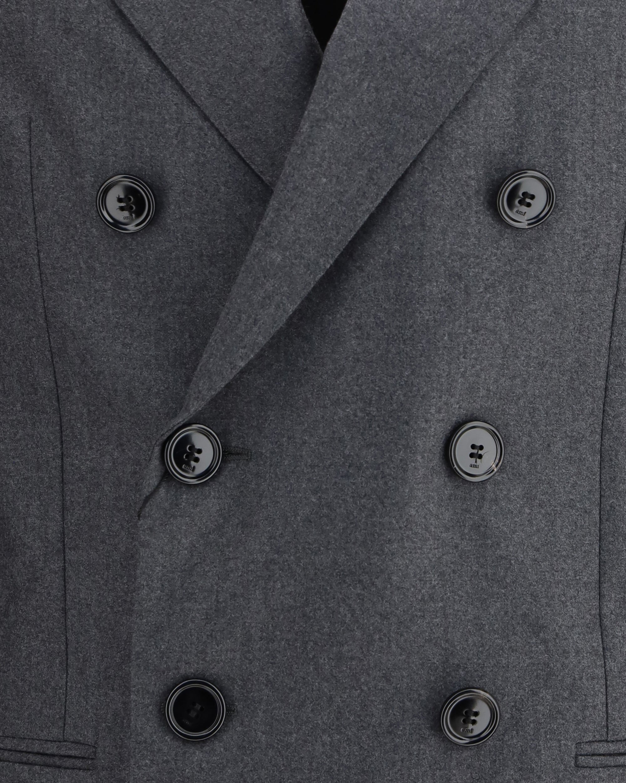 The double-breasted blazer by Ami Paris is crafted from pure virgin wool in anthracite. It features a refined silhouette with classic lapels, button fastening and front pockets. A versatile piece, perfect for formal and business outfits.