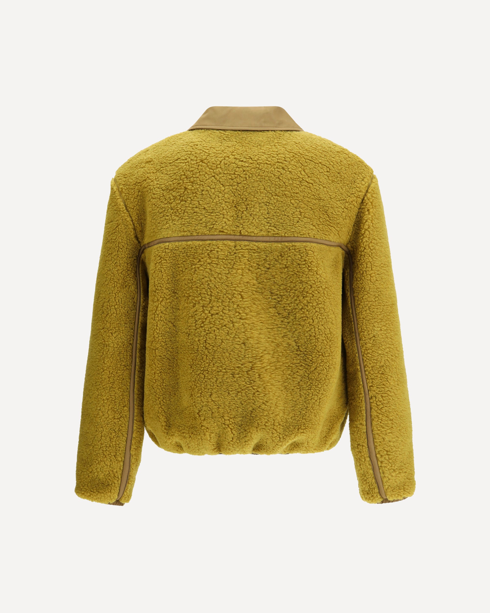 The shearling bomber Jacket by Ami Paris crafted from soft acid-green shearling for a bold, modern statement. Designed with a classic technical-fabric collar, full-length zip closure, and functional front pockets. Elasticated cuffs and hem refine the silhouette, combining comfort with a sleek, sporty edge.
