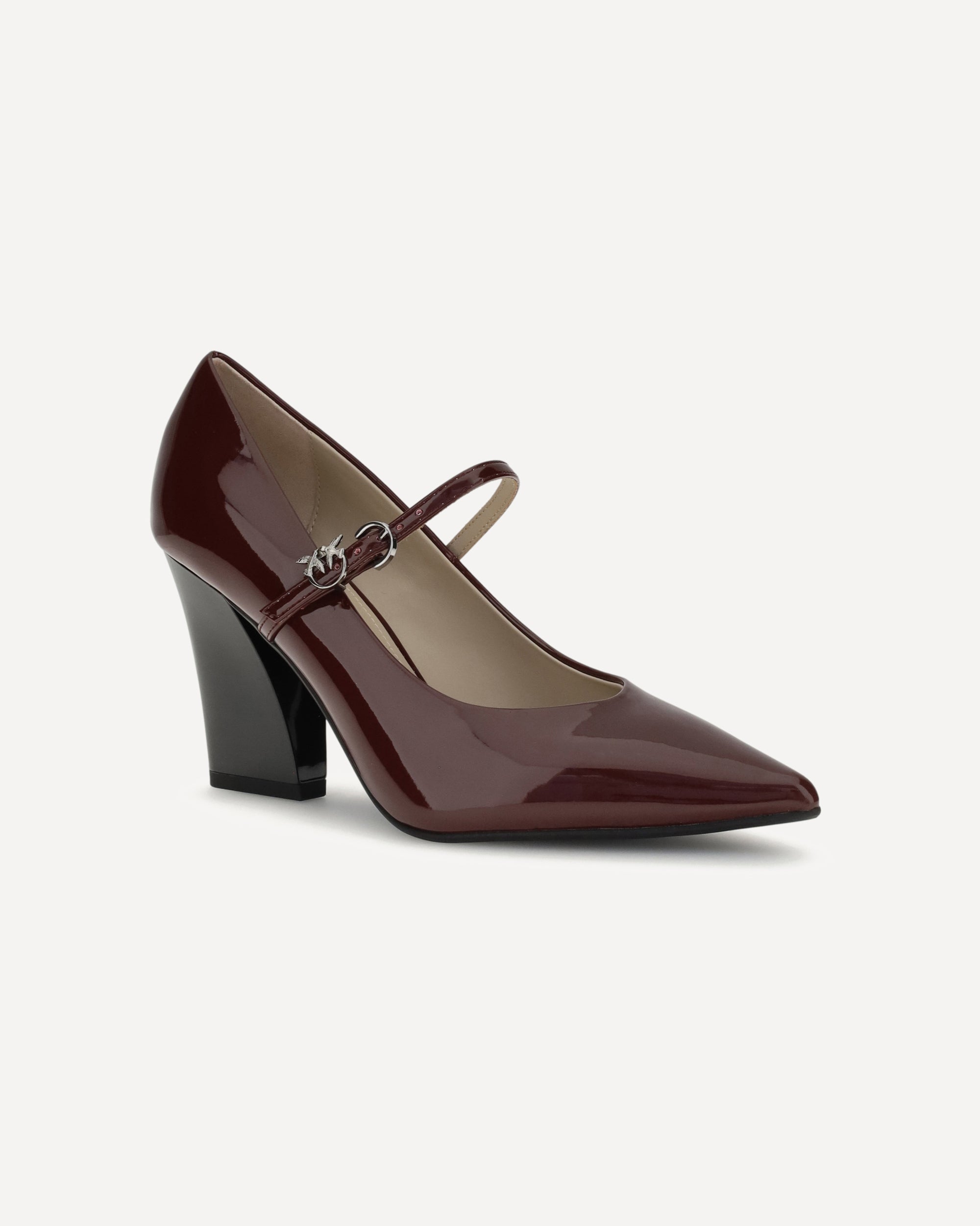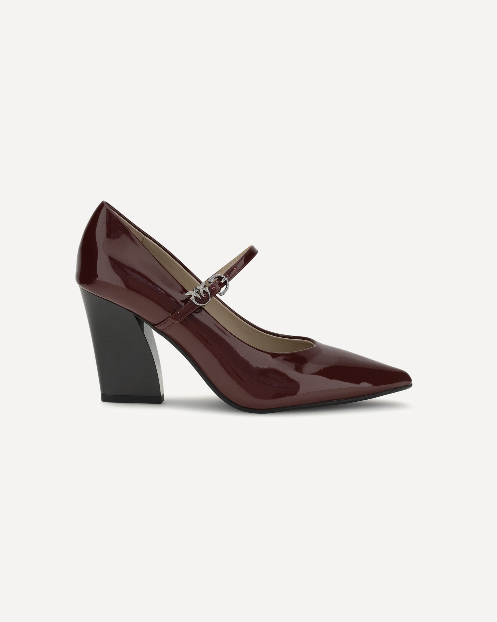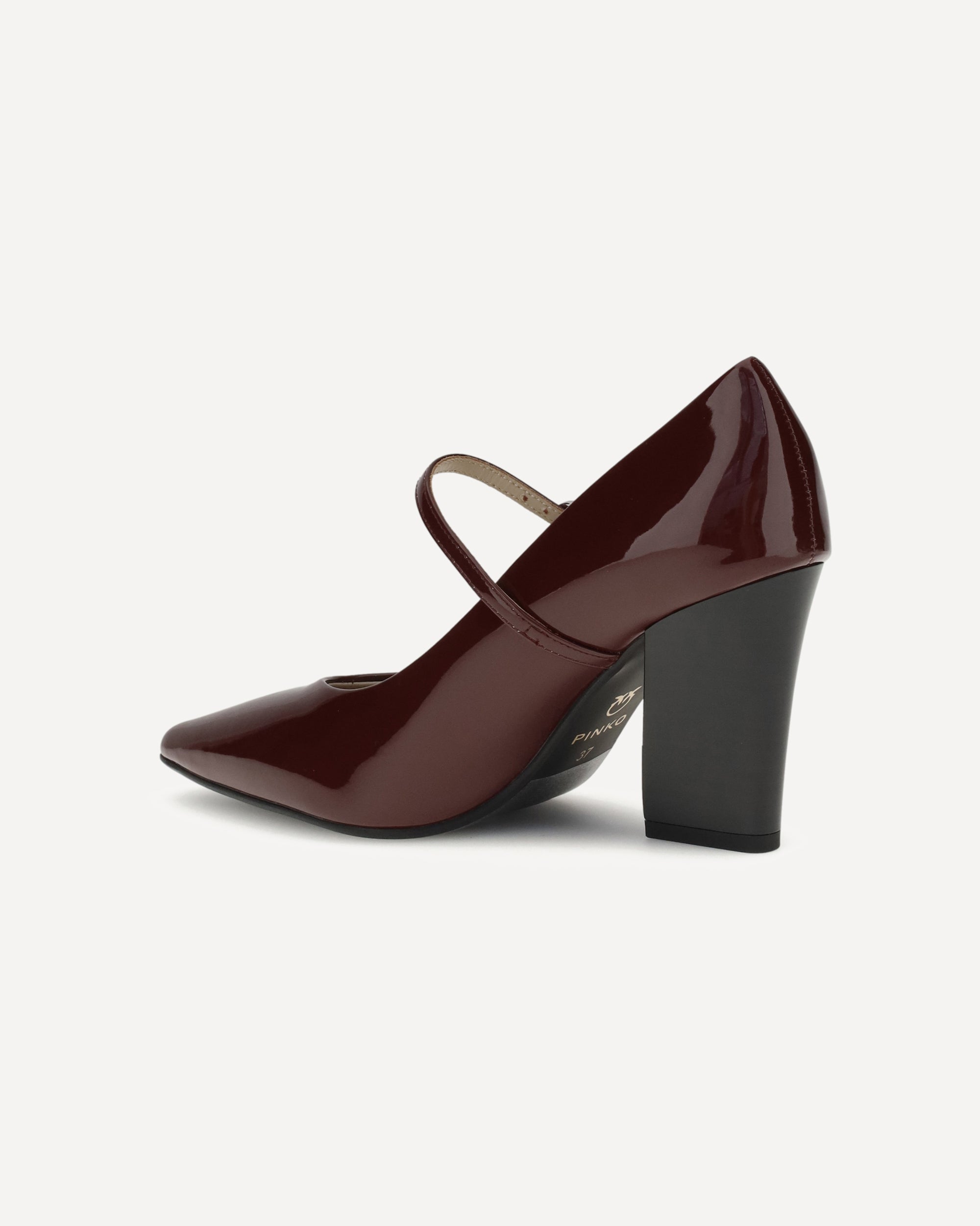 Pinko's patent leather Pumps are made of glossy patent leather with a pointed upper and cubic heel. The design is essential and feminine, enhanced by an adjustable strap closure on the upper. The shiny finish lends brightness and character to the look.