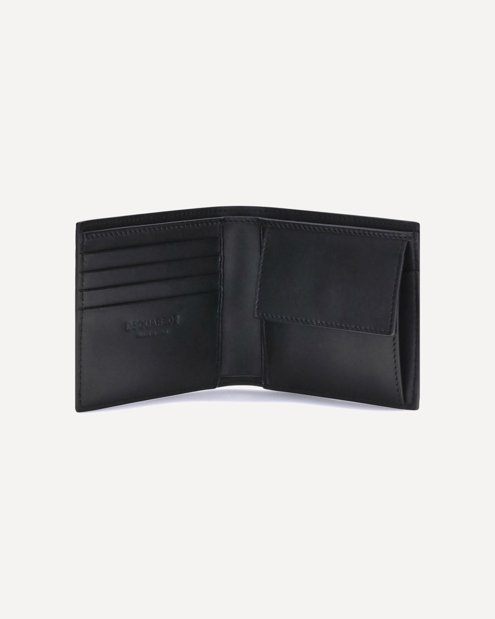 The Dsquared2 bifold Wallet combines practicality and essential style. Made with a compact and functional design, it features the logo in low relief on the front. Inside, it offers four card slots, a space for banknotes and a pocket for coins, ideal for tidy and daily organization.