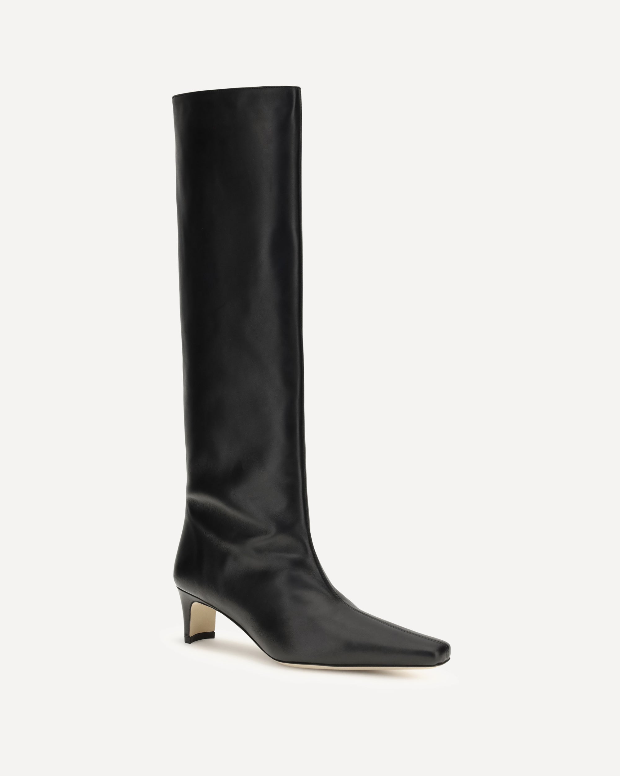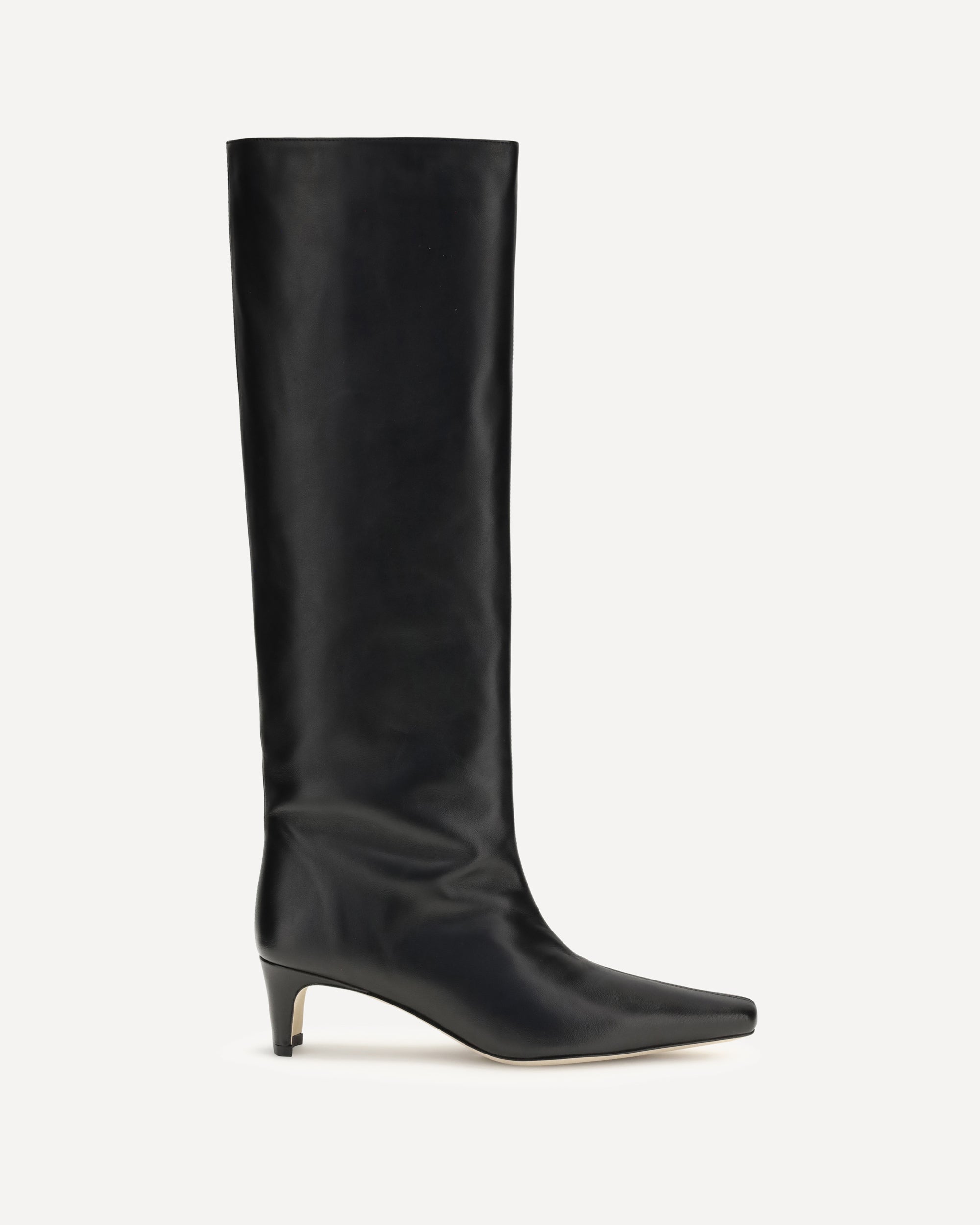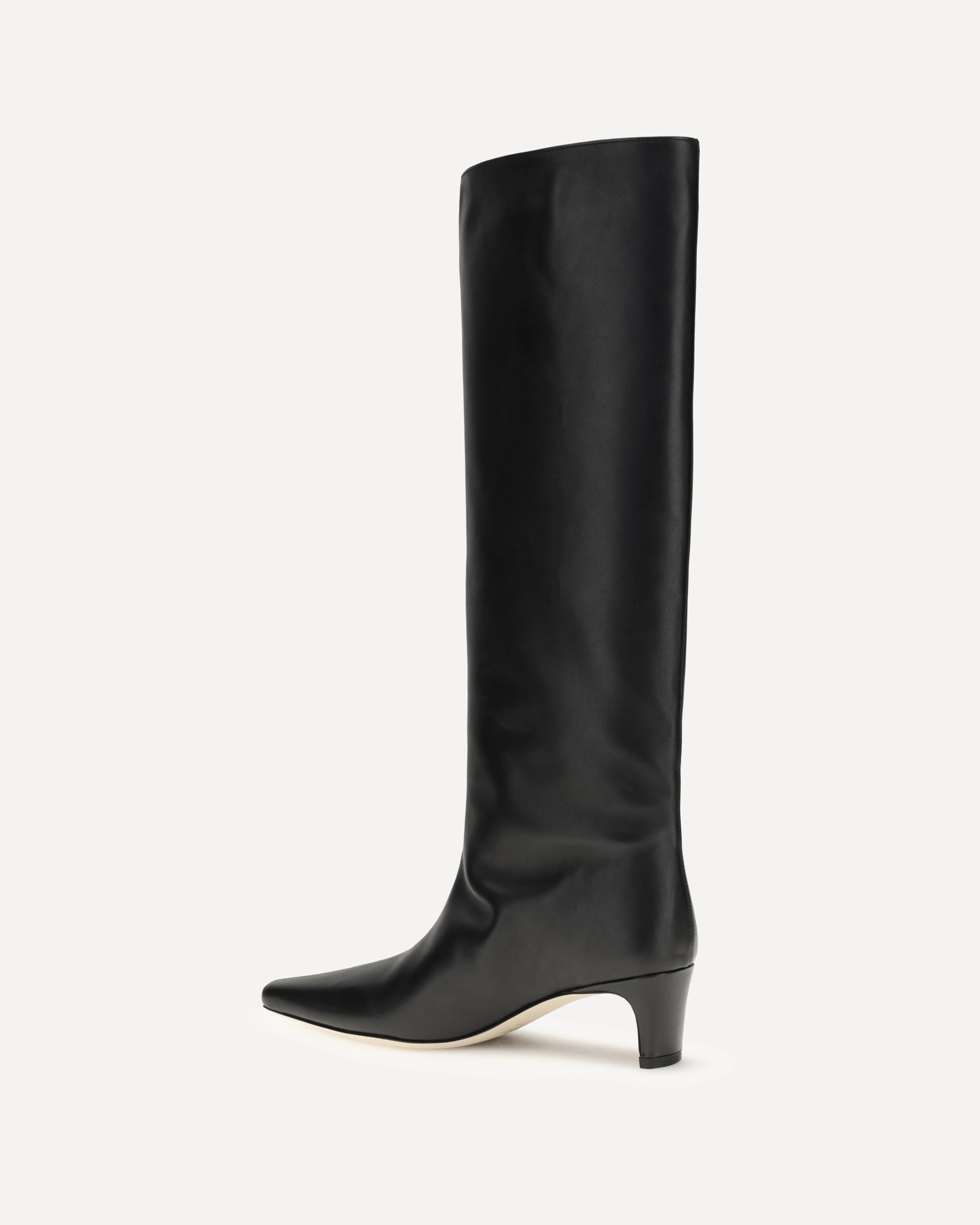 Staud's Wally leather High Boots stand out for their sleek and elegant silhouette. Featuring a tapered toe and a slim kitten heel, they have an above-the-knee height that is ideal for completing sophisticated looks with a sharp edge.
