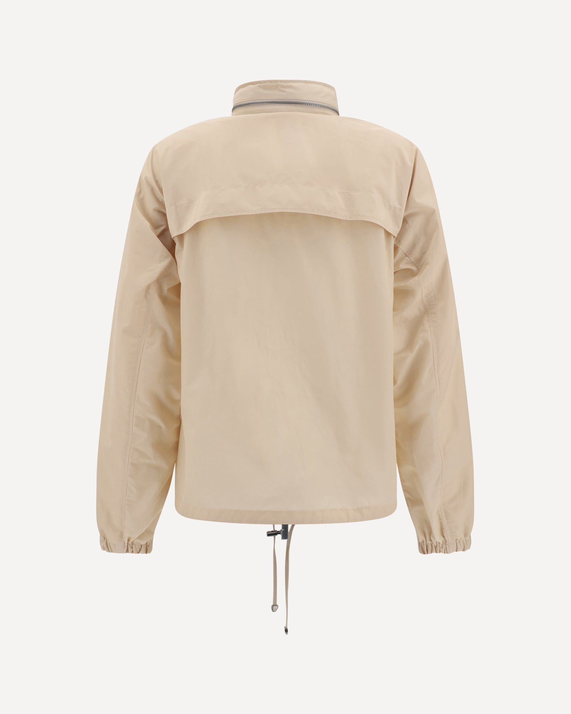 The Burberry waterproof Jacket is a highly functional piece with a touch of distinctive elegance. The two-way zip fastening at the front allows for an adjustable fit, while the zip-out hood from the collar offers practicality and adaptability to different weather conditions. The adjustable drawstring hem and elasticated cuffs ensure comfort and coverage, while two zipped welt pockets at the sides offer secure storage. The iconic logo plaque on the front adds a distinctive detail, making this jacket not only functional but also a stylish must-have.