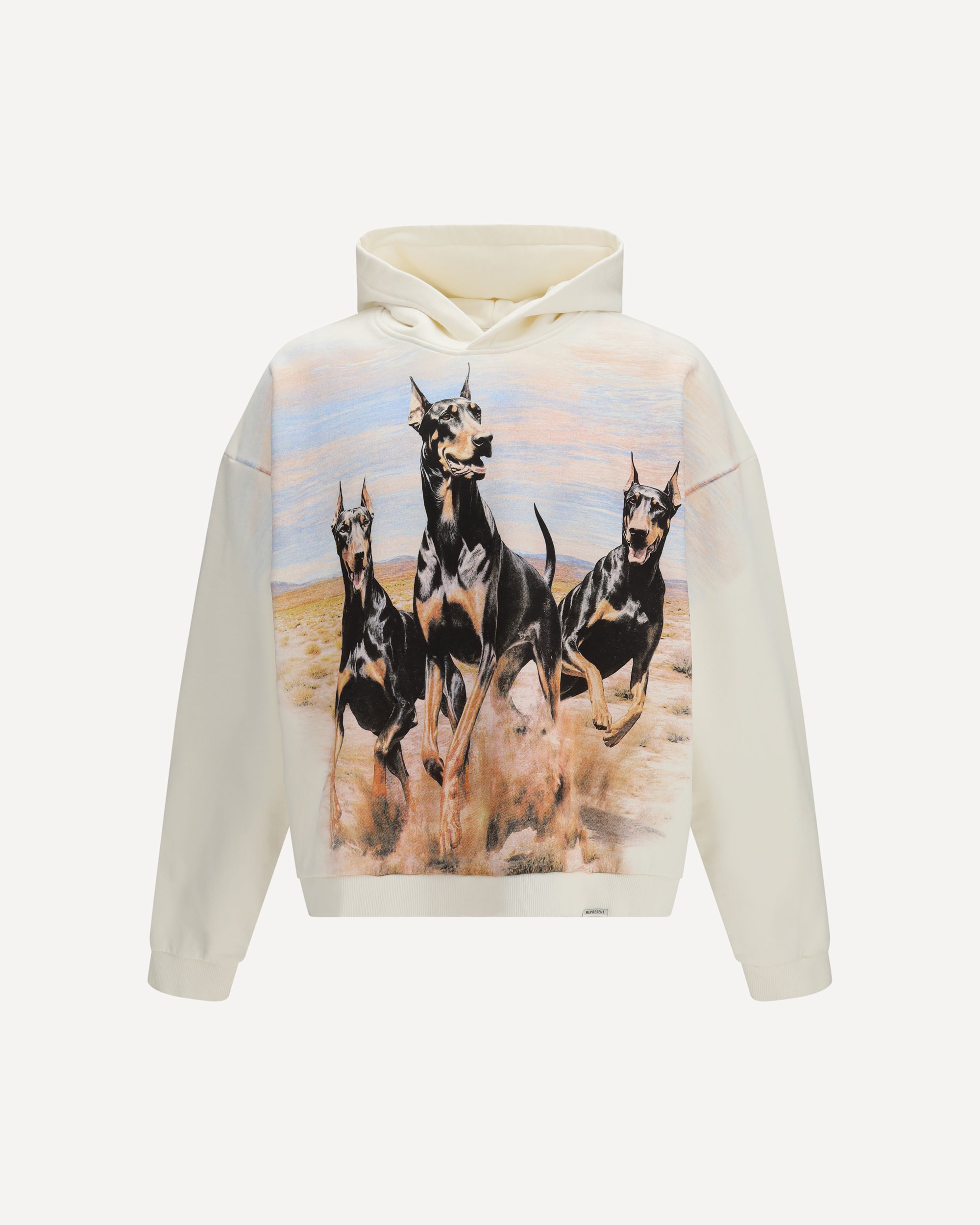 The Western Dobermans Hoodie by Represent stands out for its bold and contemporary style. The design features a hood and a white dog graphic print on the front, giving the piece a distinctive look. Ribbed cuffs and hem complete the sweatshirt, providing comfort and a structured fit, making it ideal for a casual outfit with strong character.