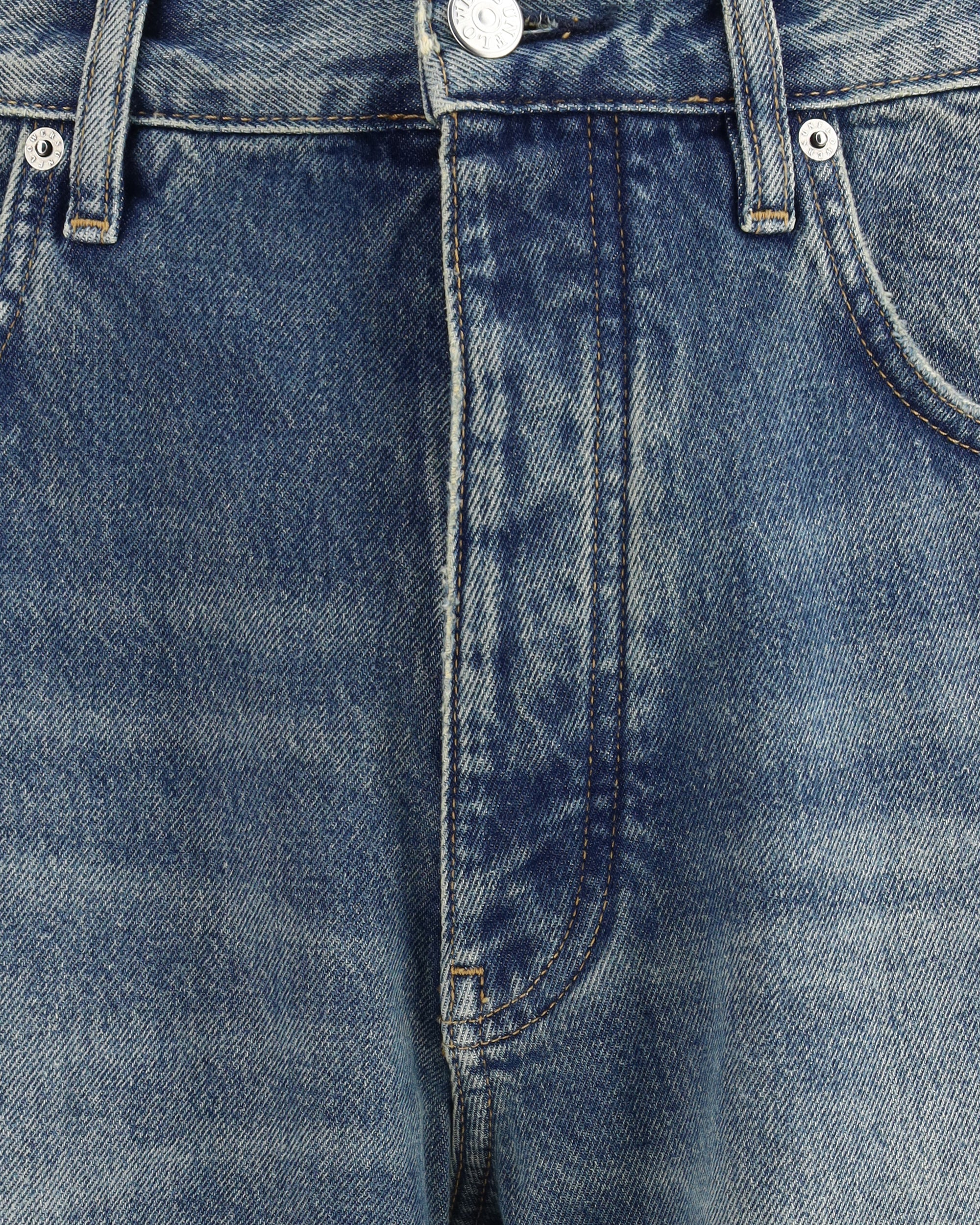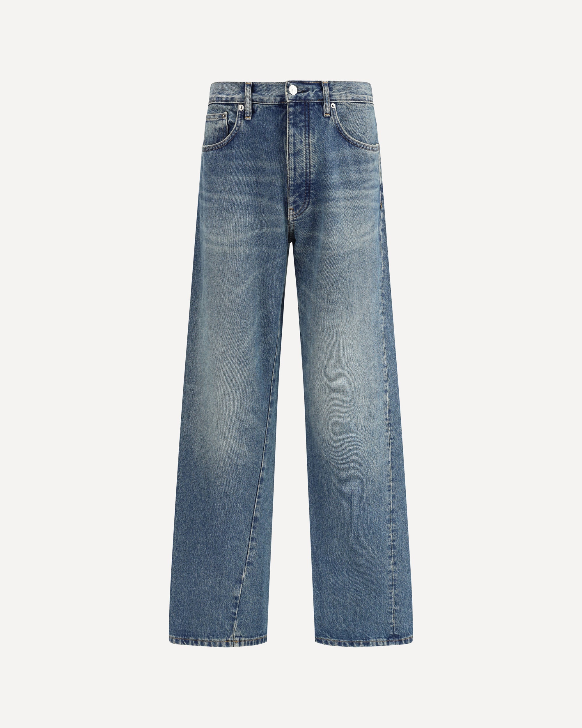 Wide Twist Jeans by Sunflower offer a modern interpretation of denim with a wide, bold cut. Made of twisted wide denim, they feature a loose fit and twisted side seams that add movement and character. The dirty dye on the wash gives an authentic vintage effect, while the recycled metal trim reflects the brand's commitment to sustainability. A garment with a strong aesthetic impact, perfect for a contemporary, casual style.