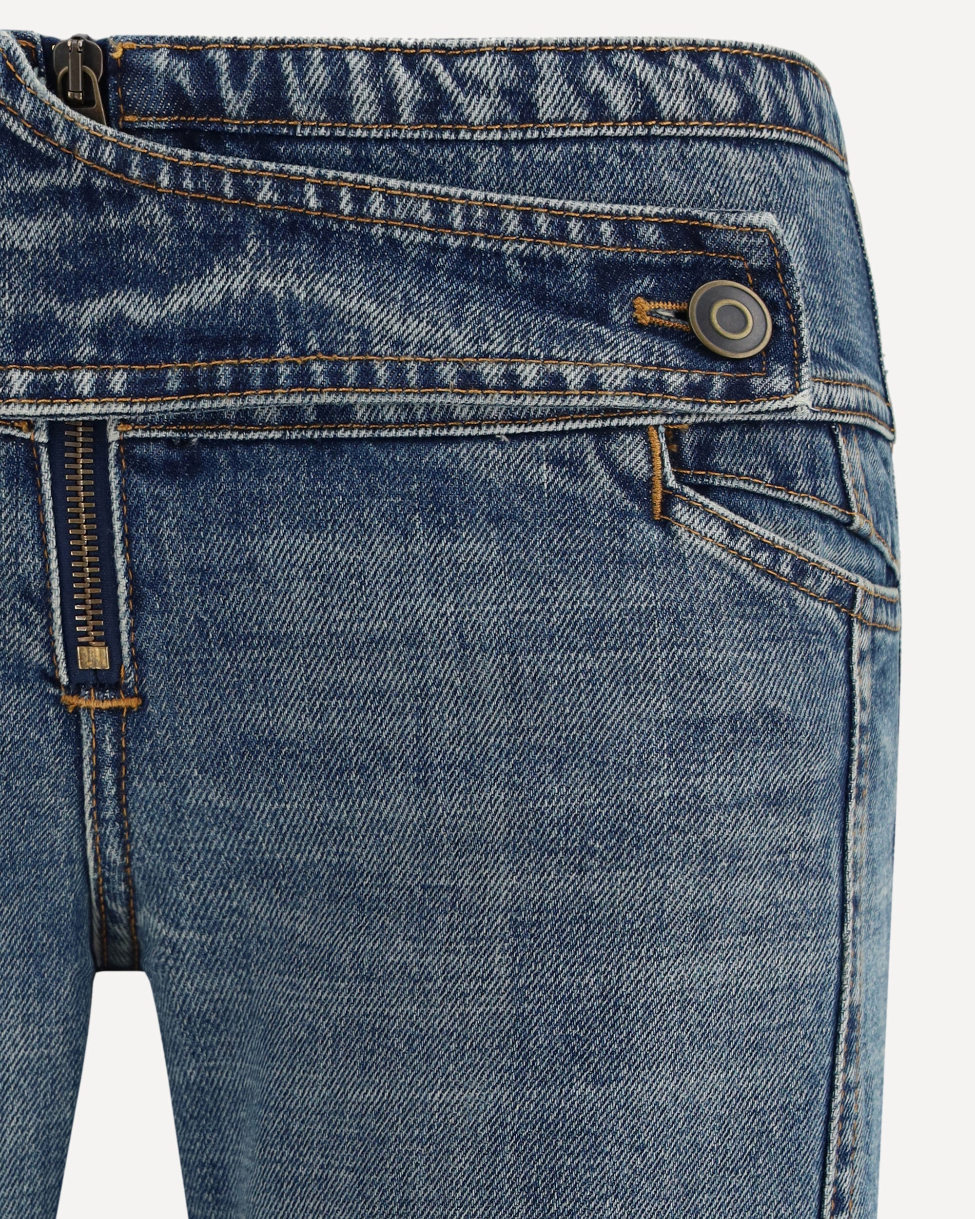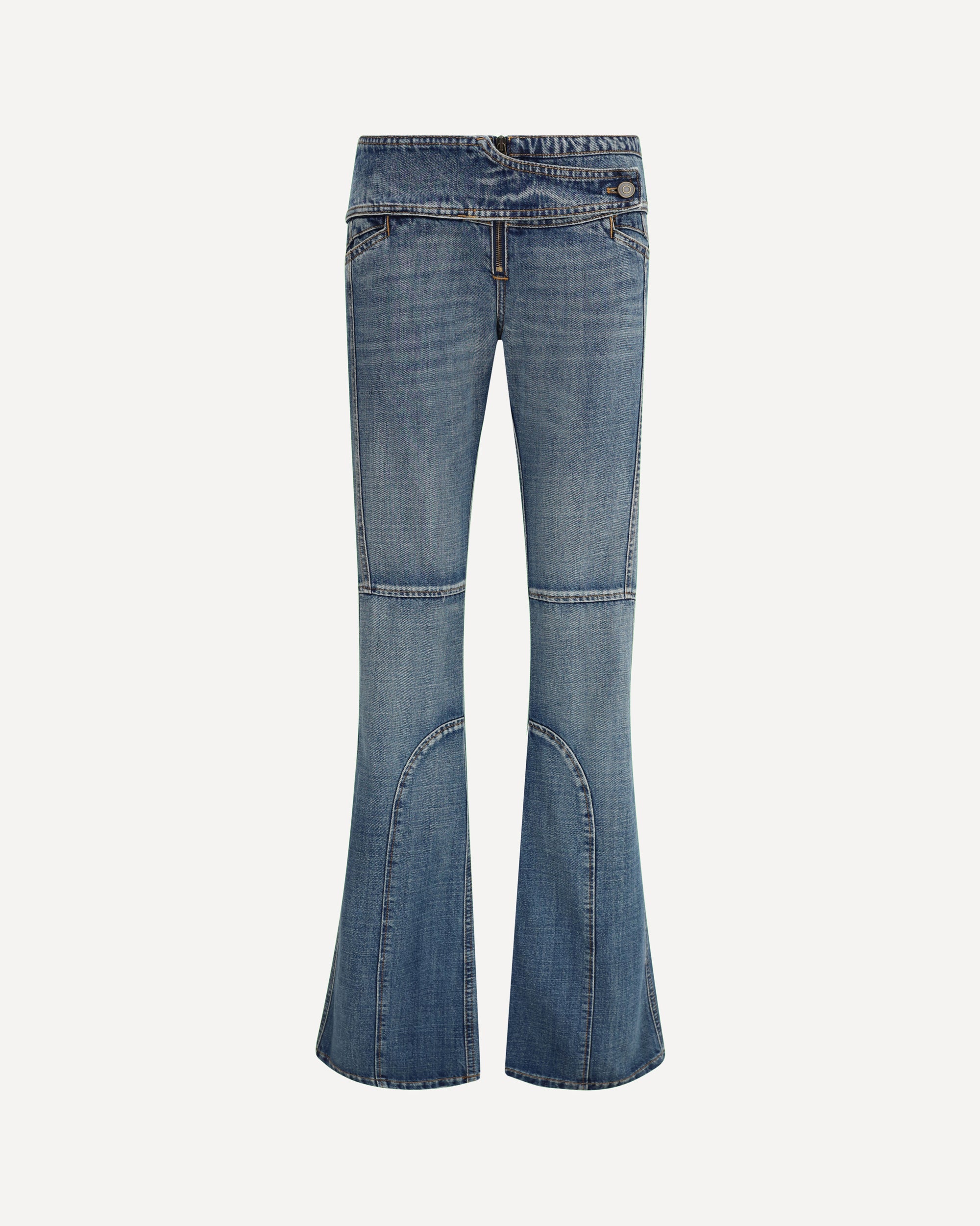 The Coperni Yoke Denim Pants in Blue channel Y2K vibes with a modern twist. Crafted in structured denim, they feature functional front pockets, a zip closure, and closed back slits for a distinctive detail. The contemporary cut combines comfort with urban style, making them perfect for standout outfits.