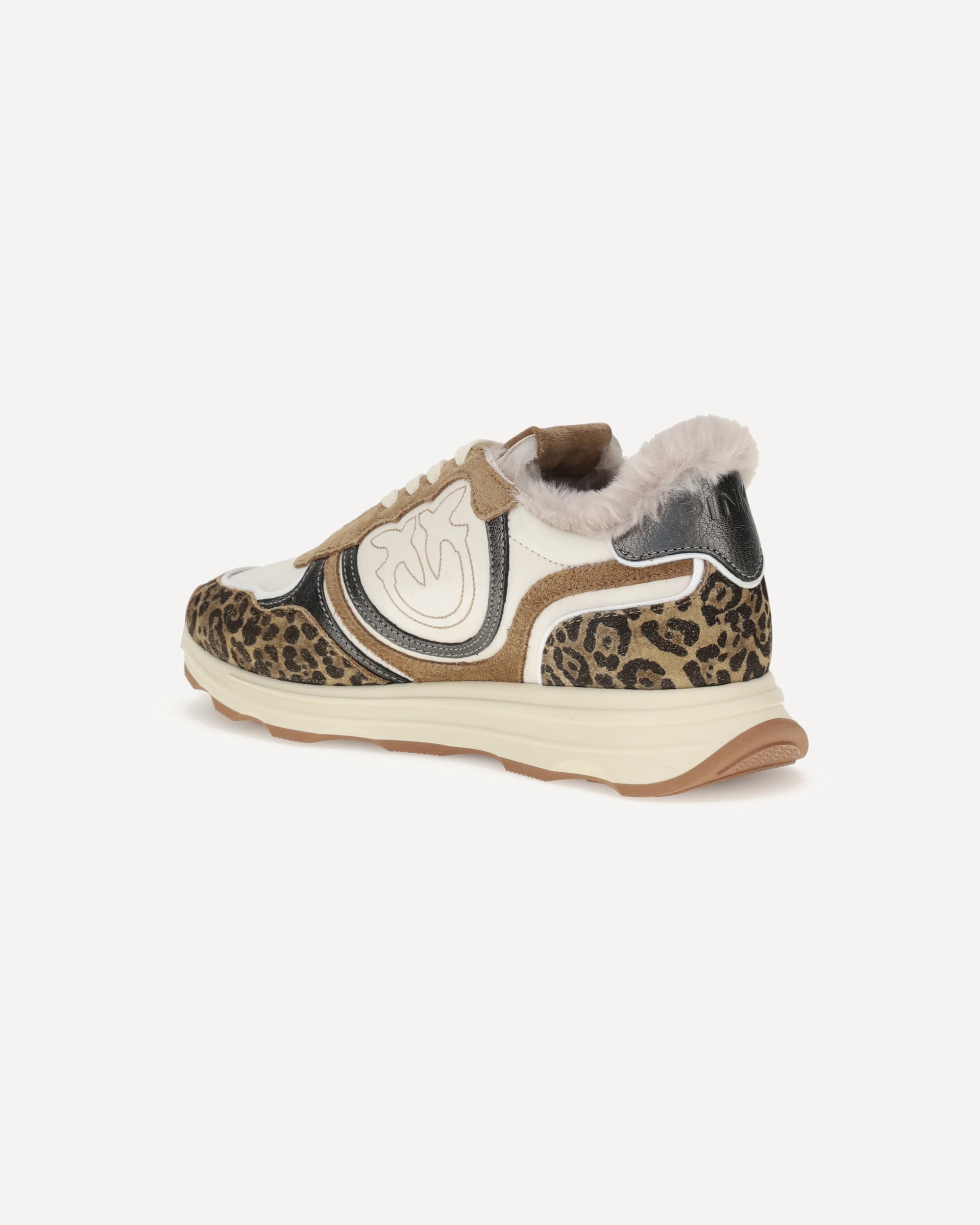 Pinko's Zoe 01 Leopard Sneakers are distinguished by a leopard print and a bold inset design. The synthetic fur lining ensures comfort and warmth, while the lace-up closure ensures a stable fit. The signature logo applique completes the look.
