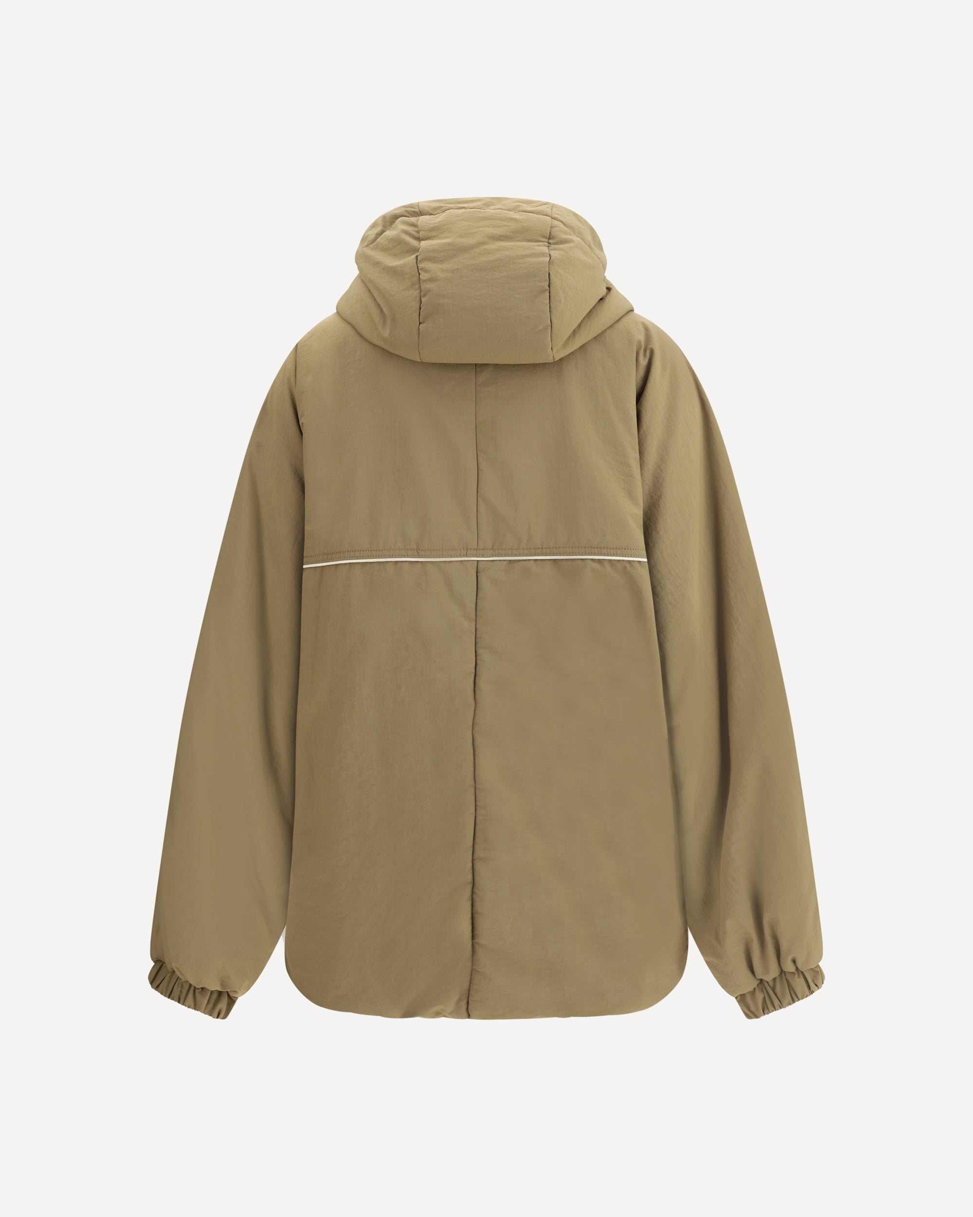 The Zoe Anorak Jacket by Marbell has two front pockets, contrasting hoods and details, and drawstring hem for an adjustable fit.