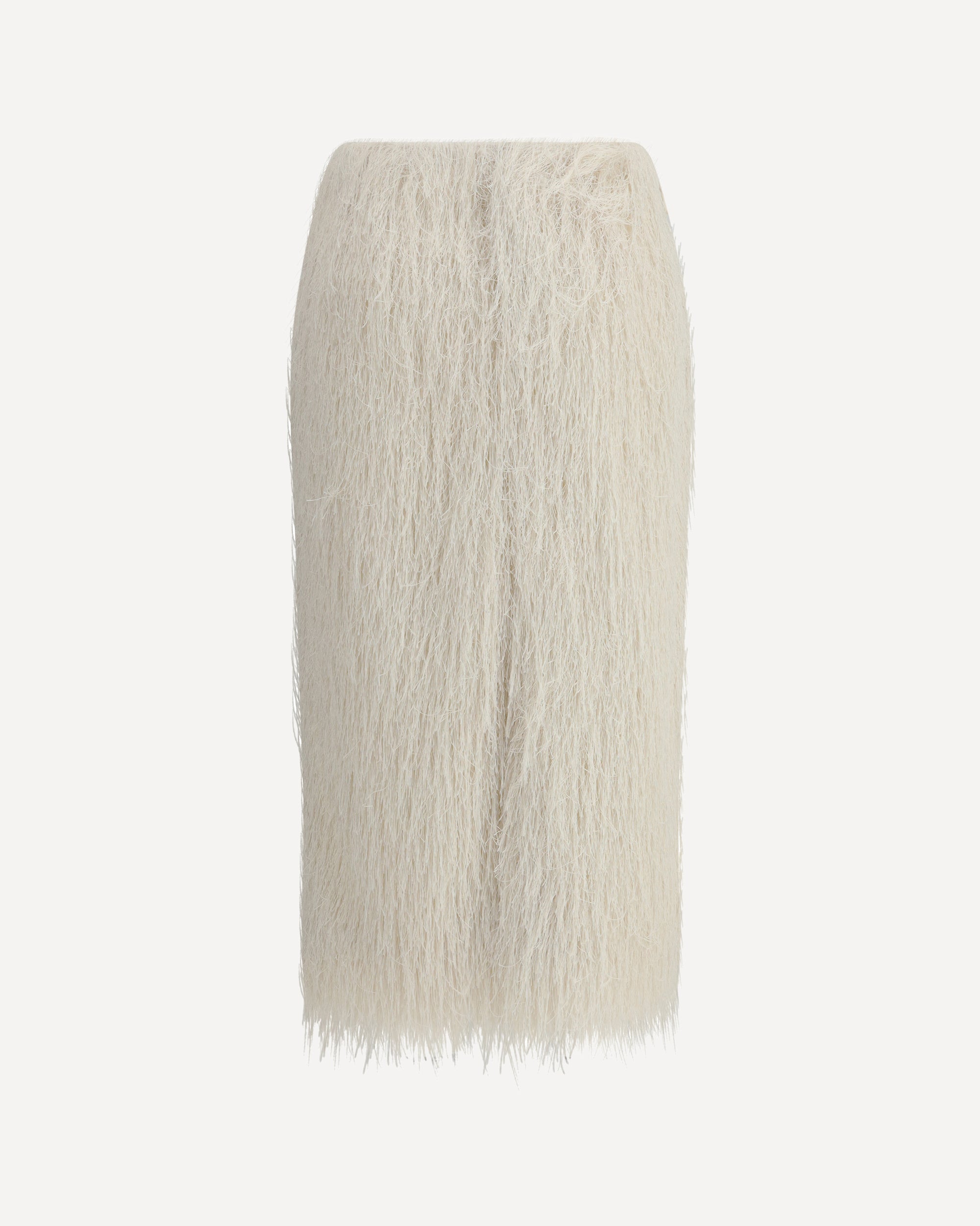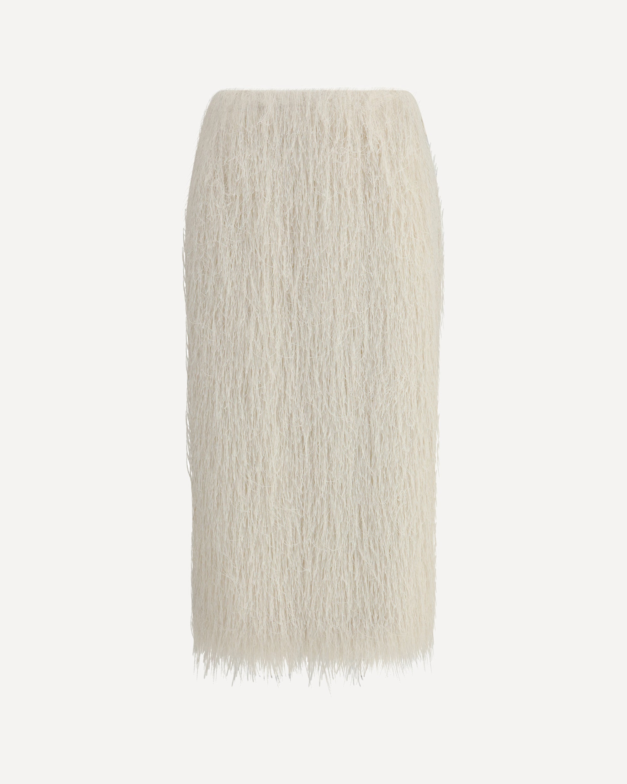 La Gonna midi con frange di Dries Van Noten è un capo dinamico e raffinato, realizzato in tessuto leggero arricchito da frange che donano movimento e carattere. Presenta una vestibilità regolare, vita media e lunghezza midi, mentre la chiusura posteriore con bottoni completa il design con un tocco elegante e funzionale.