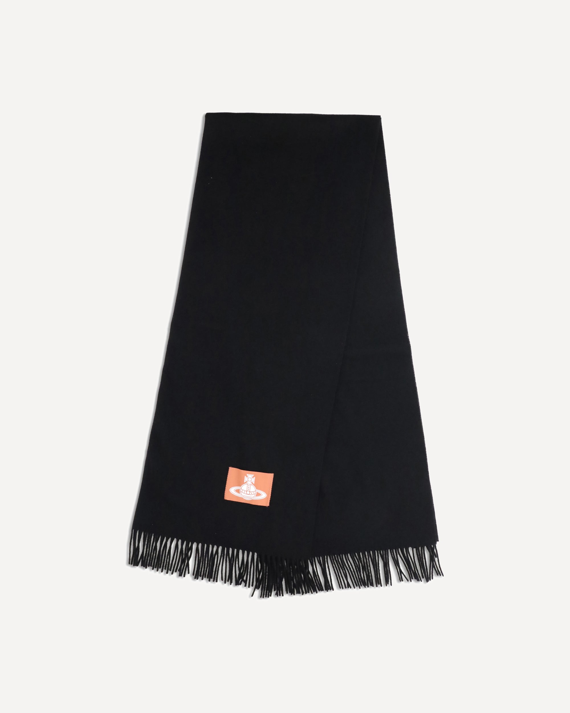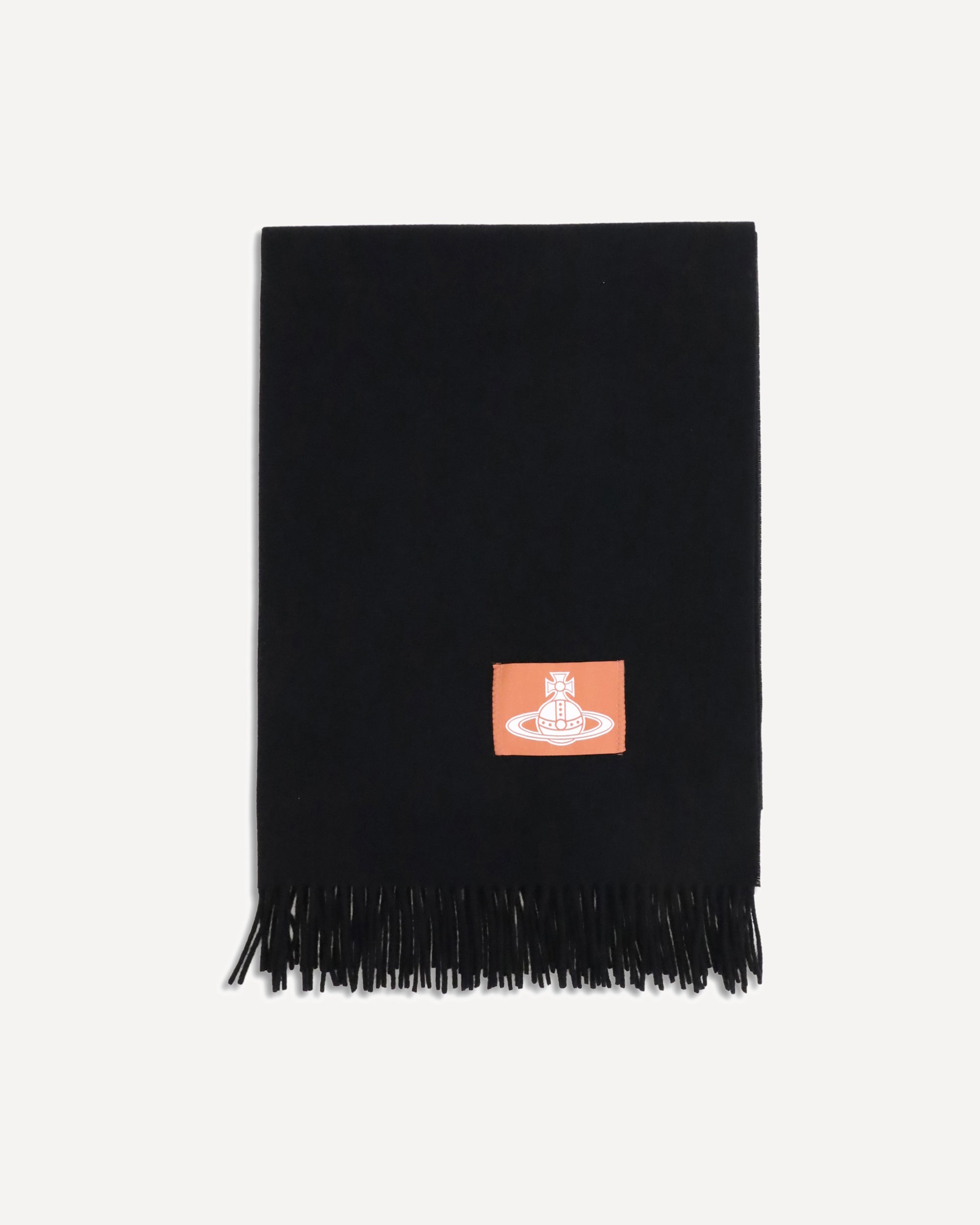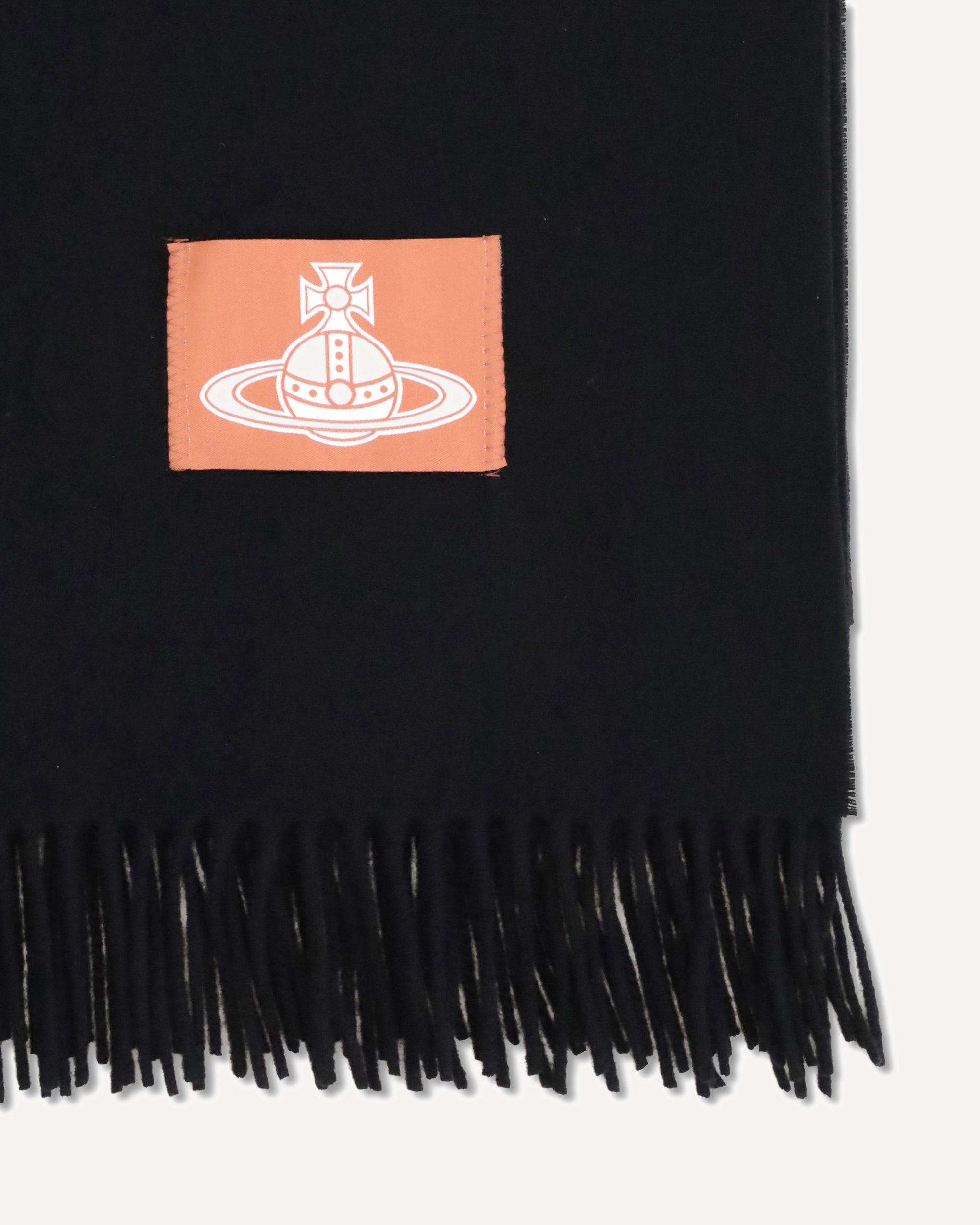 La Sciarpa in lana di Vivienne Westwood unisce stile iconico e comfort. Caratterizzata da frange ai lati, è impreziosita da una patch logata cucita sul fronte, dettaglio distintivo del brand.