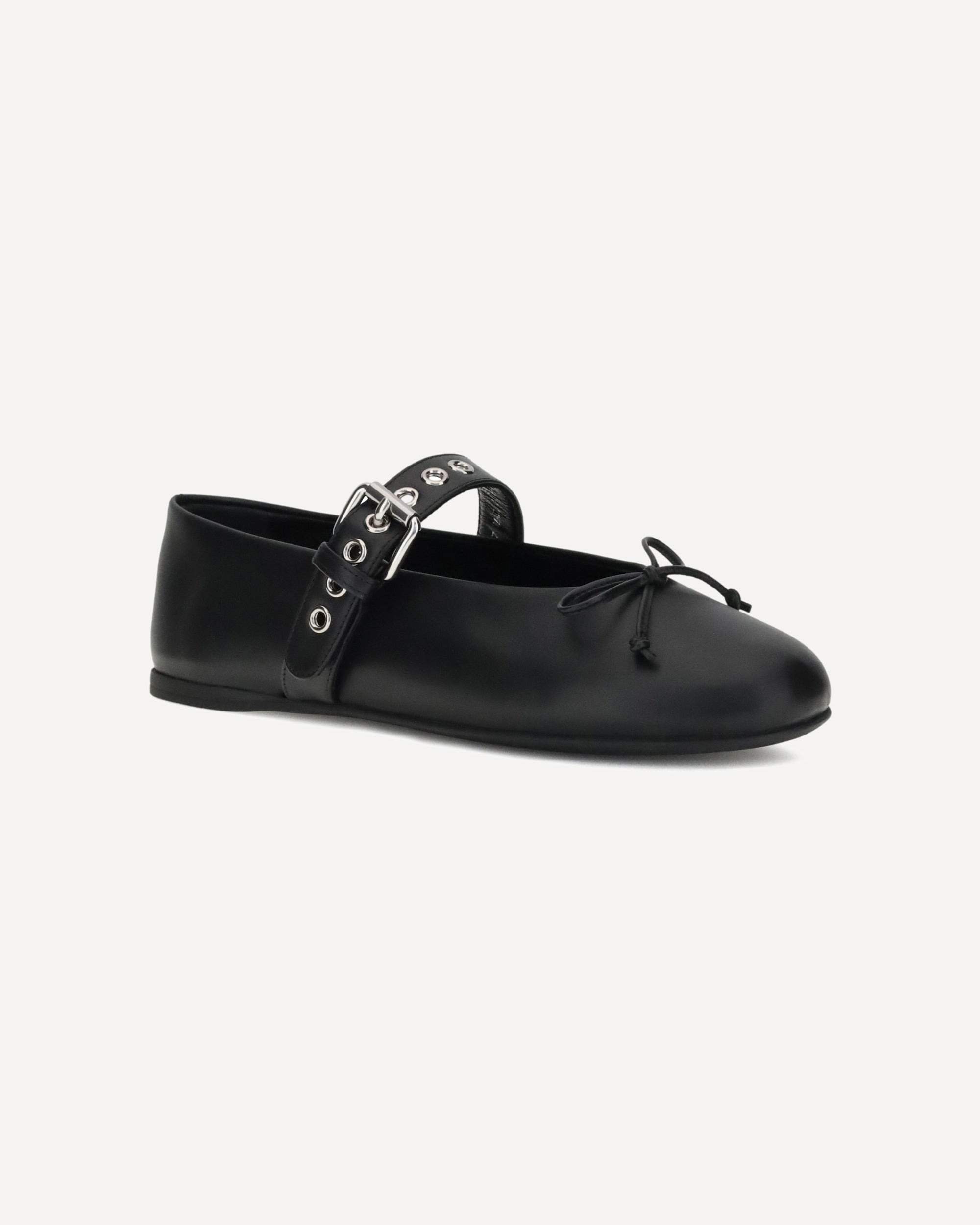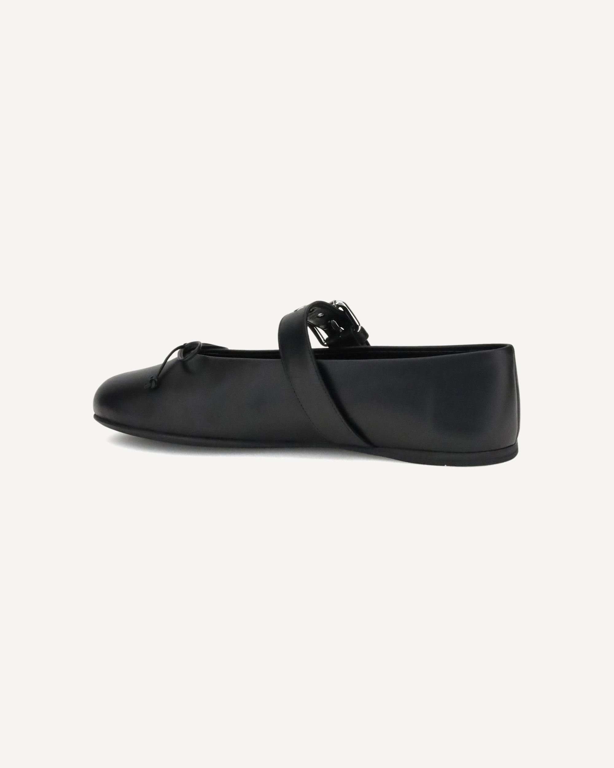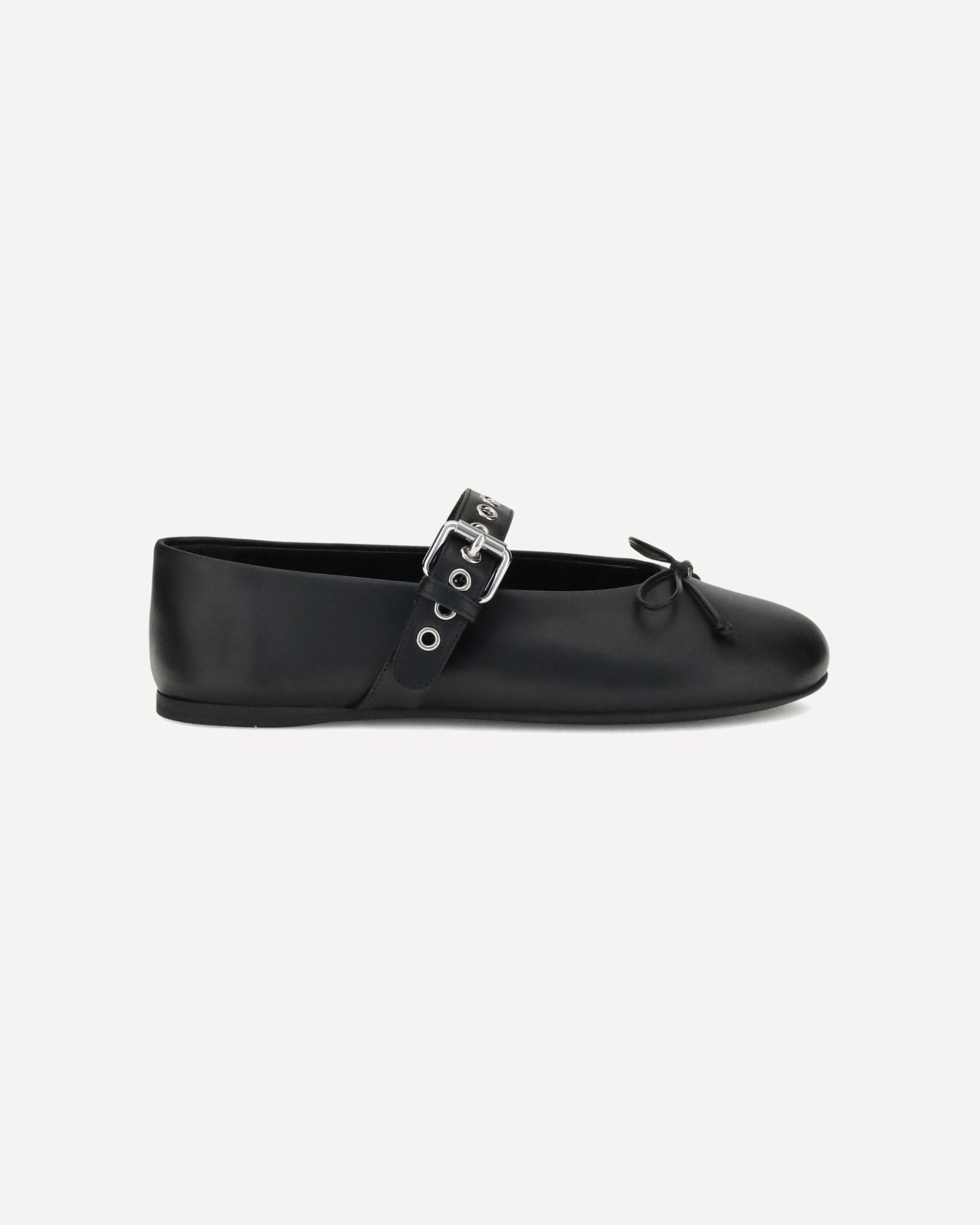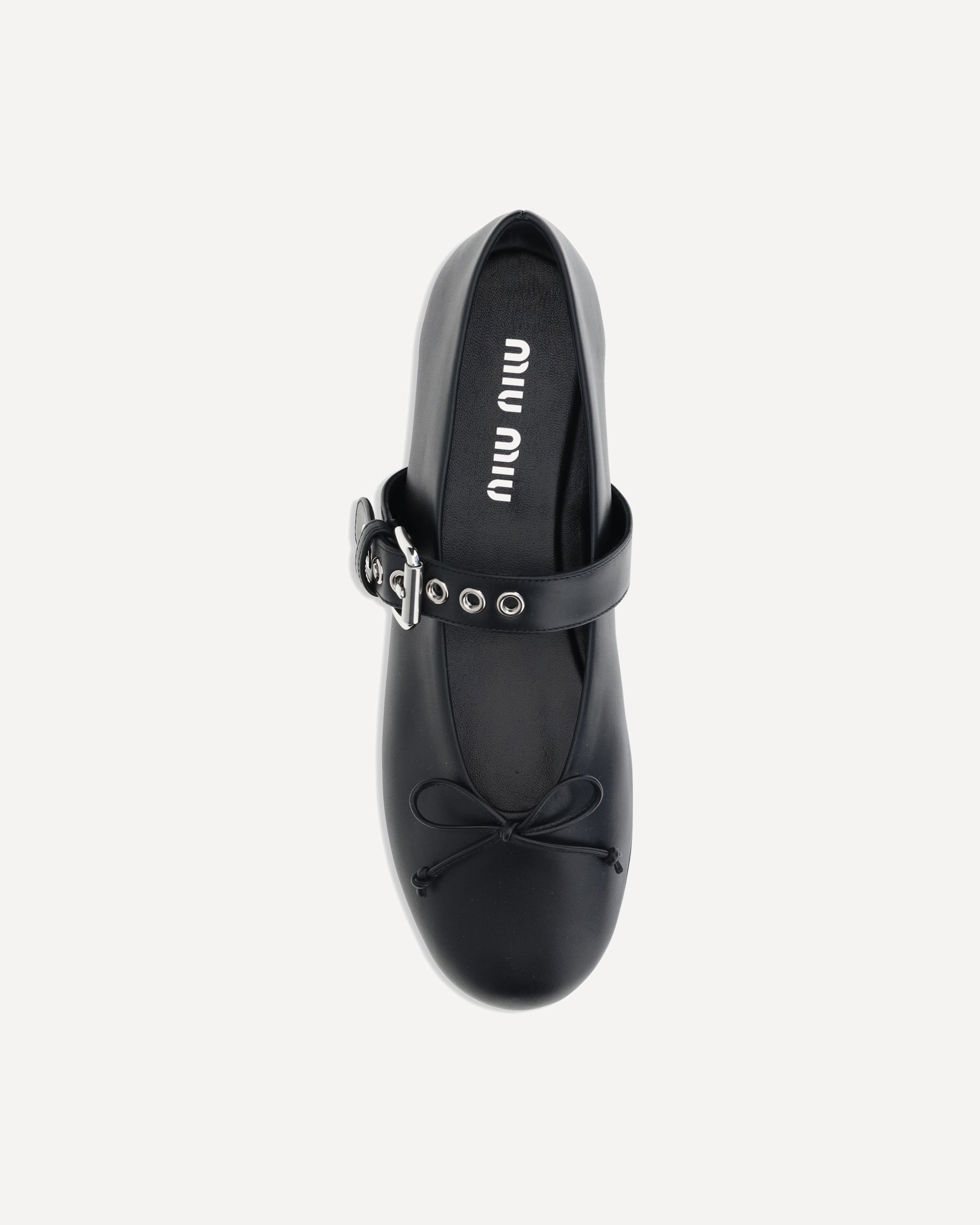 Le Ballerine in pelle di Miu Miu uniscono perfettamente eleganza e comfort. La suola piatta garantisce praticità per un utilizzo quotidiano, mentre la fascetta regolabile con fibbia sul dorso del piede offre una calzata stabile e sicura. Il design è arricchito dalla punta tonda e dal fiocchetto frontale, che conferiscono un look raffinato e versatile, adatto a qualsiasi occasione.
