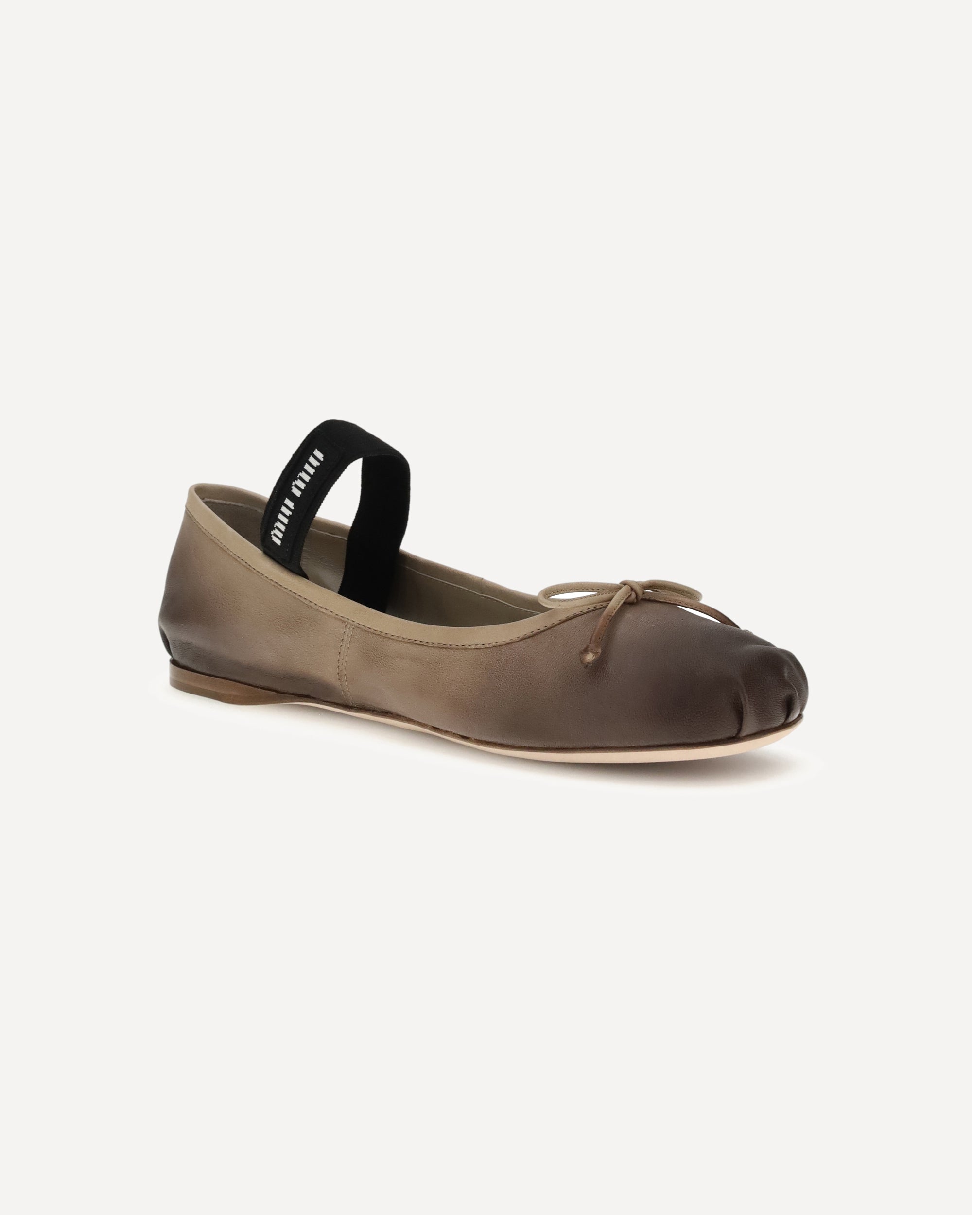 Le Ballerine in pelle di Miu Miu uniscono eleganza romantica e stile contemporaneo. Il fiocco sulla tomaia e l'elastico con logo in maglia aggiungono un tocco femminile e distintivo. La suola in cuoio con sottotacco in gomma assicura comfort, mentre il sottopiede in pelle rifinisce il design con cura e raffinatezza. Versatili e iconiche, sono perfette per ogni occasione.
