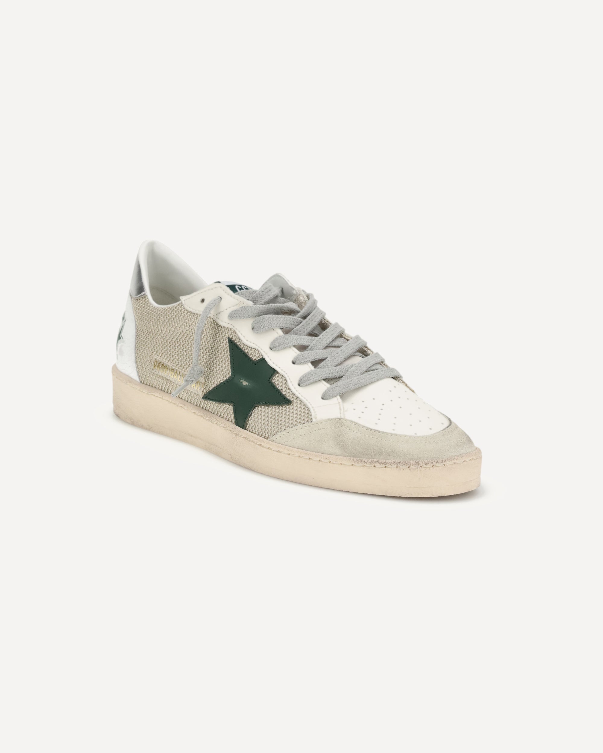 Le Sneakers Ball Star Golden Goose Deluxe Brand sono realizzate in pelle con tomaia in rete e stella laterale in pelle, espressione dell’inconfondibile stile del brand. Il modello presenta chiusura con lacci, punta arrotondata e iconico logo laterale. Completano il design la suola in gomma e la produzione Made in Italy, sinonimo di qualità artigianale.