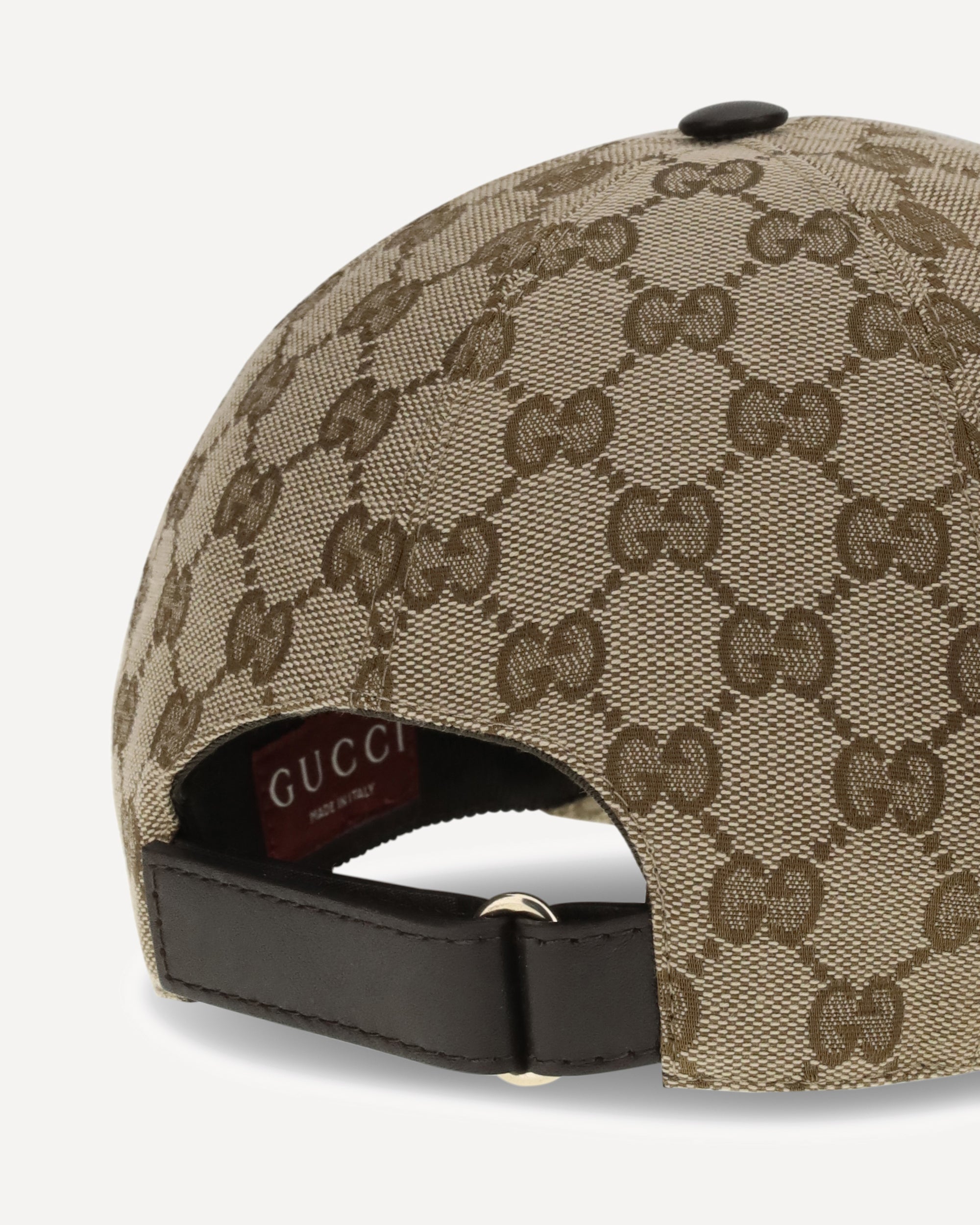 Il Cappello da Baseball di Gucci unisce stile sportivo e raffinatezza grazie alla stampa in jacquard con l’iconico motivo GG Supreme. I pannelli laterali sono arricchiti da bande in webbing bicolori, dettaglio distintivo della maison, mentre sul retro il cinturino regolabile permette una vestibilità confortevole e personalizzata. Un accessorio dal fascino intramontabile, perfetto per completare look casual ed eleganti con un tocco di firma Gucci.