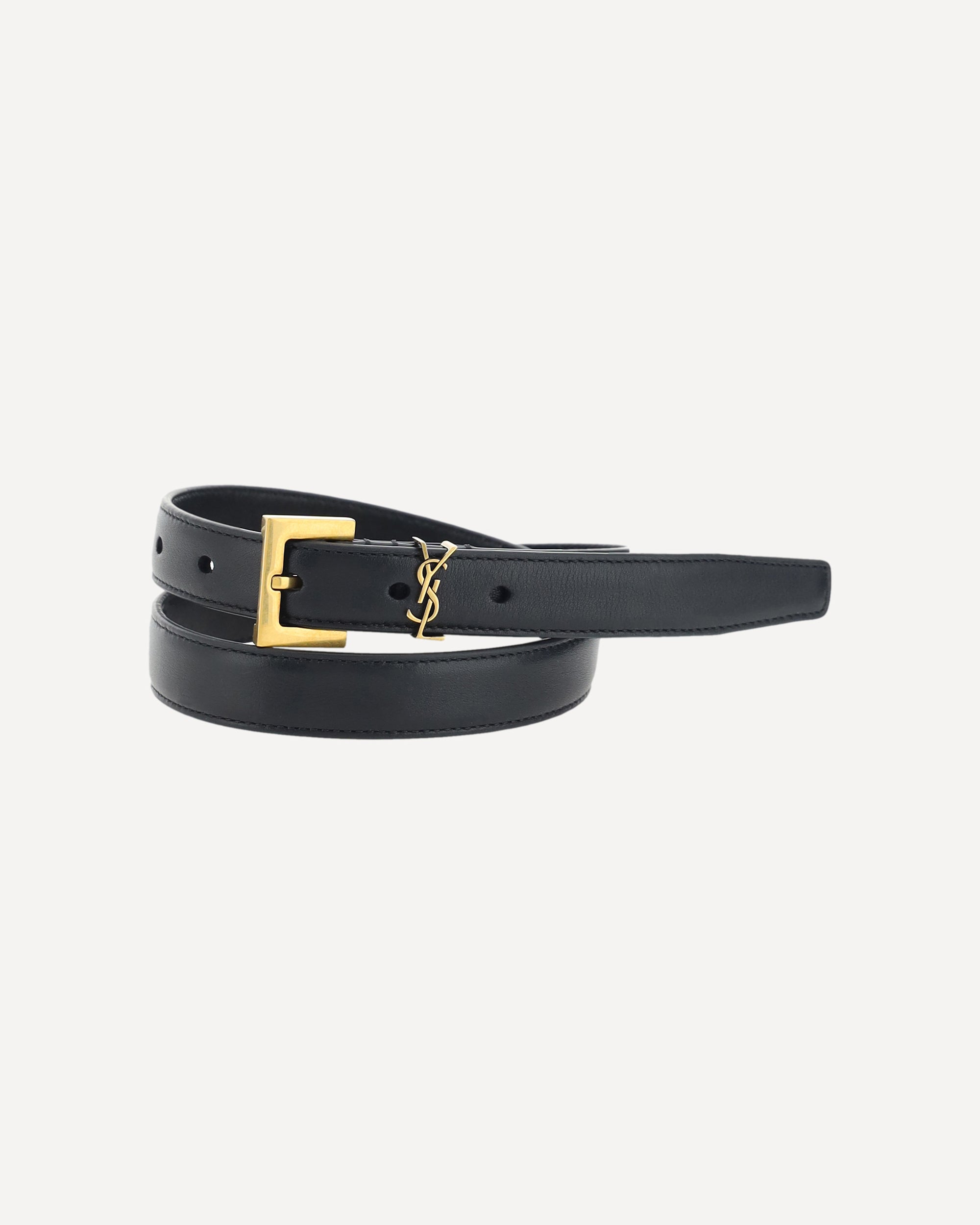 La Cintura sottile Cassandre di Saint Laurent è un accessorio raffinato e minimalista, realizzato in pelle liscia di alta qualità. La chiusura è affidata a una discreta fibbia in ottone, mentre il logo YSL, posizionato lateralmente, aggiunge un tocco iconico senza eccessi. Perfetta per valorizzare la vita con eleganza, si adatta facilmente sia a look formali che casual.