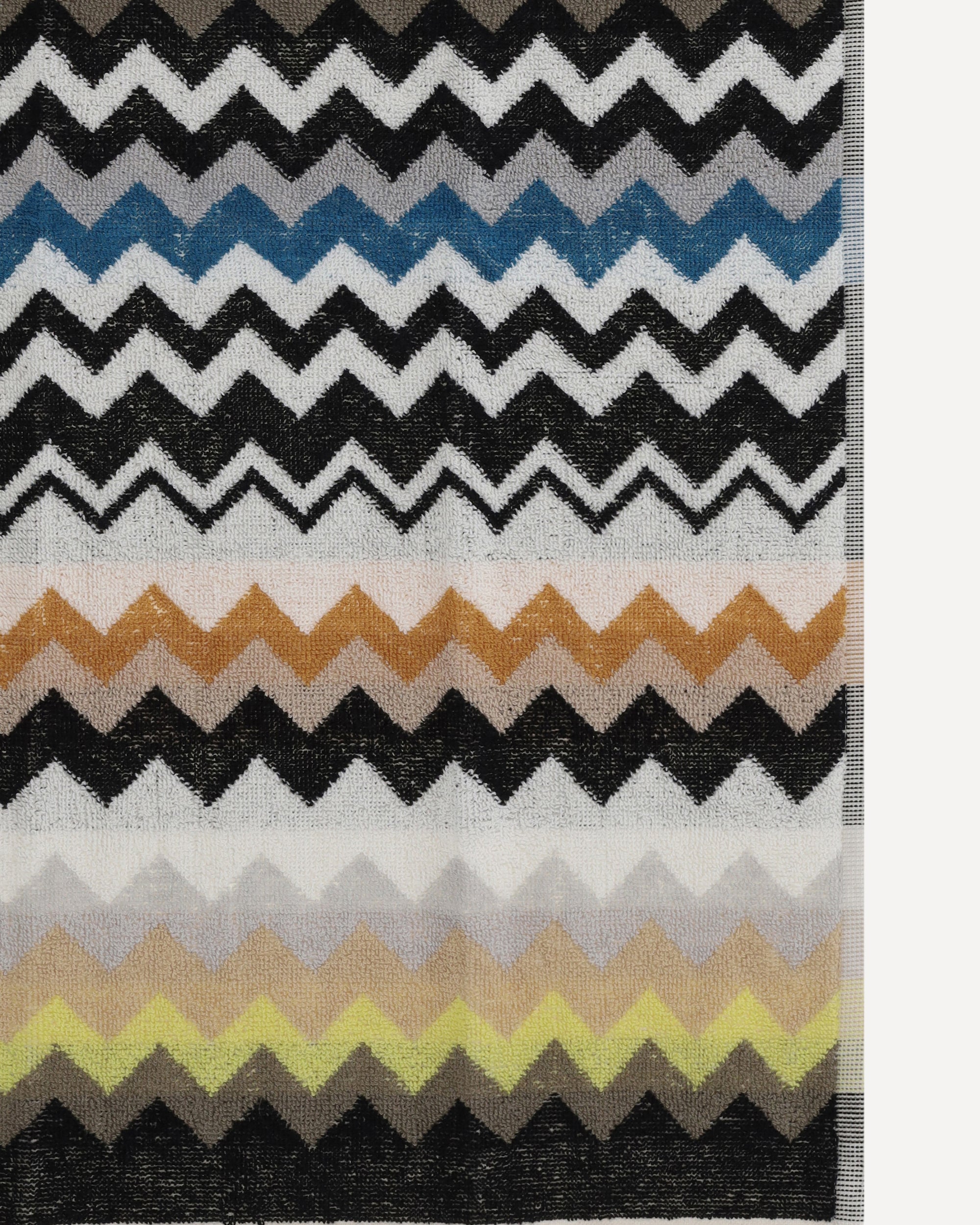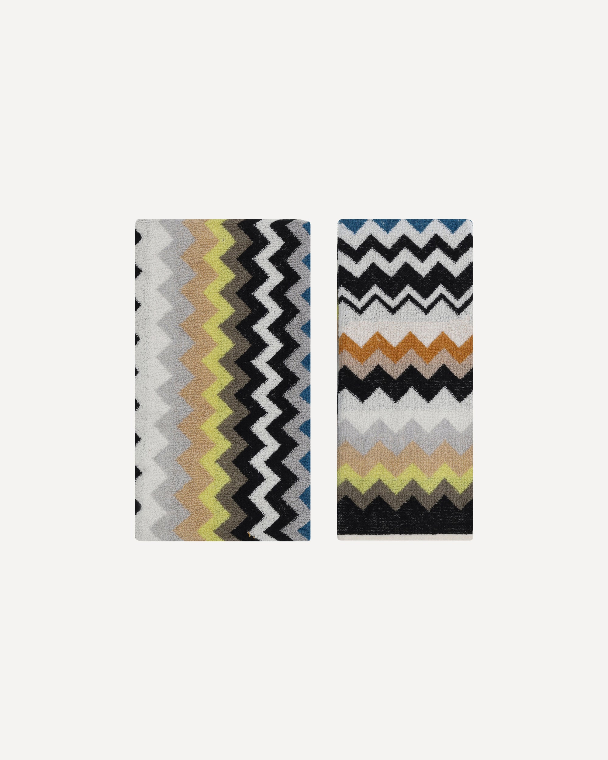 Gli Asciugamani Best in cotone di Missoni presentano un design geometrico effetto spugna, arricchito dall'iconica fantasia zig-zag multicolorata che si ripete su tutta la superficie. Il set è composto da 2 pezzi, unendo funzionalità e stile distintivo, con il tocco elegante e sofisticato che contraddistingue il brand.