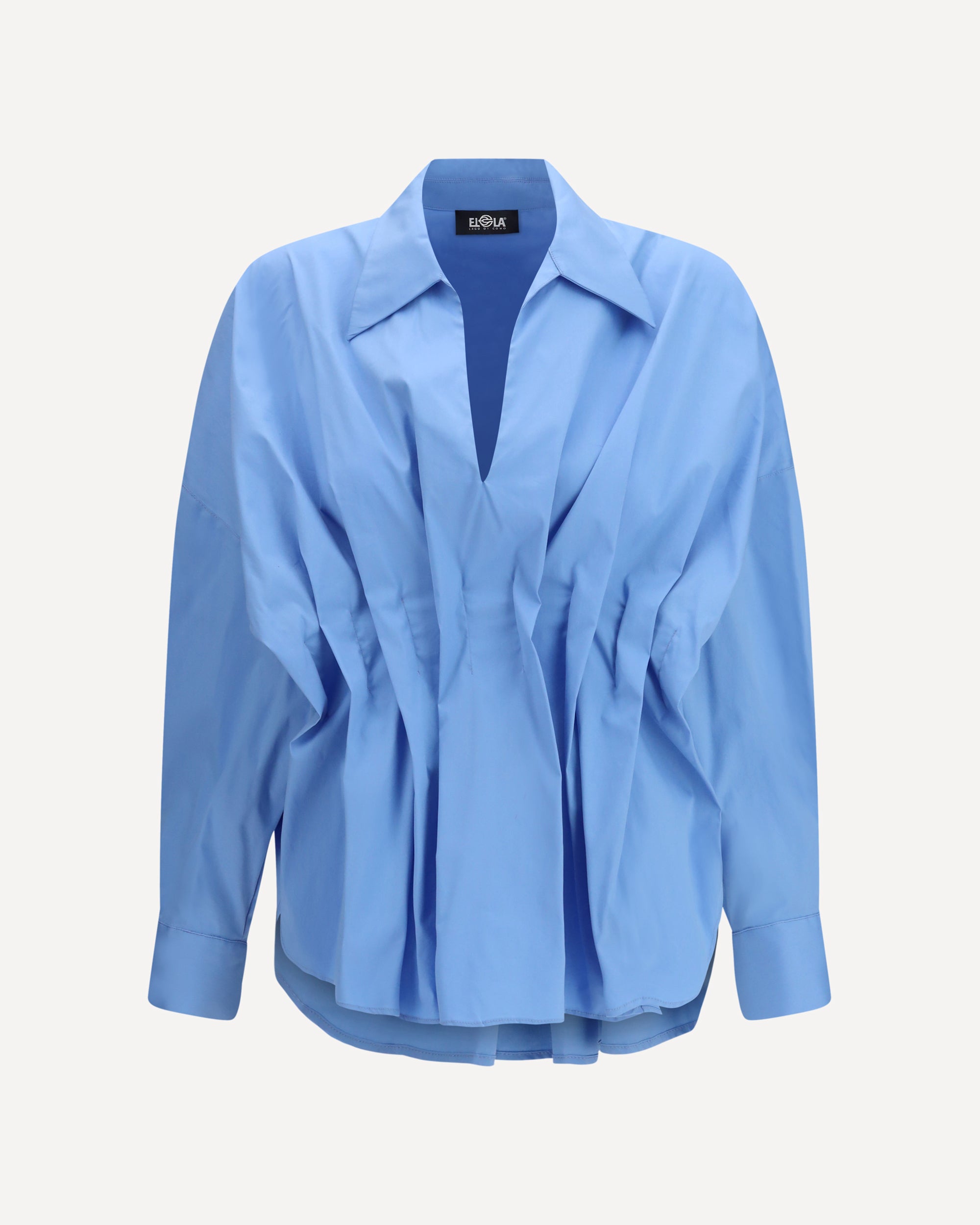 La Camicia con arricciature frontali in cotone con colletto classico e chiusura a bottoni di Ella presenta una linea morbida che valorizza la silhouette con naturale eleganza. Le arricciature sul davanti creano movimento e profondità visiva, mentre le maniche a 3/4 aggiungono un equilibrio contemporaneo alle proporzioni. Il colletto classico e la chiusura frontale definiscono il design con pulizia formale, completando un modello versatile e raffinato espressione dell’identità del brand.