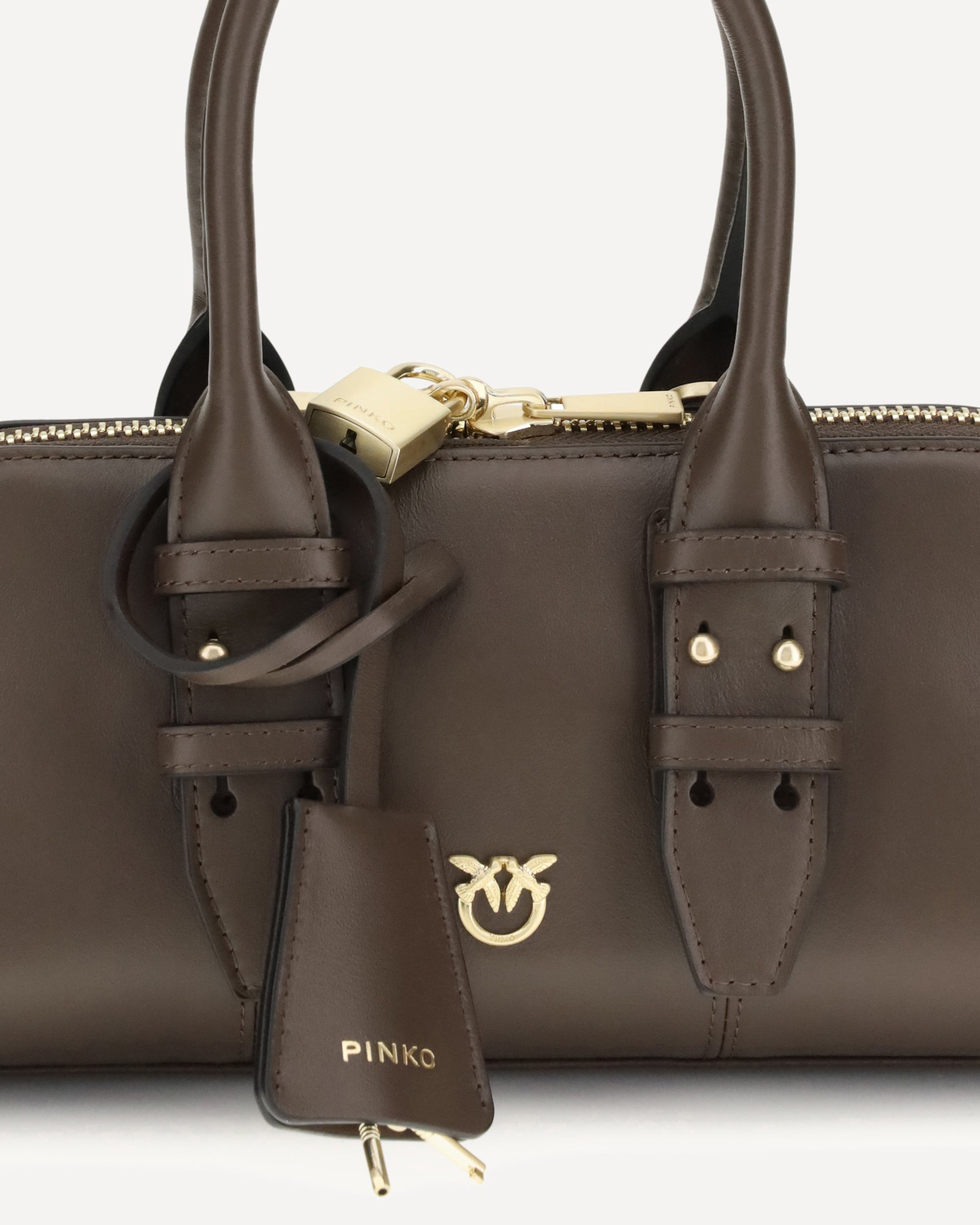 La Borsa a Mano Escape Baguette di Pinko è un modello elegante e funzionale, perfetto per accompagnare ogni momento della giornata. Dotata di manico superiore e tracolla regolabile e rimovibile in pelle, può essere portata a mano, a spalla o crossbody, offrendo grande versatilità. La chiusura con zip a doppio cursore è impreziosita da un dettaglio distintivo: un lucchetto decorato con l’iconico logo Love Birds, apribile grazie alla chiave custodita nel charm in pelle coordinato. Un accessorio pratico e ricercato, con il carattere inconfondibile di Pinko.