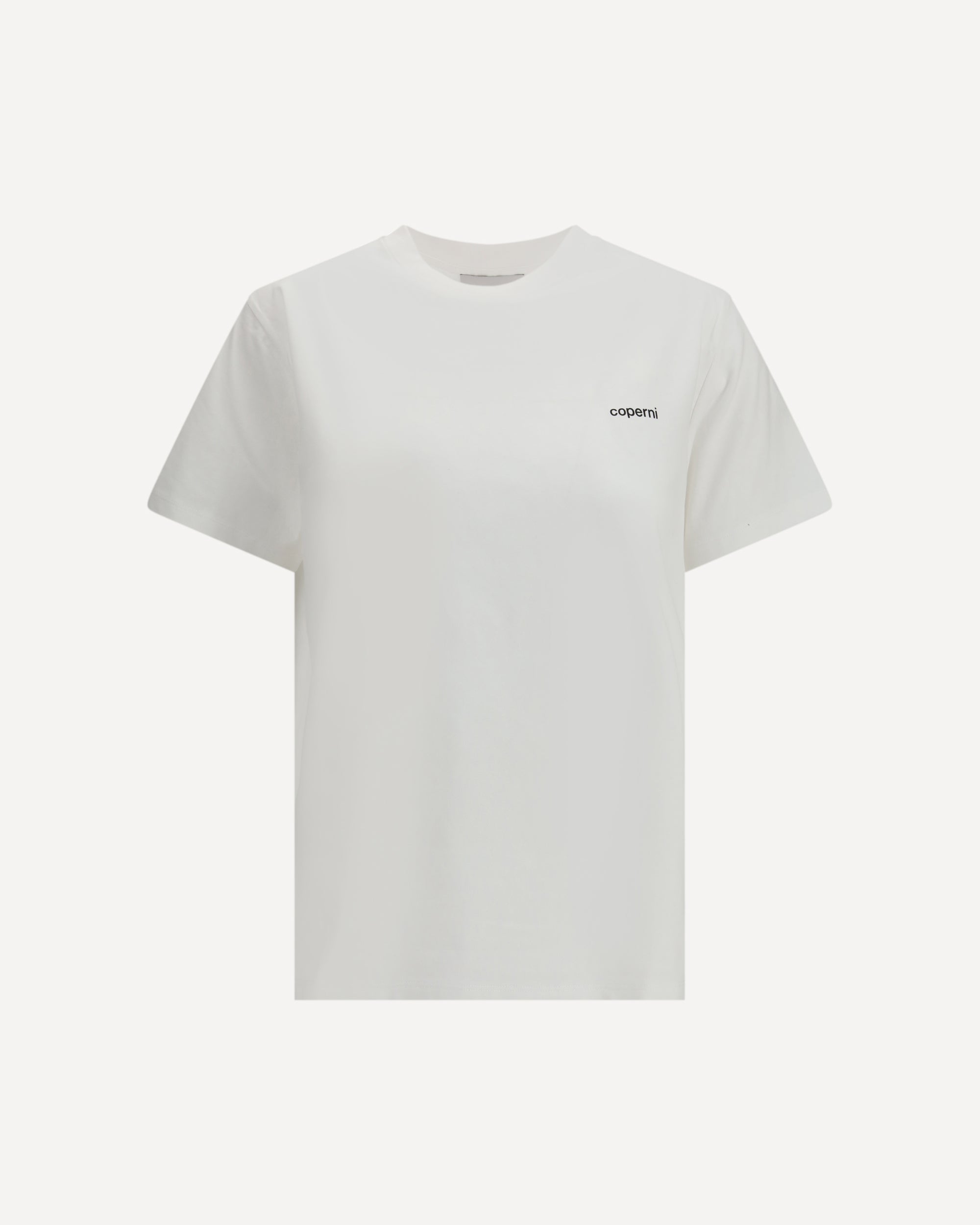La T-shirt con logo di Coperni è realizzata in morbido jersey e presenta un design essenziale rifinito dal classico girocollo e dalle maniche corte. Il logo stampato sul petto aggiunge un dettaglio grafico distintivo, definendo un capo minimal e contemporaneo ideale per l’uso quotidiano.