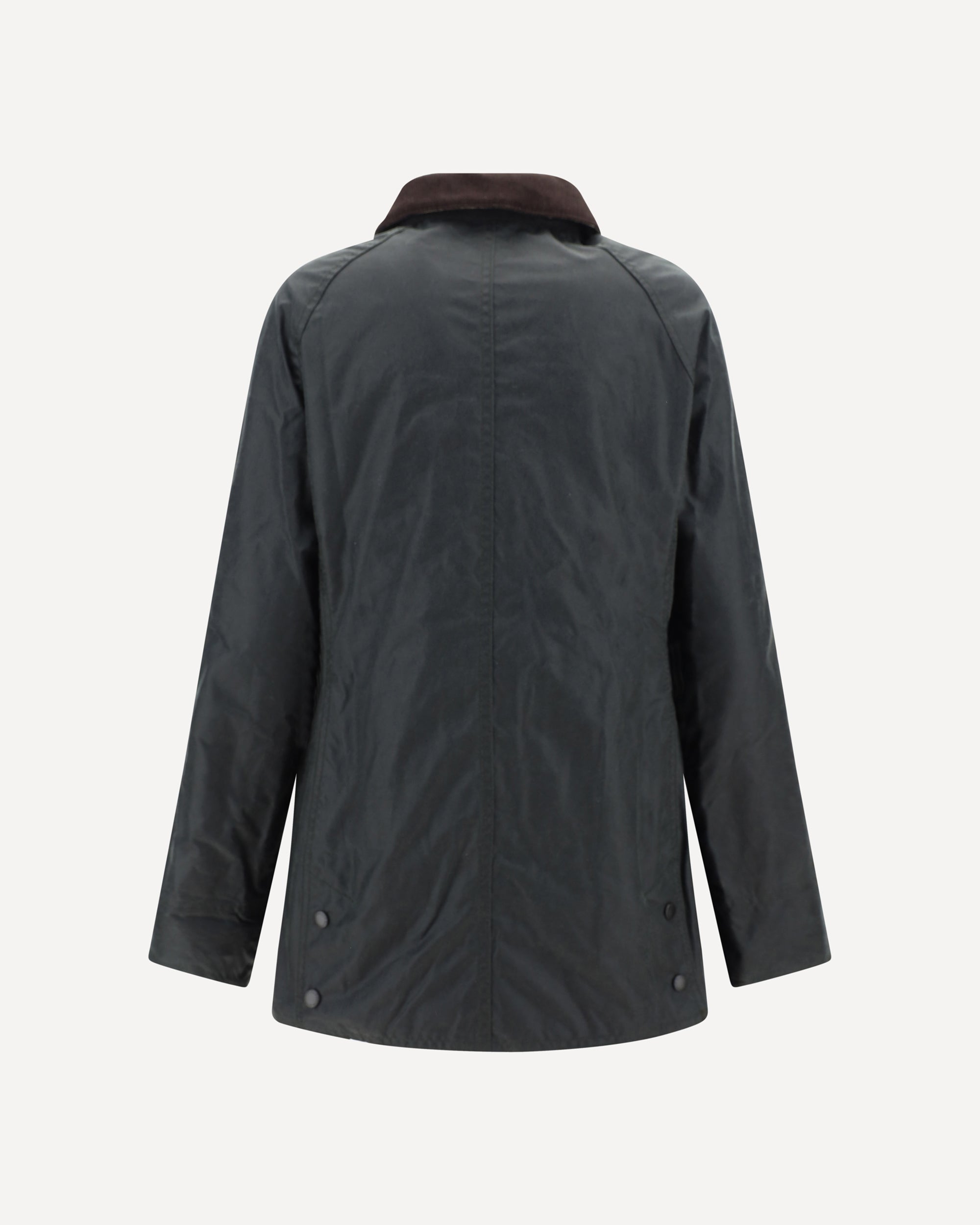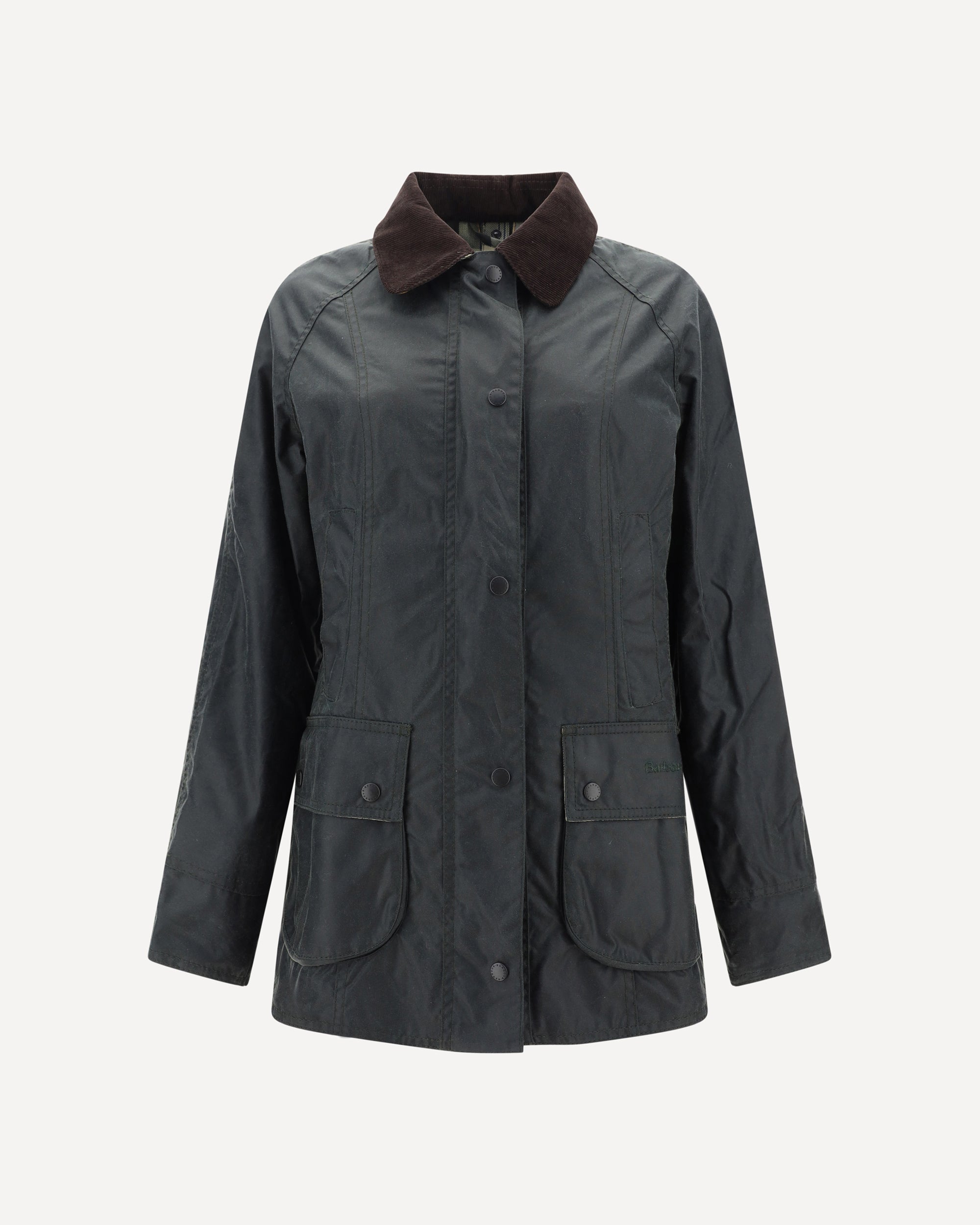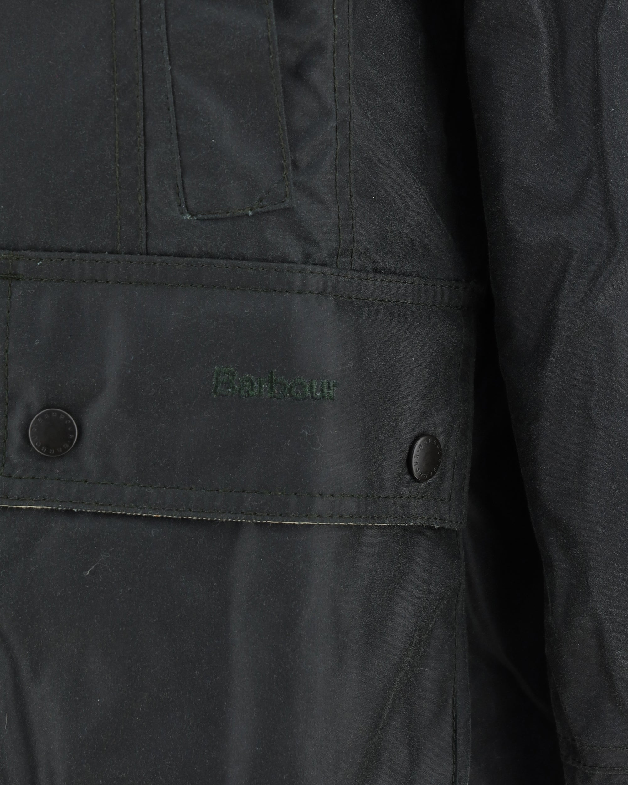 Giacca cerata Breadnell di Barbour, chiusura frontale con cerniera e bottoni a pressione nascosti, colletto classico a costine, due tasche applicate con pattina per chiusura sui fianchi, fodera interna con fantasia tartan, iconico monogramma brand ricamato tono su tono sulla pattina di una tasca, due spacchi regolabili con bottoni a pressione sul retro, vestibilità regular.
