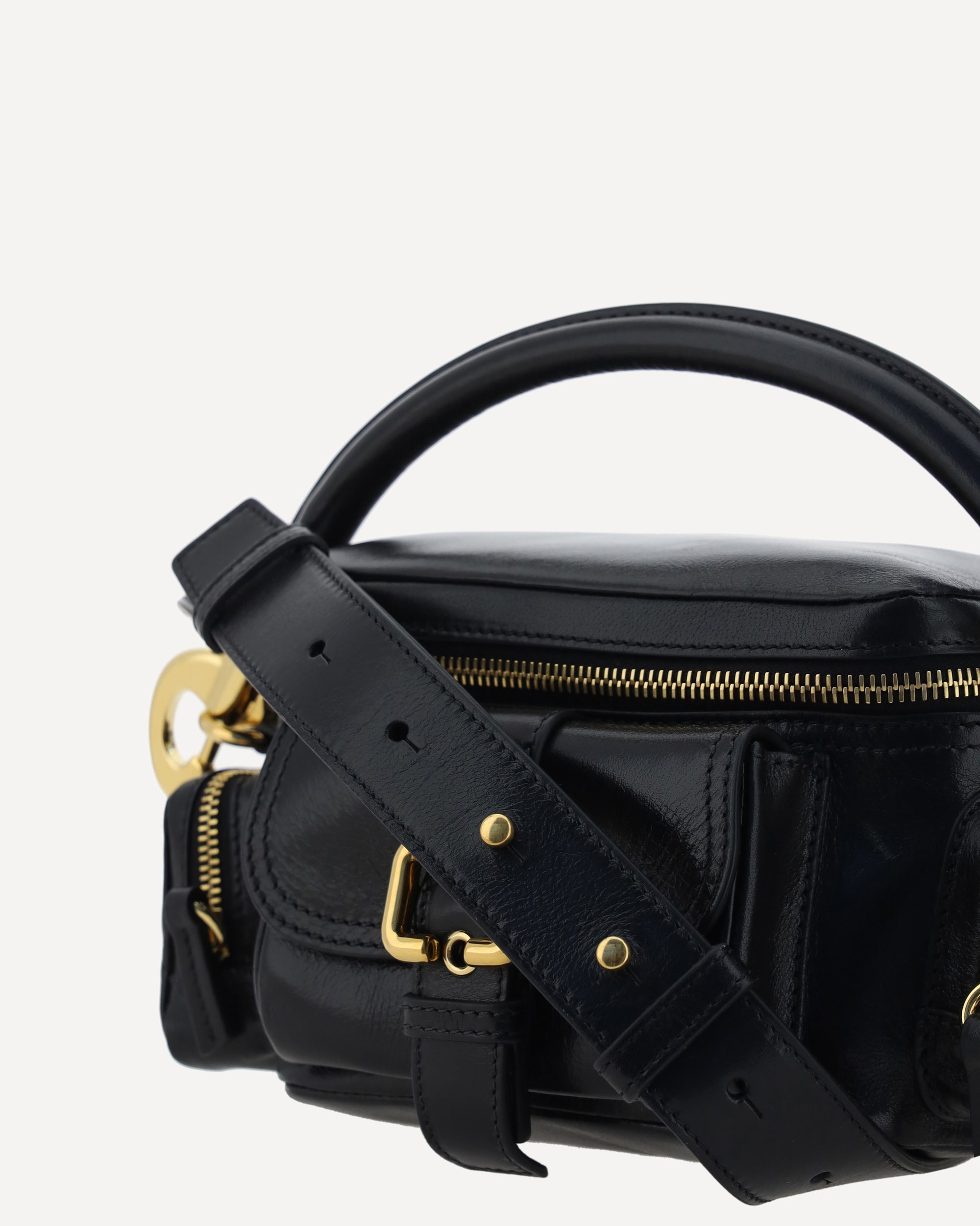 La Borsa a Mano Camera in pelle di Chloé unisce funzionalità e design raffinato. Dotata di un manico tubolare removibile e di una tracolla piatta regolabile e removibile, offre diverse opzioni di indosso. La chiusura superiore con cerniera garantisce praticità, mentre le due tasche laterali con cerniera e la tasca frontale con patta e cinghia aggiungono spazio extra per un'organizzazione ottimale. L'unico scomparto interno completa il design versatile, rendendola perfetta per un look sofisticato e dinamico.