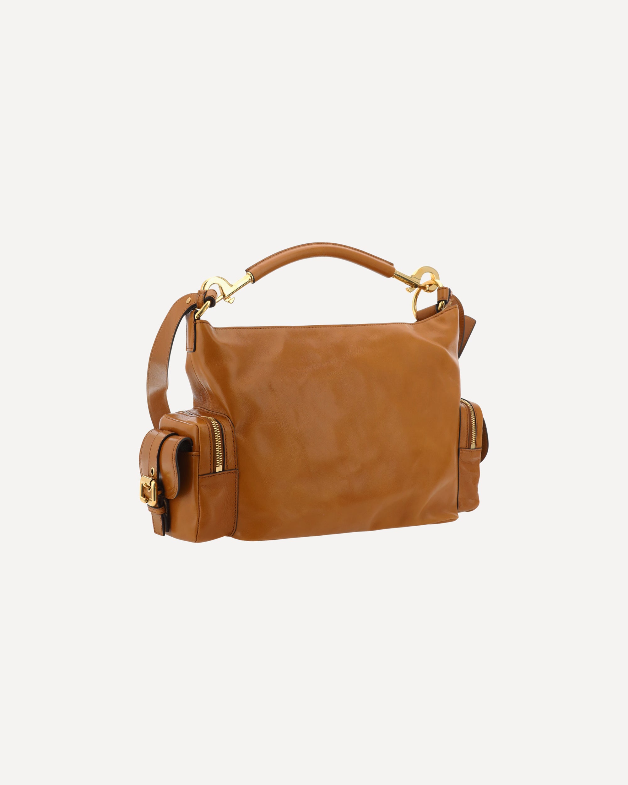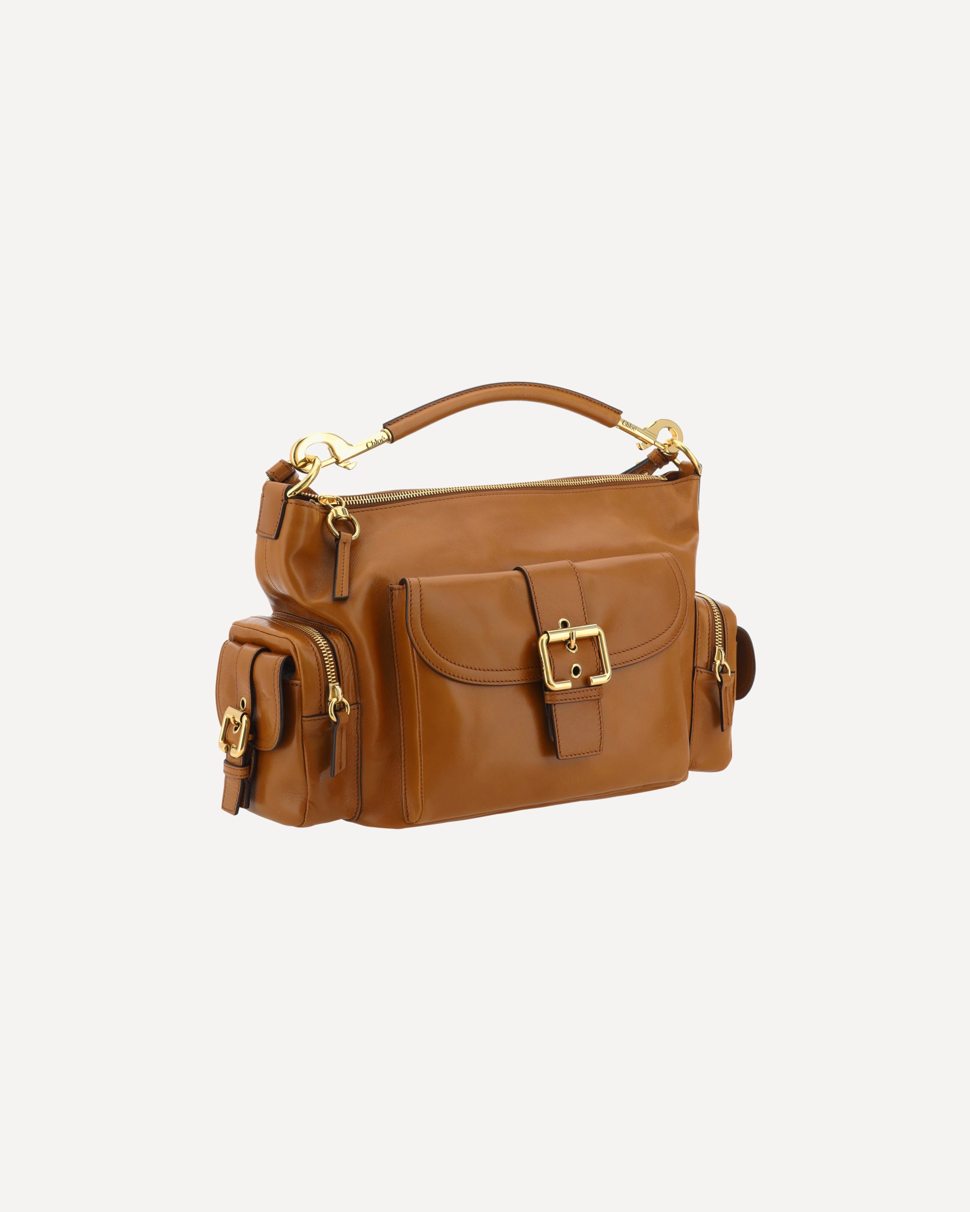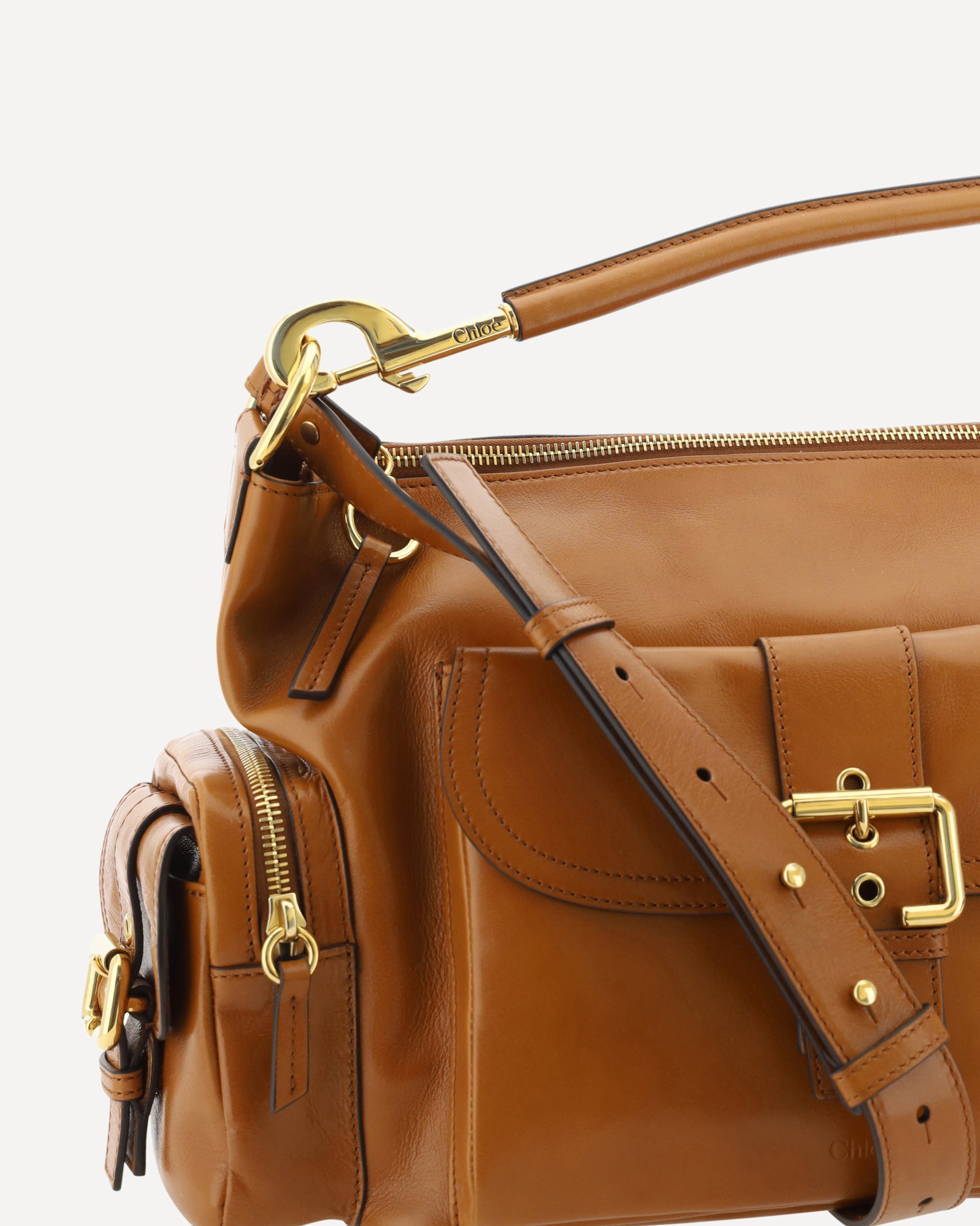 La Borsa a Mano Camera di Chloé è un accessorio versatile e sofisticato, realizzato in pelle di alta qualità. Presenta un manico tubolare removibile sulla parte superiore per un'opzione di trasporto elegante, insieme a una tracolla piatta regolabile che può essere rimossa per adattarsi a diverse esigenze. La chiusura superiore con cerniera garantisce sicurezza, mentre le due tasche laterali con cerniera offrono praticità. Un'ulteriore tasca frontale con patta e cinghia aggiunge un tocco distintivo. All'interno, un unico scomparto consente di organizzare gli effetti personali con stile.
