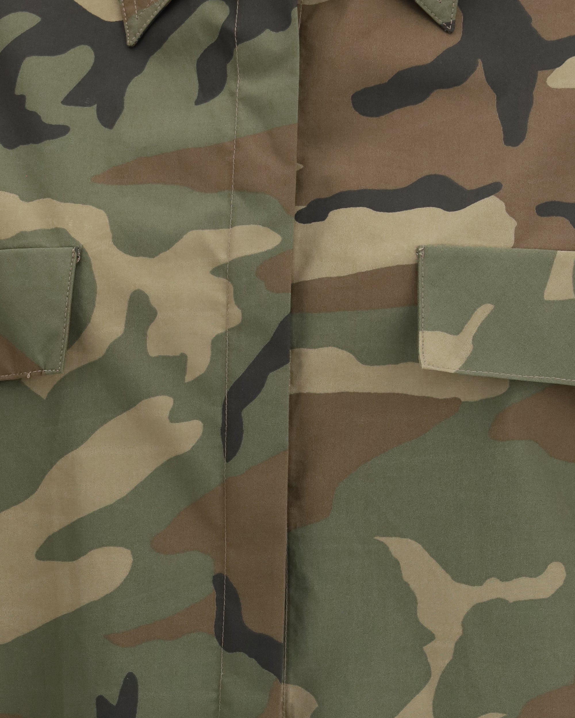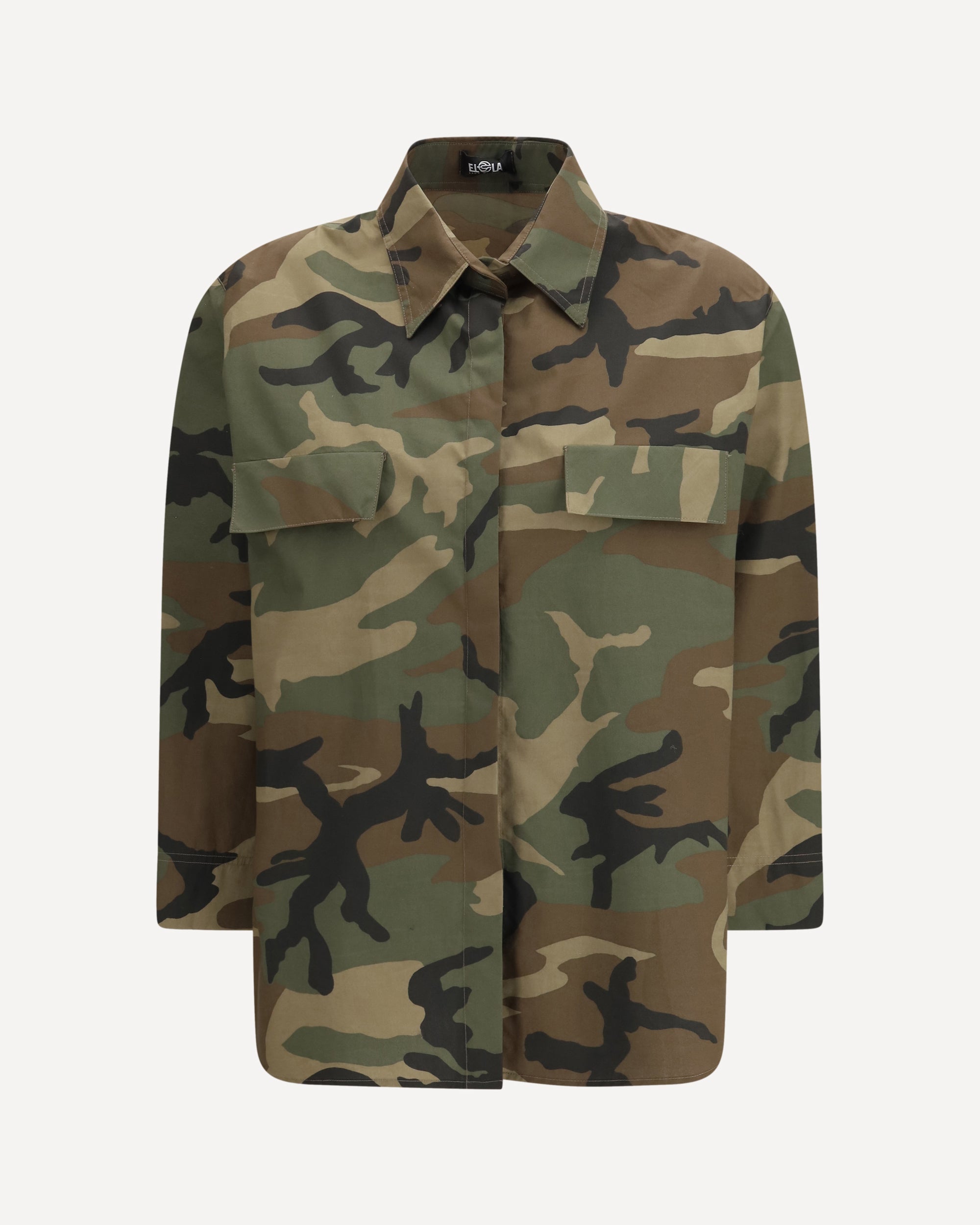 La Camicia Camouflage in cotone con colletto classico e tasche frontali di Ella presenta una linea strutturata con attitudine contemporanea. Il colletto classico definisce il profilo con equilibrio, mentre le due tasche applicate sul davanti aggiungono funzionalità essenziale. La chiusura a bottoni nascosta mantiene il design pulito e coerente, completando un modello pensato per un guardaroba dinamico e distintivo.