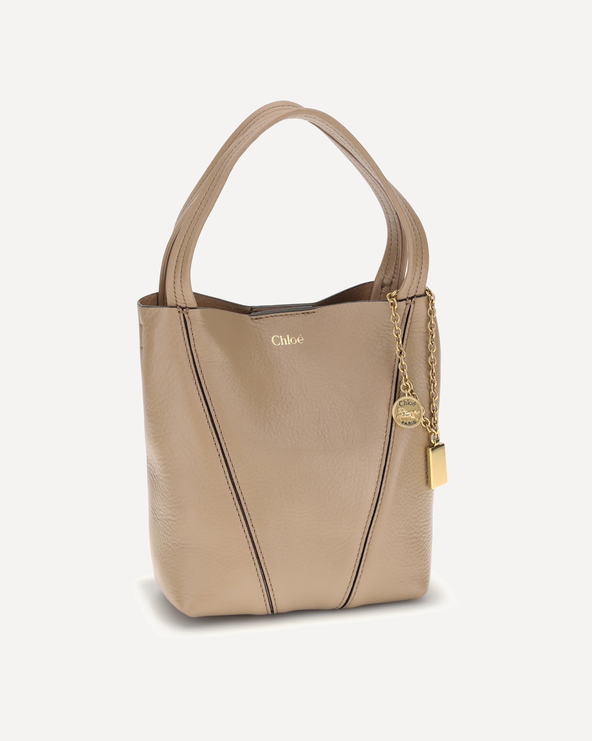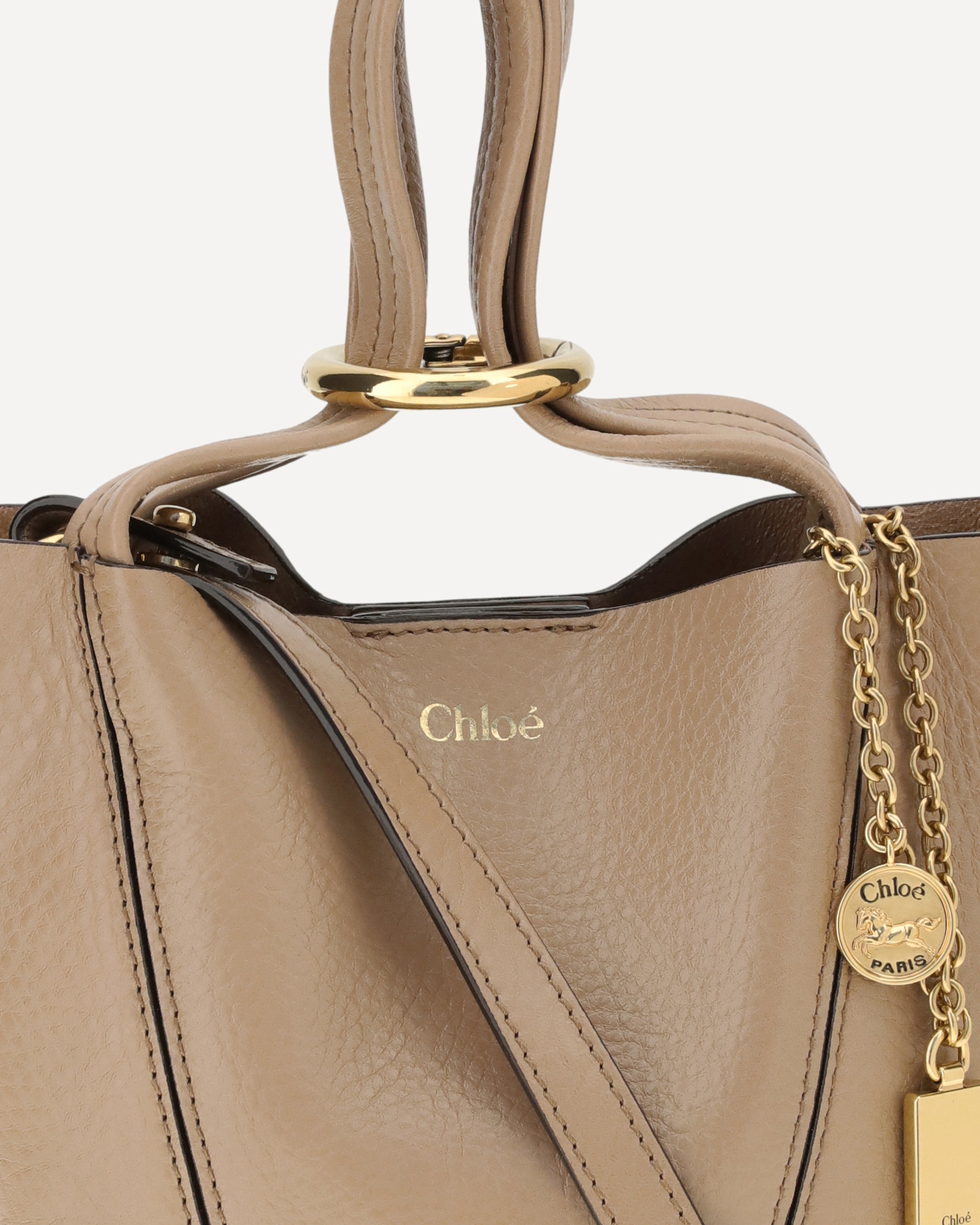 La Borsa a Tracolla Spin di Chloé, realizzata in pelle granata lucida, presenta un design elegante con due manici piatti superiori e una tracolla regolabile. La chiusura è garantita da un bottone magnetico, mentre il dettaglio della catena pendente con medaglie Chloé e l’emblematico Horse aggiunge un tocco distintivo. Sul fronte spicca l’iconico monogramma stampato a pressione e all’interno si trova un unico scomparto, per un’estetica minimalista e funzionale.