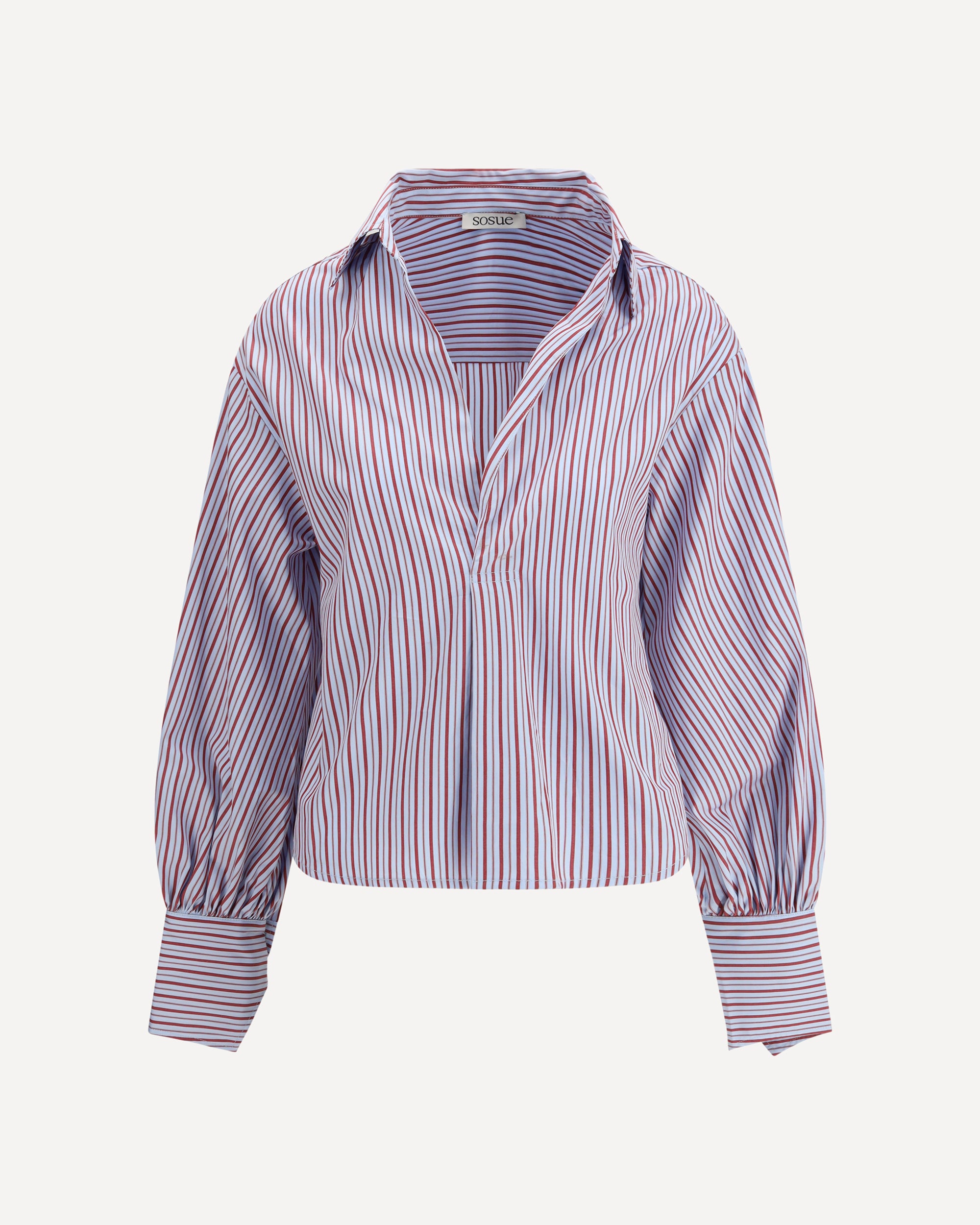 La Camicia Claire di Sosue a righe è un modello dal fascino contemporaneo e raffinato. Realizzata in tessuto a righe, presenta una scollatura pulita senza bottoni o zip e una lunghezza leggermente cropped che dona un tocco moderno alla silhouette. I polsini lunghi con chiusura a bottone singolo completano il design essenziale, perfetto per look eleganti ma rilassati.