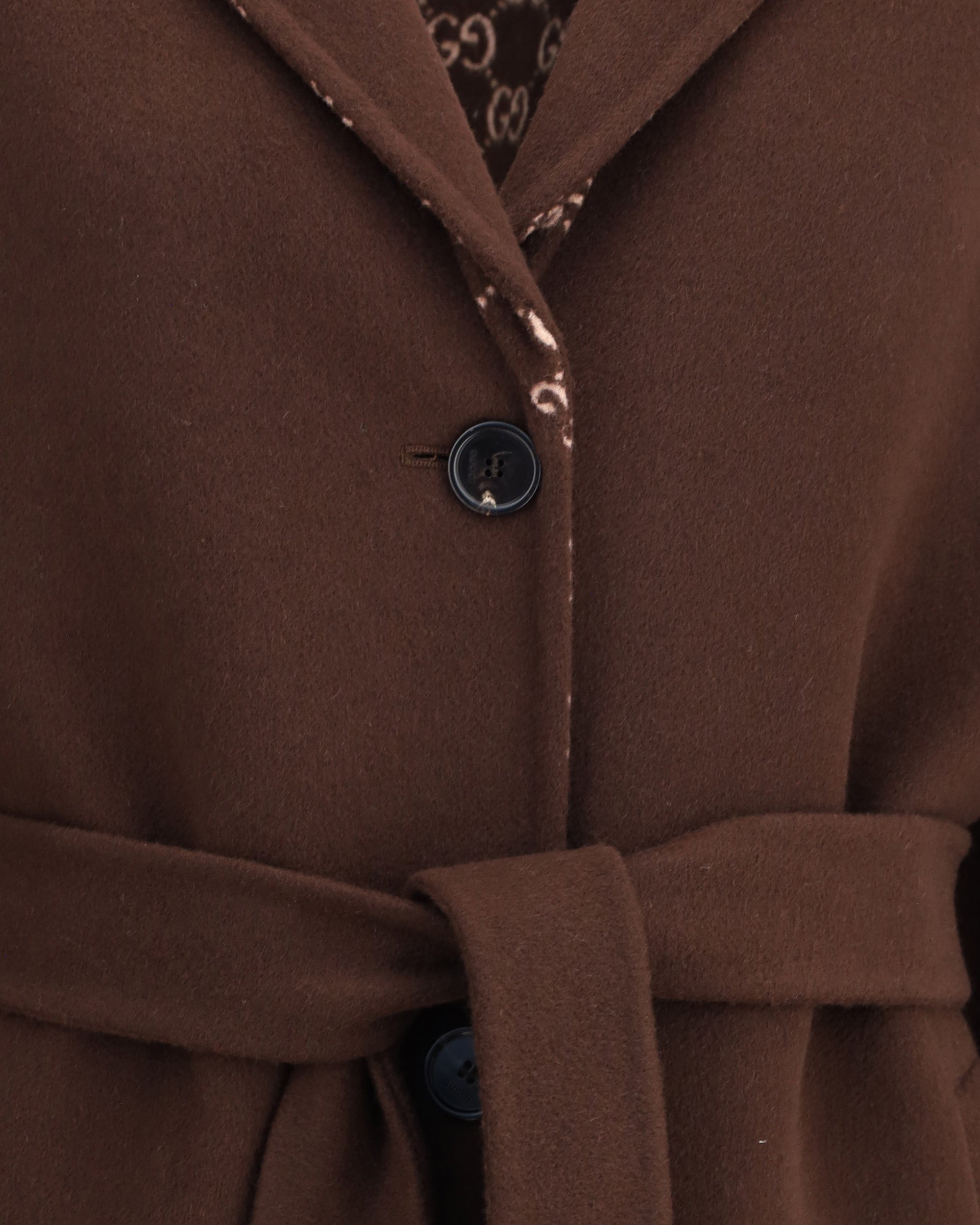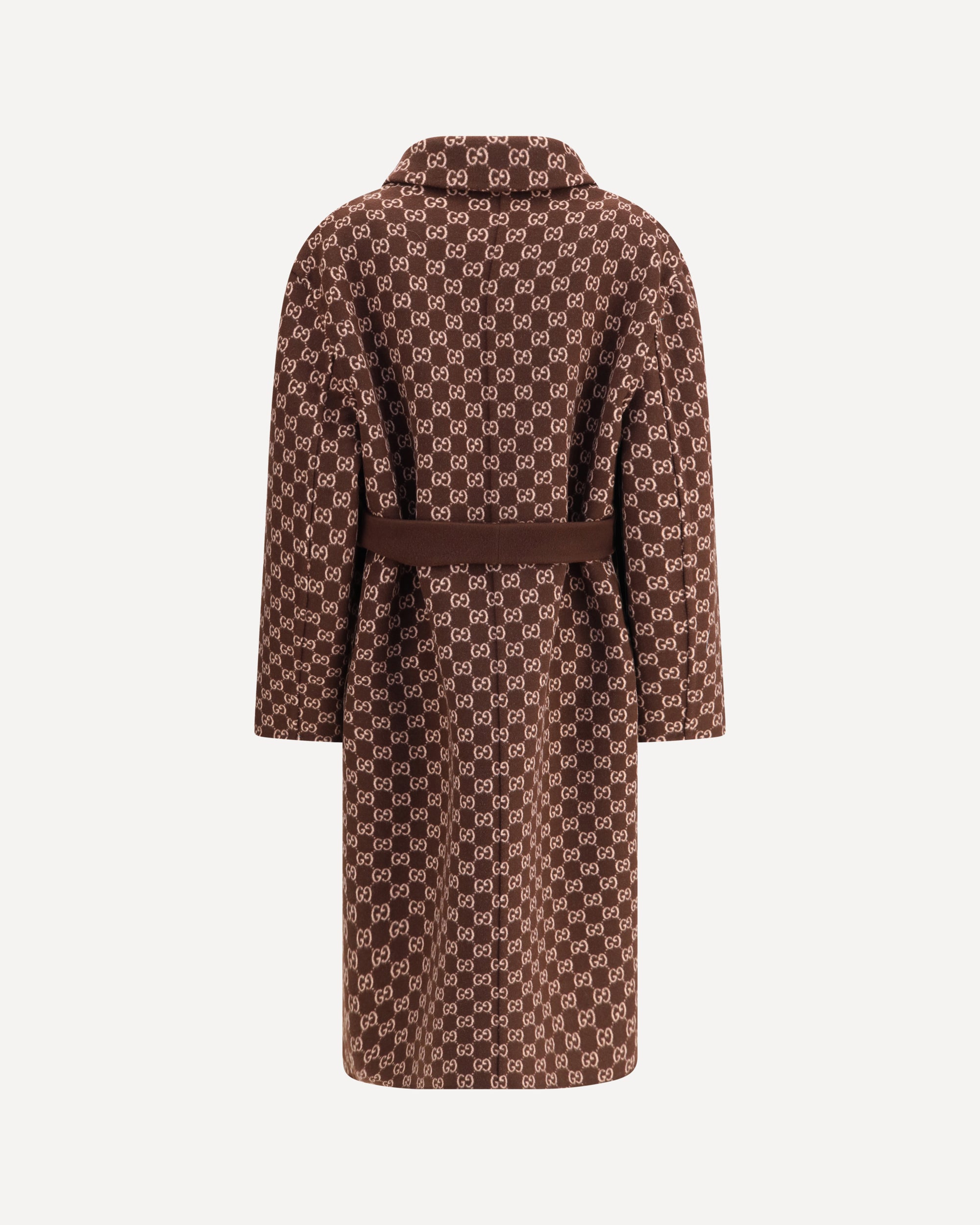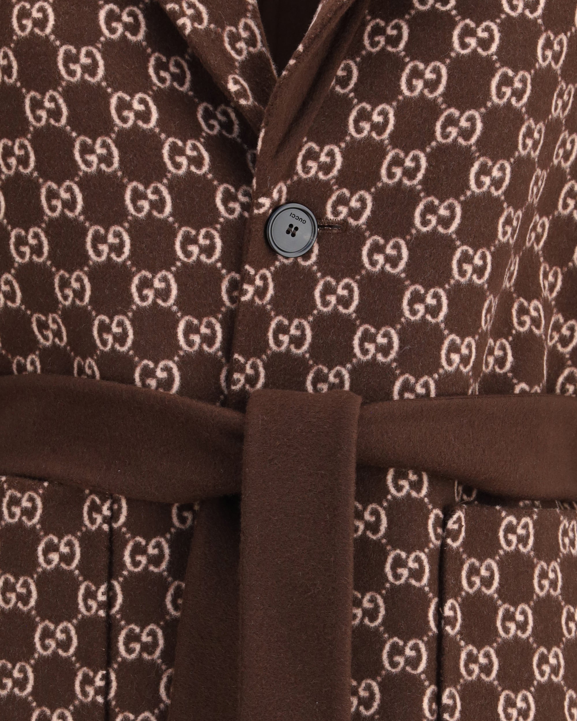 Il Cappotto reversibile in seta e lana di Gucci è un capo raffinato e versatile, perfetto per valorizzare ogni look con un tocco distintivo. Realizzato in lana di seta marrone su un lato e in lana di seta con motivo GG marrone e rosa chiaro sull’altro, offre due anime in un unico capo. Sfoderato, con bavero a tacca, presenta una linea essenziale completata da due tasche laterali e chiusura con bottoni. Un’eleganza sofisticata, firmata Gucci.