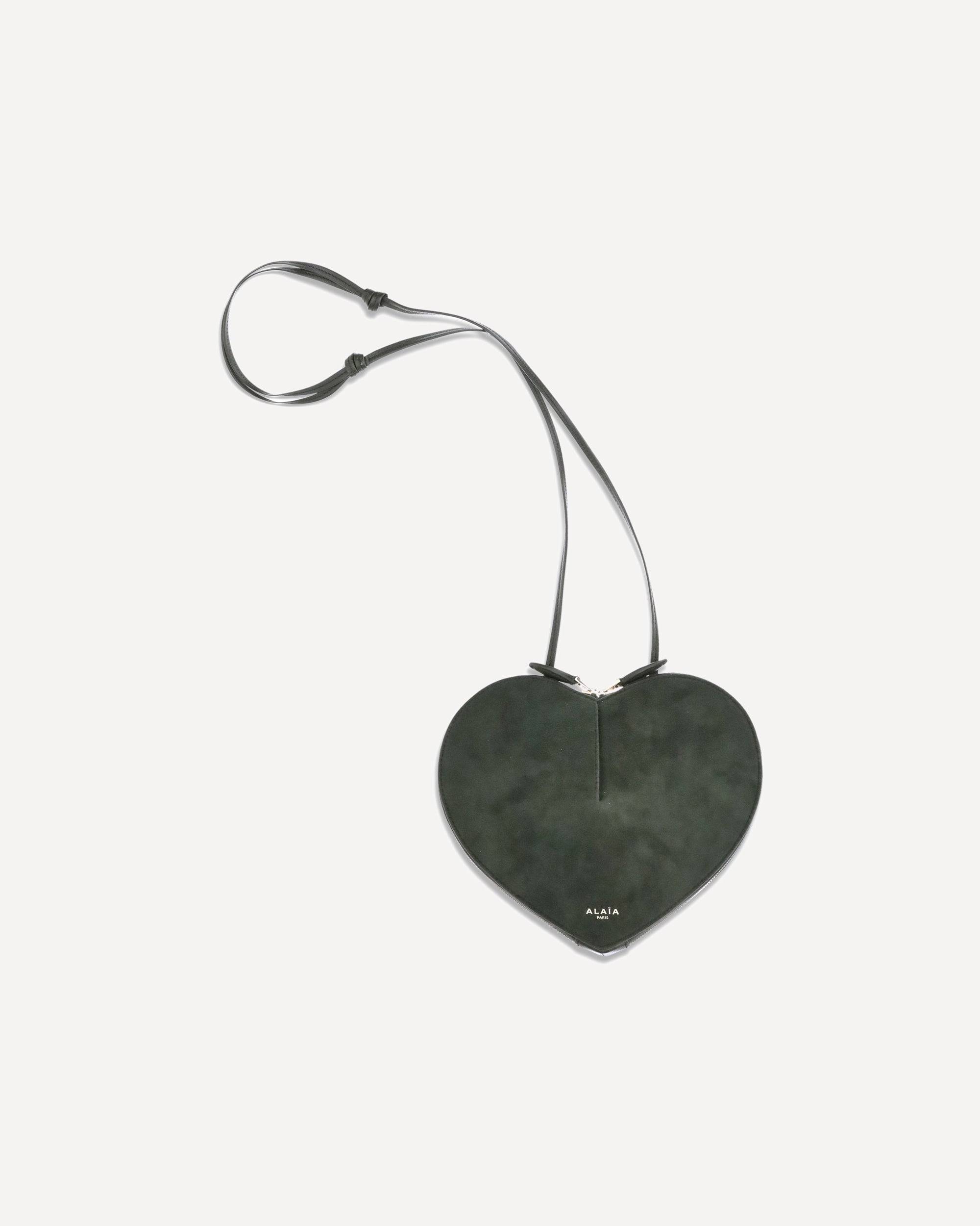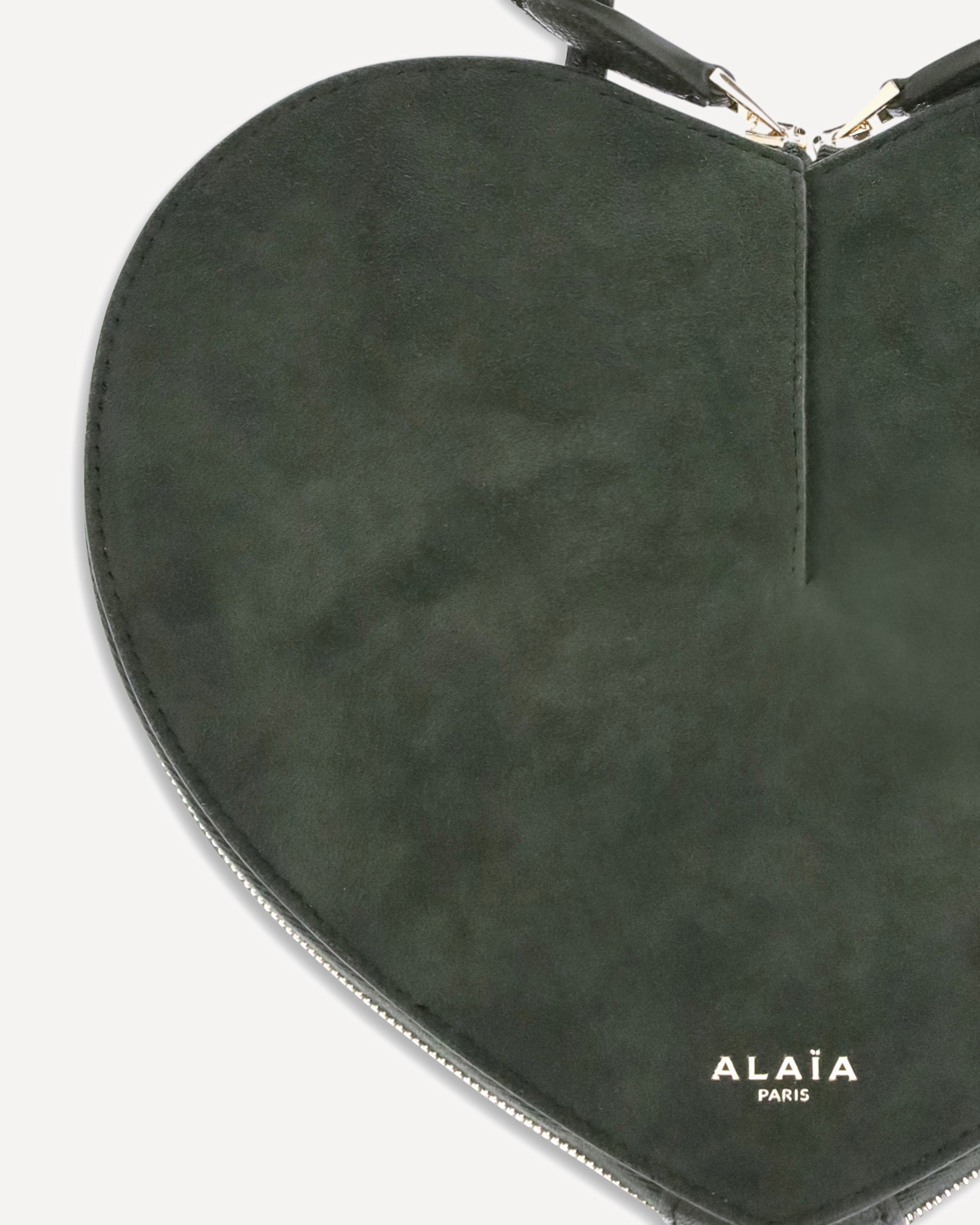 La Borsa a Tracolla Cœur di Alaïa si distingue per la sua originale silhouette a forma di cuore 3D e il sofisticato mix di materiali. Realizzata in pelle di capra scamosciata e pelle di capra a grana fine naturale con finitura lucida, unisce texture a contrasto per un effetto elegante e moderno. La chiusura superiore con zip a doppio cursore garantisce praticità, mentre la tracolla removibile consente un utilizzo versatile. L’interno, con unico scomparto, è pensato per custodire l’essenziale con stile.