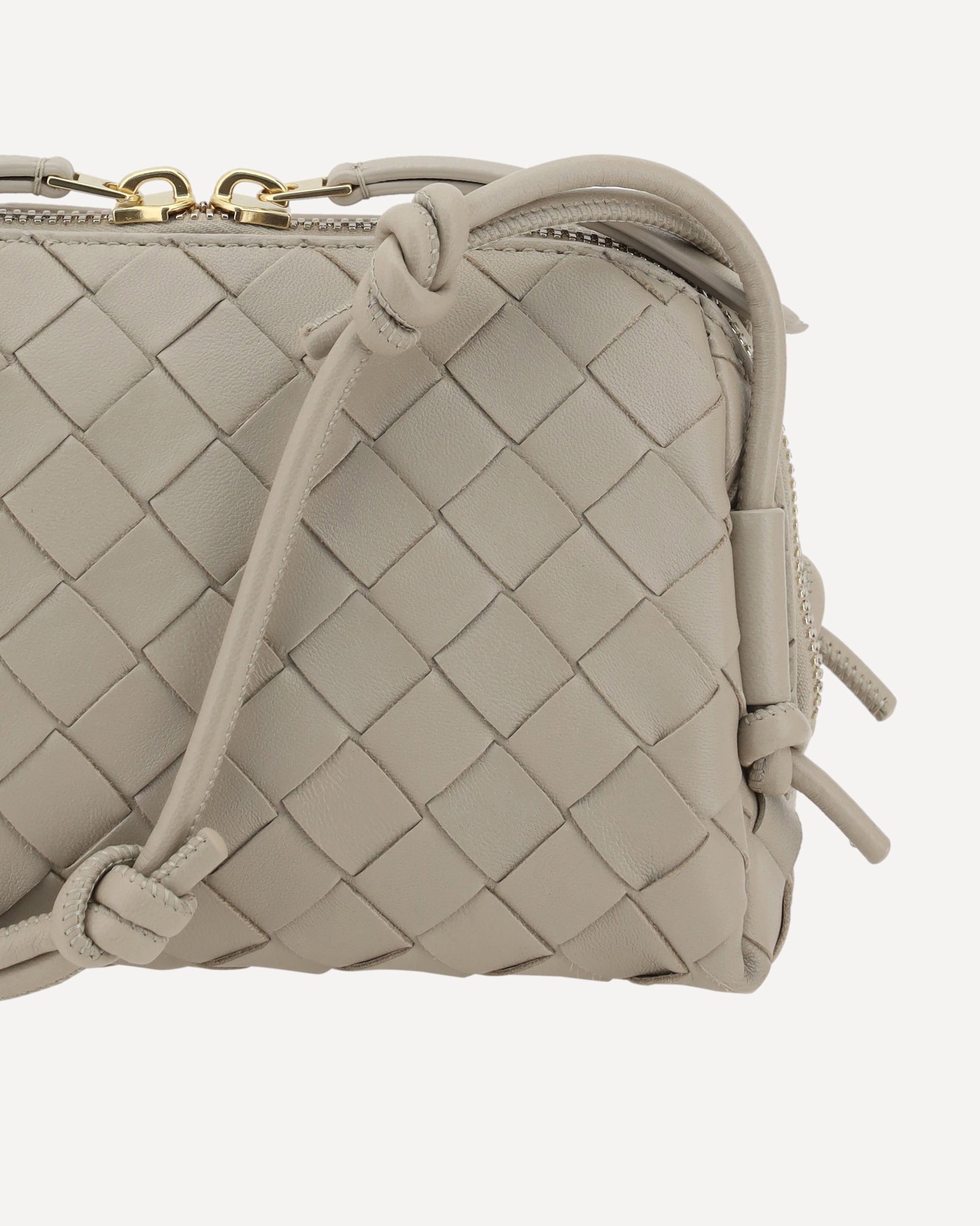 La Borsa a Tracolla Concert di Bottega Veneta è realizzata in pelle pregiata e presenta l'iconica lavorazione ad intreccio del brand, ripetuta su tutta la superficie. La chiusura è con cerniera a doppio cursore nella parte superiore, mentre la tracolla tubolare regolabile, con nodi mobili, consente di personalizzare la lunghezza. All'interno, un unico scomparto per un’organizzazione semplice e pratica.