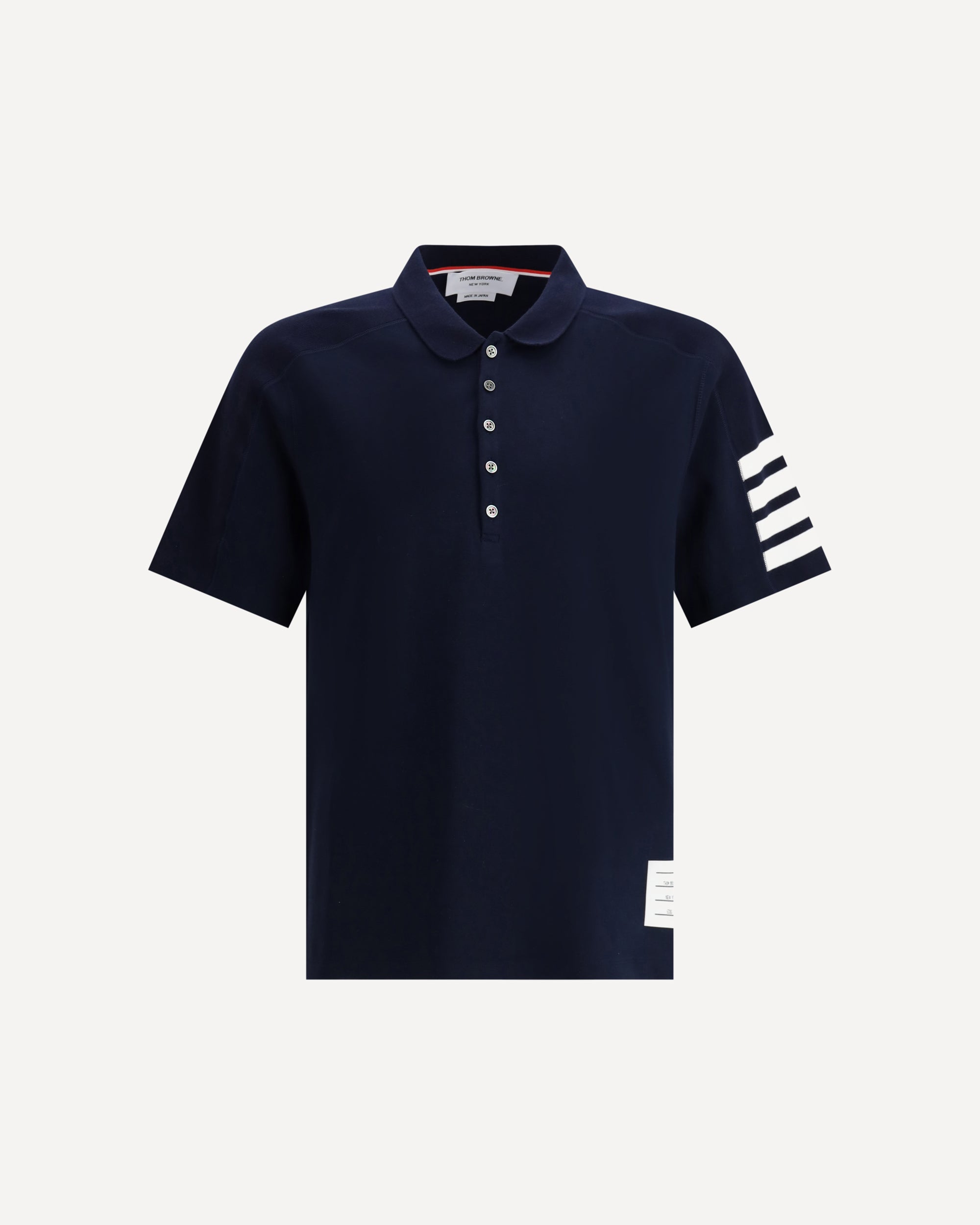 La Maglia Polo in cotone di Thom Browne è un capo sofisticato e moderno, caratterizzato dal colletto classico a costine che offre una vestibilità comoda e raffinata. I bottoncini tono su tono sulla chiusura frontale mantengono un aspetto elegante e discreto. Le iconiche bande orizzontali a contrasto sulla manica sinistra aggiungono un tocco distintivo e riconoscibile, mentre gli spacchi laterali garantiscono libertà di movimento e un fit perfetto. Il patch con l'iconico logo del brand sul fronte completa il look, conferendo al capo un elemento di lusso discreto.