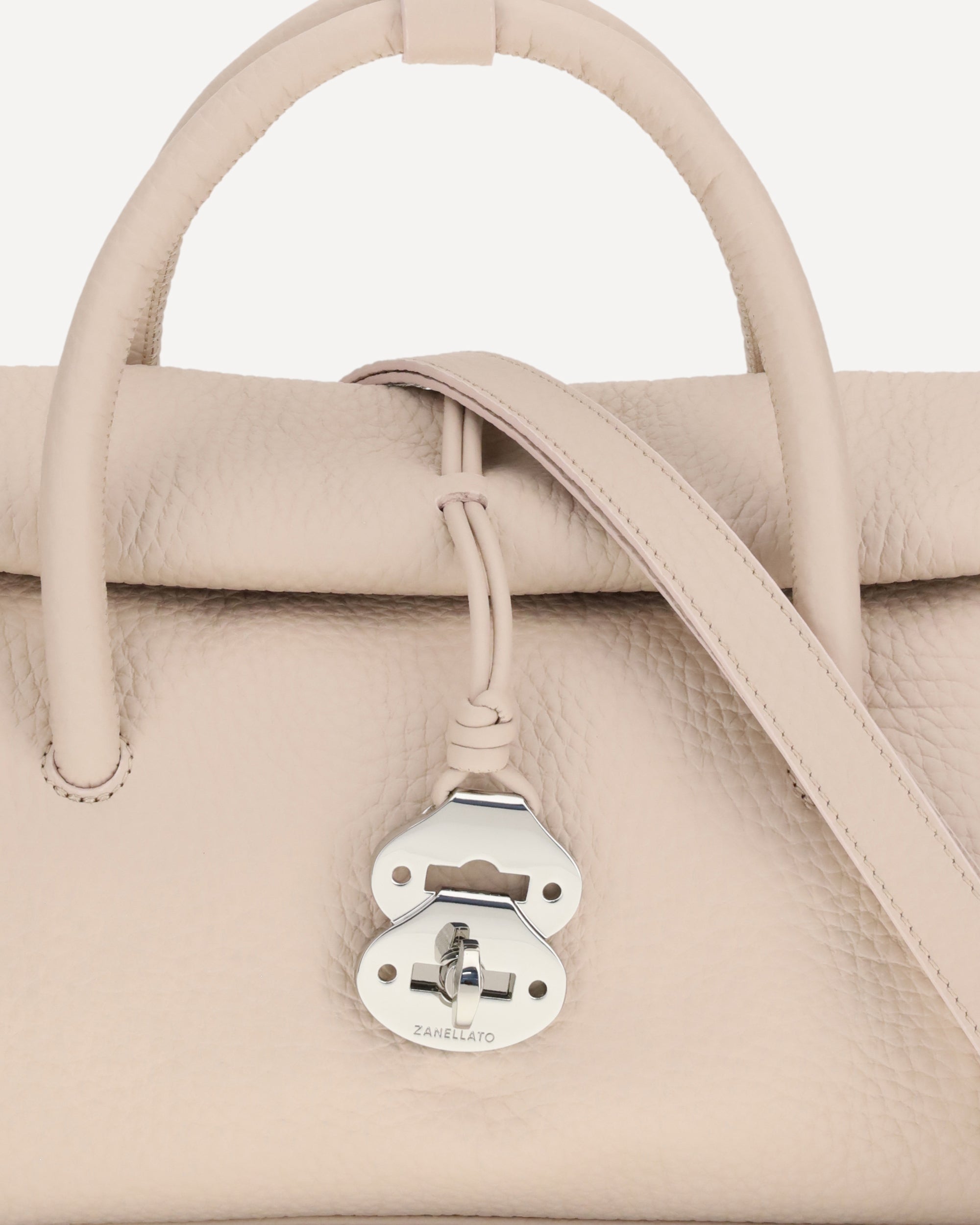 La Borsa a Tracolla Dotta Centauro di Zanellato è realizzata in pelle pregiata, con un design elegante e funzionale. La parte superiore è dotata di due manici tubolari in pelle, che offrono una presa comoda. La chiusura frontale è caratterizzata da un gancio a girello, aggiungendo un tocco di raffinatezza. La tracolla regolabile e removibile permette di portarla in diverse modalità. I pannelli laterali sono decorati con borchie piatte, conferendo un accento rock-chic. All'interno, la borsa è divisa in due scomparti, con una tasca a filetto, per un'organizzazione ottimale.