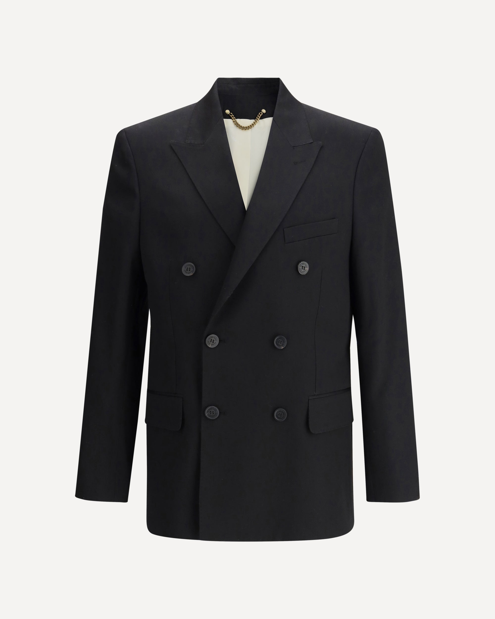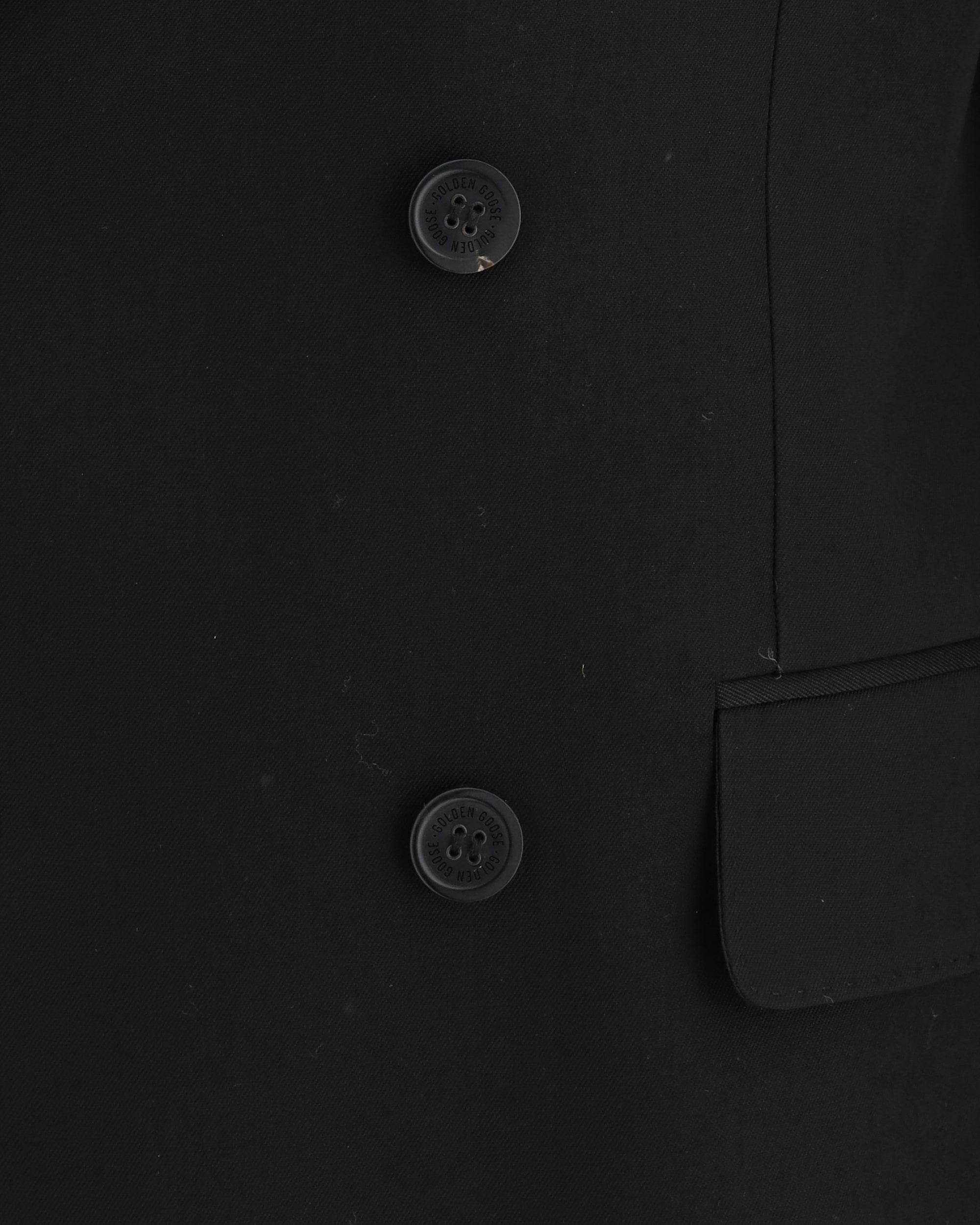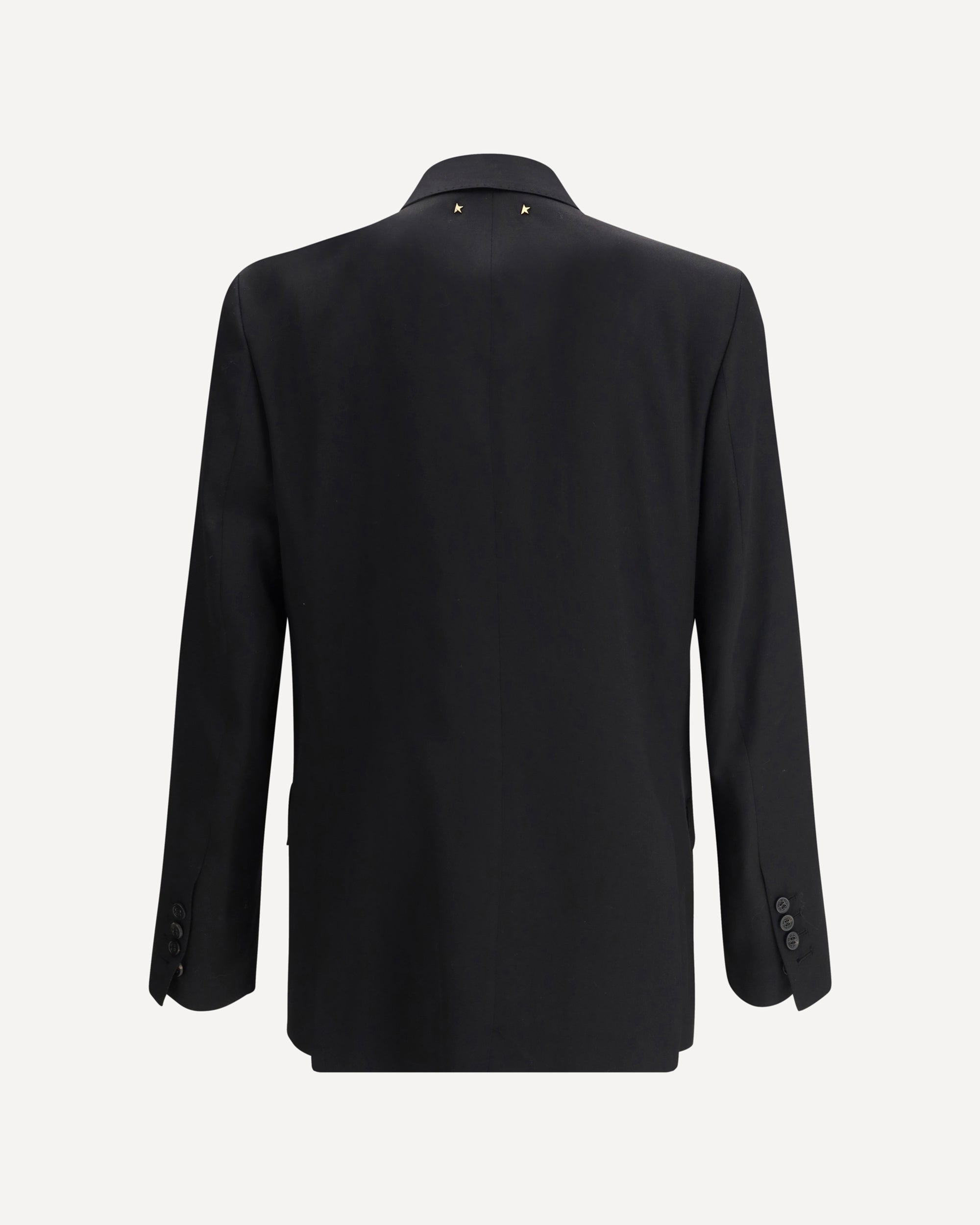 Il Blazer doppiopetto di Golden Goose presenta una chiusura frontale con bottoni, che sottolinea il suo design classico e strutturato. È caratterizzato da rever a lancia, un dettaglio elegante che conferisce al capo un aspetto sofisticato. Sul fronte, il blazer dispone di due tasche a filetto con pattina e un taschino frontale a filetto, che aggiungono funzionalità e un tocco di raffinatezza. Il retro del blazer è arricchito da due spacchi, che permettono una maggiore libertà di movimento e completano il design in modo armonioso.