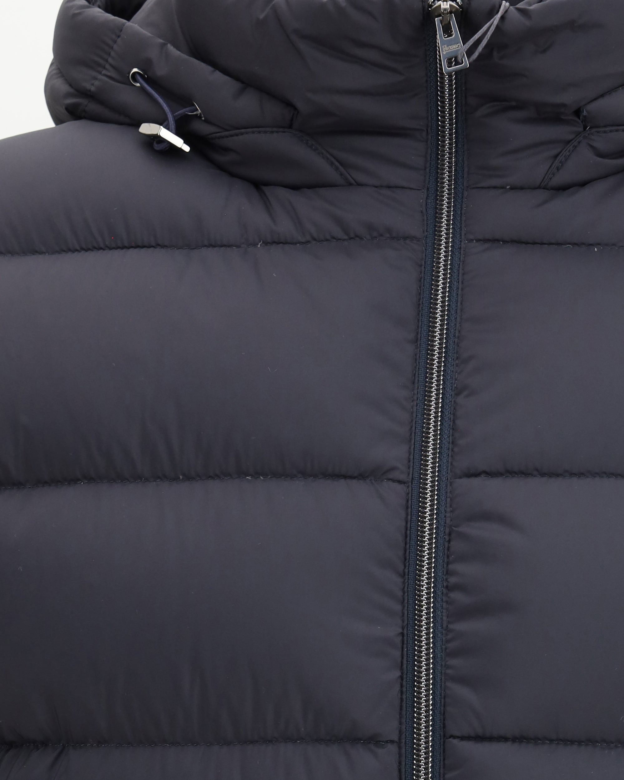 Il Bomber di Herno reinterpreta un classico dell’outerwear con equilibrio tra funzionalità e stile. Realizzato in microfibra di nylon riciclato con finitura idrorepellente, offre una texture morbida e un aspetto elegante. L’imbottitura in piuma d’oca assicura calore e leggerezza, mentre il cappuccio removibile e la chiusura con zip a doppio cursore rendono il capo versatile e contemporaneo. Dettagli pratici come tasche laterali e coulisse regolabile completano un design essenziale e sofisticato.