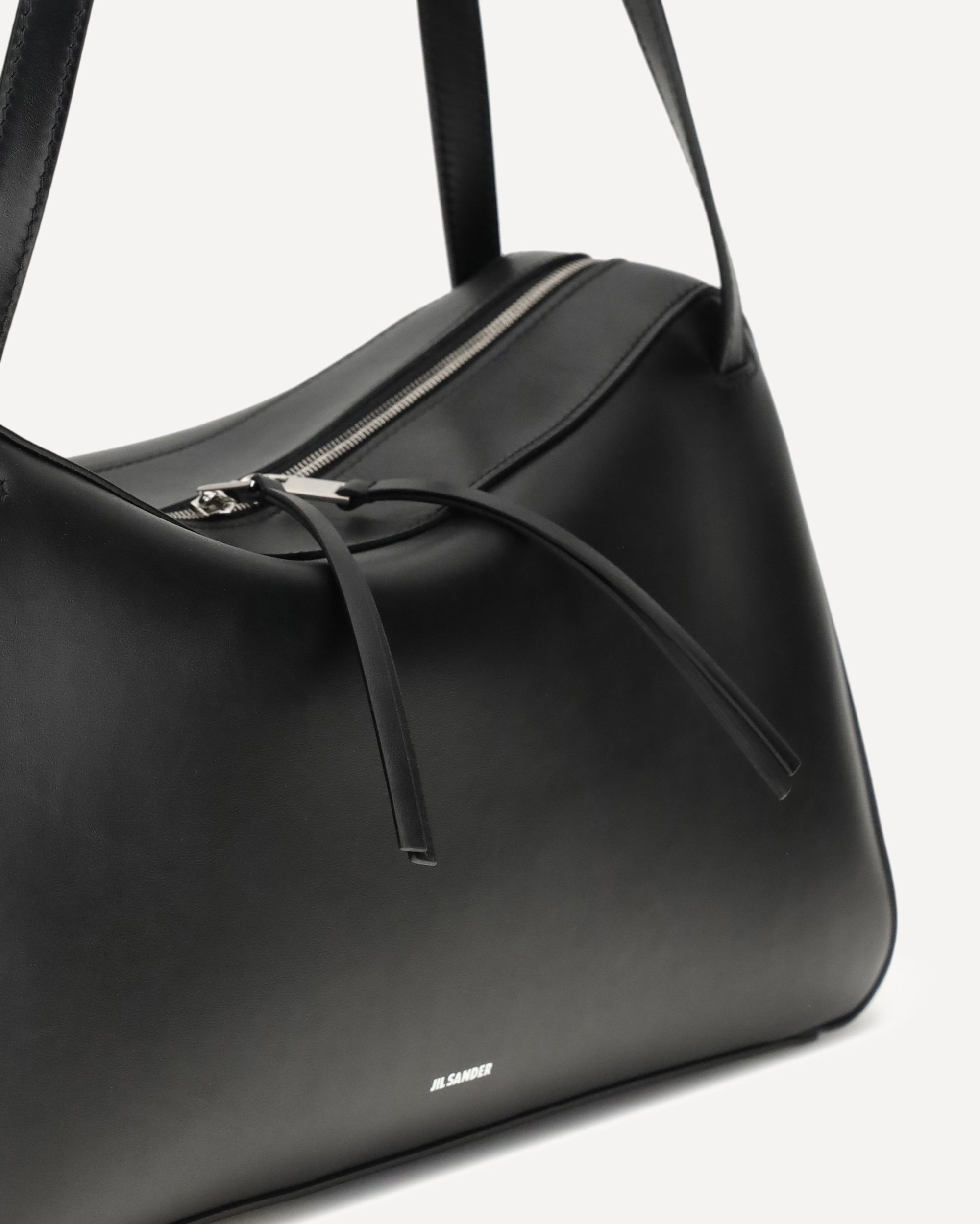 La Borsa a Spalla Dune di Jil Sander si distingue per il suo design essenziale e sofisticato. Dotata di due manici per una portabilità comoda, presenta una chiusura con doppia zip che garantisce praticità e sicurezza. L’interno è organizzato in un unico compartimento capiente, ideale per l’uso quotidiano. Il logo frontale, discreto e raffinato, firma l'accessorio con l'eleganza minimalista tipica della Maison.