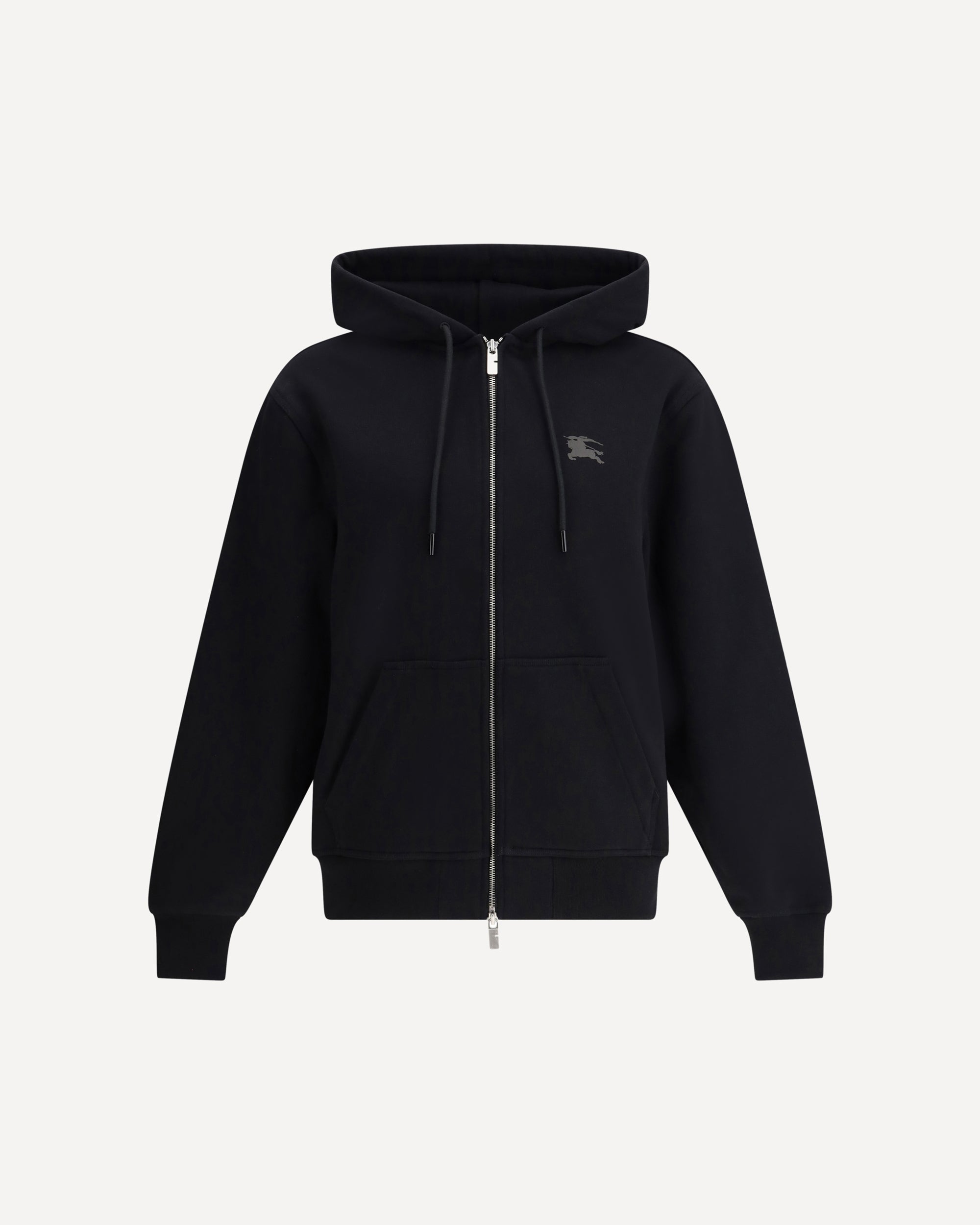 La Felpa con Cappuccio di Burberry è un capo versatile e sofisticato, perfetto per un look casual-chic. Il cappuccio regolabile con cordini permette di adattarlo al proprio stile e alle esigenze, mentre la chiusura frontale con cerniera a doppio cursore offre praticità e un tocco moderno. Le due tasche applicate sul fronte sono funzionali e aggiungono un dettaglio pratico al design. L'iconico logo Equestrian Knight, applicato sia sul fronte che sul retro, è un distintivo simbolo di eleganza, che conferisce alla felpa un'identità forte e riconoscibile.