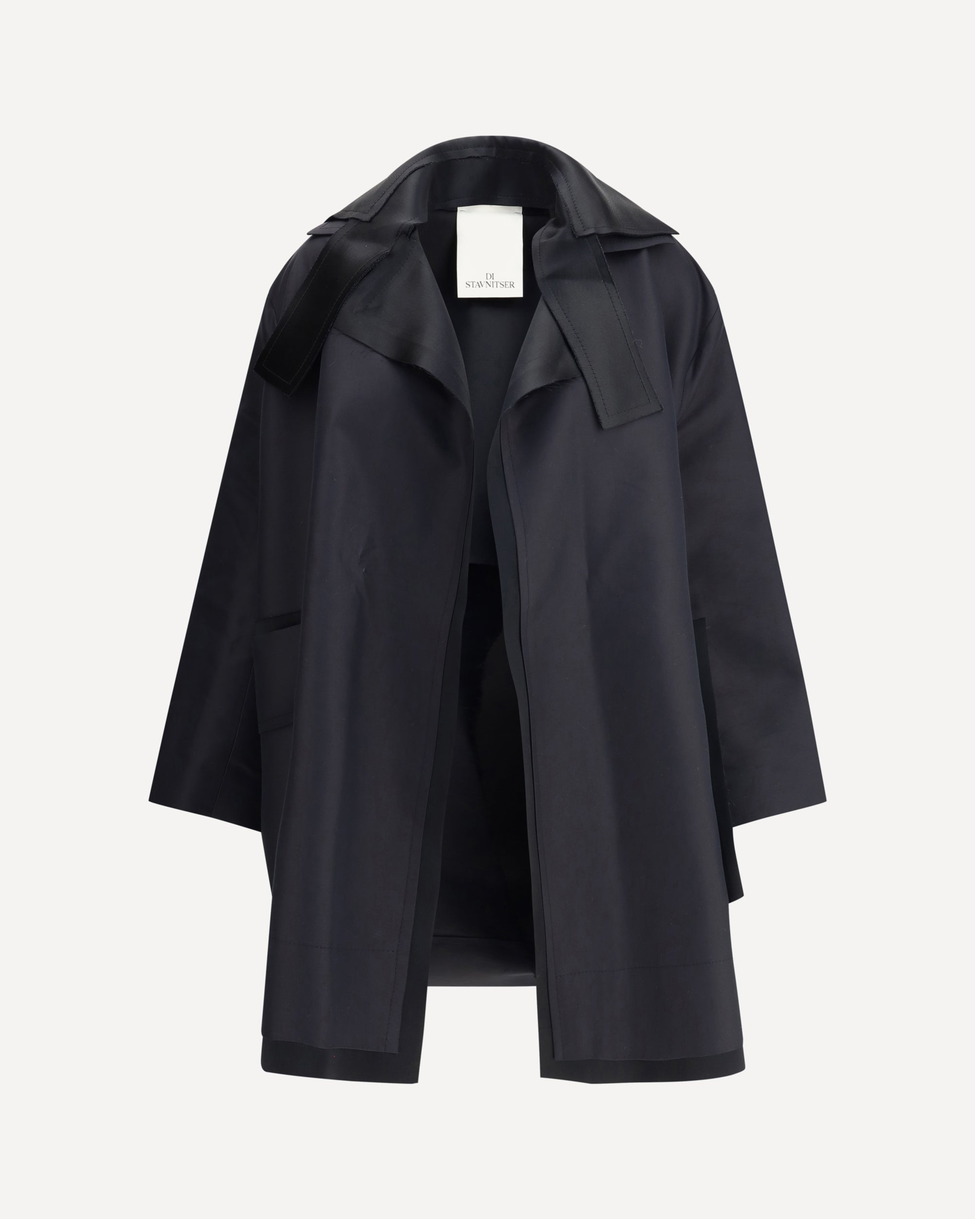 La Giacca Fina di Di Stavnitser è un capo dallo stile deciso e contemporaneo. Caratterizzata da un ampio revers e da un taglio oversize, presenta due tasche applicate sul fronte con patta e un orlo tagliato a vivo, che aggiunge un tocco grezzo e sofisticato al tempo stesso. Perfetta per completare look casual-chic con personalità.