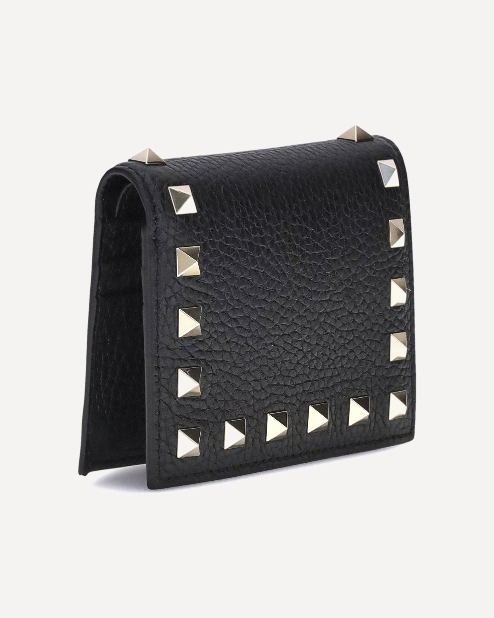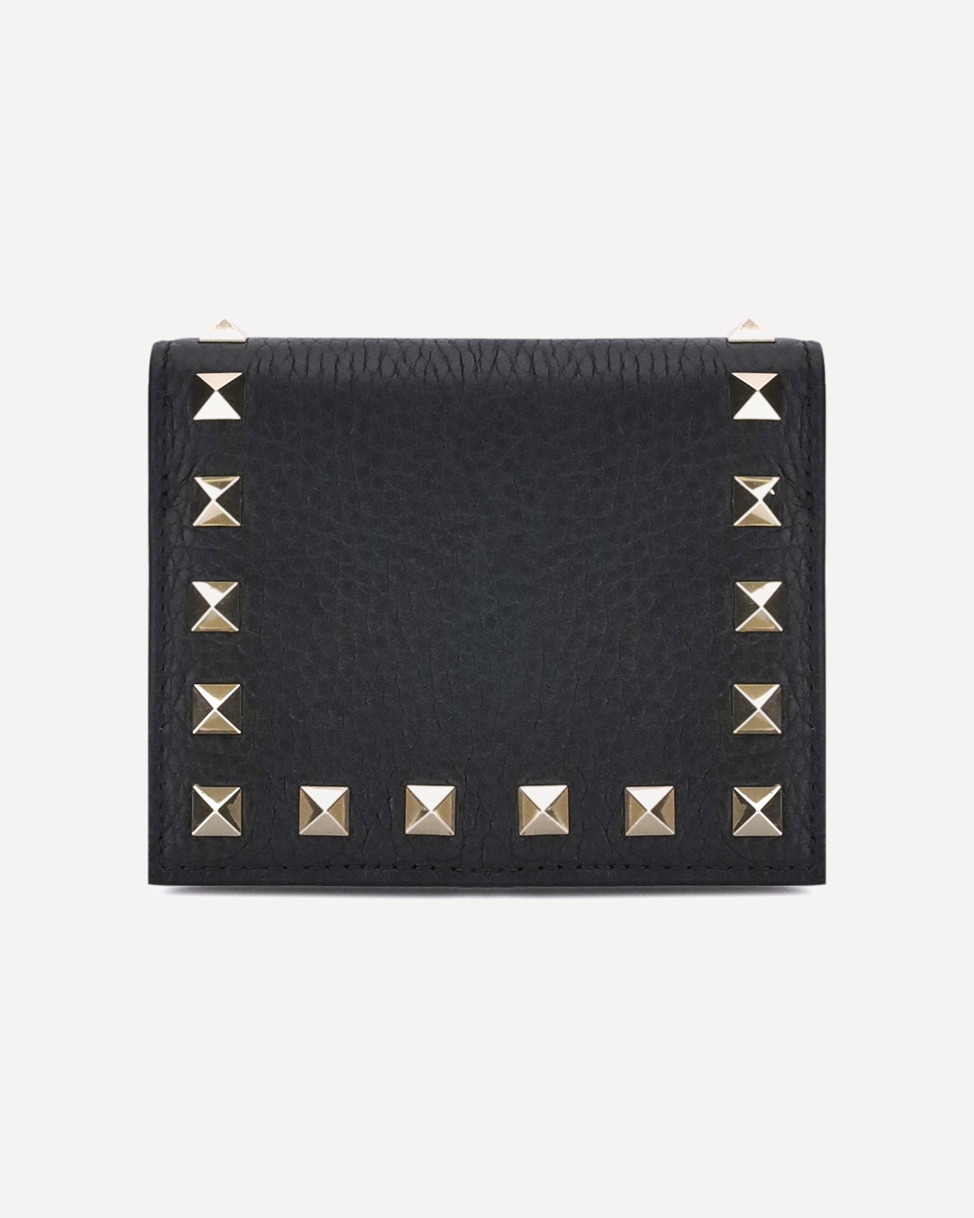 Il Portafogli Rockstud di Valentino Garavani è un accessorio elegante e dal carattere deciso, ideale per chi cerca stile e funzionalità in un formato compatto. Realizzato in pregiata pelle martellata, si distingue per l’inconfondibile profilo decorato con le iconiche borchie Rockstud, simbolo del brand. Il modello bifold è dotato di sei slot porta carte, uno scomparto per banconote e un pratico porta monete con chiusura a cerniera, offrendo una perfetta organizzazione degli spazi. La chiusura interna con bottone automatico garantisce sicurezza e praticità.