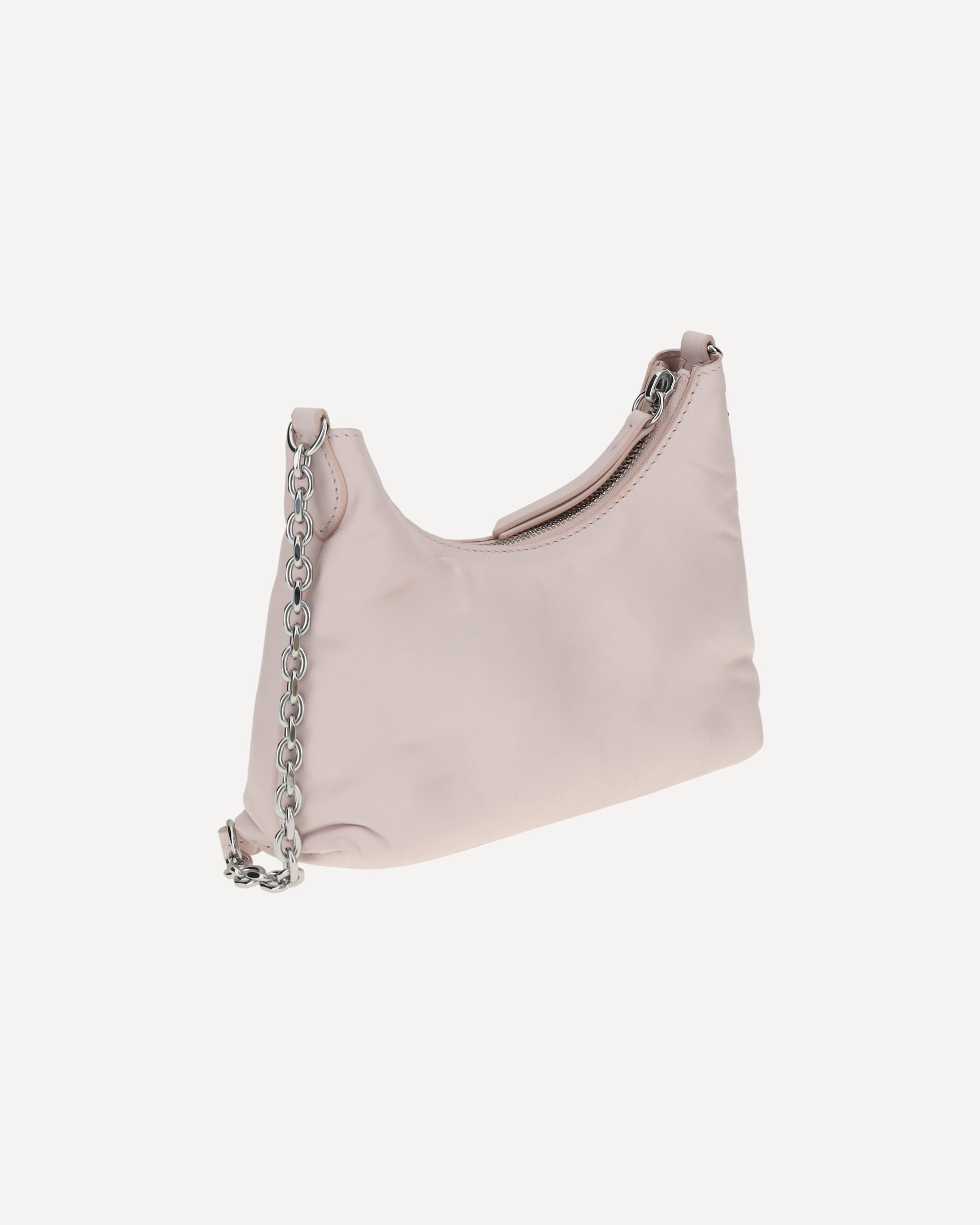 La Borsa a Tracolla Glam Slam Hobo in pelle di Margiela unisce un design sofisticato e funzionalità. Realizzata in pelle di alta qualità, presenta una tracolla a catena regolabile con dettaglio in pelle per un comfort personalizzato. La chiusura superiore con cerniera a doppio cursore garantisce praticità e sicurezza, mentre la tasca interna piatta aggiunge ulteriore spazio per gli oggetti essenziali. Il design imbottito dona una struttura morbida e avvolgente, mentre l’iconico patch con la firma e il monogramma ricamato sul fronte ne esalta l’autenticità e l’eleganza distintiva.