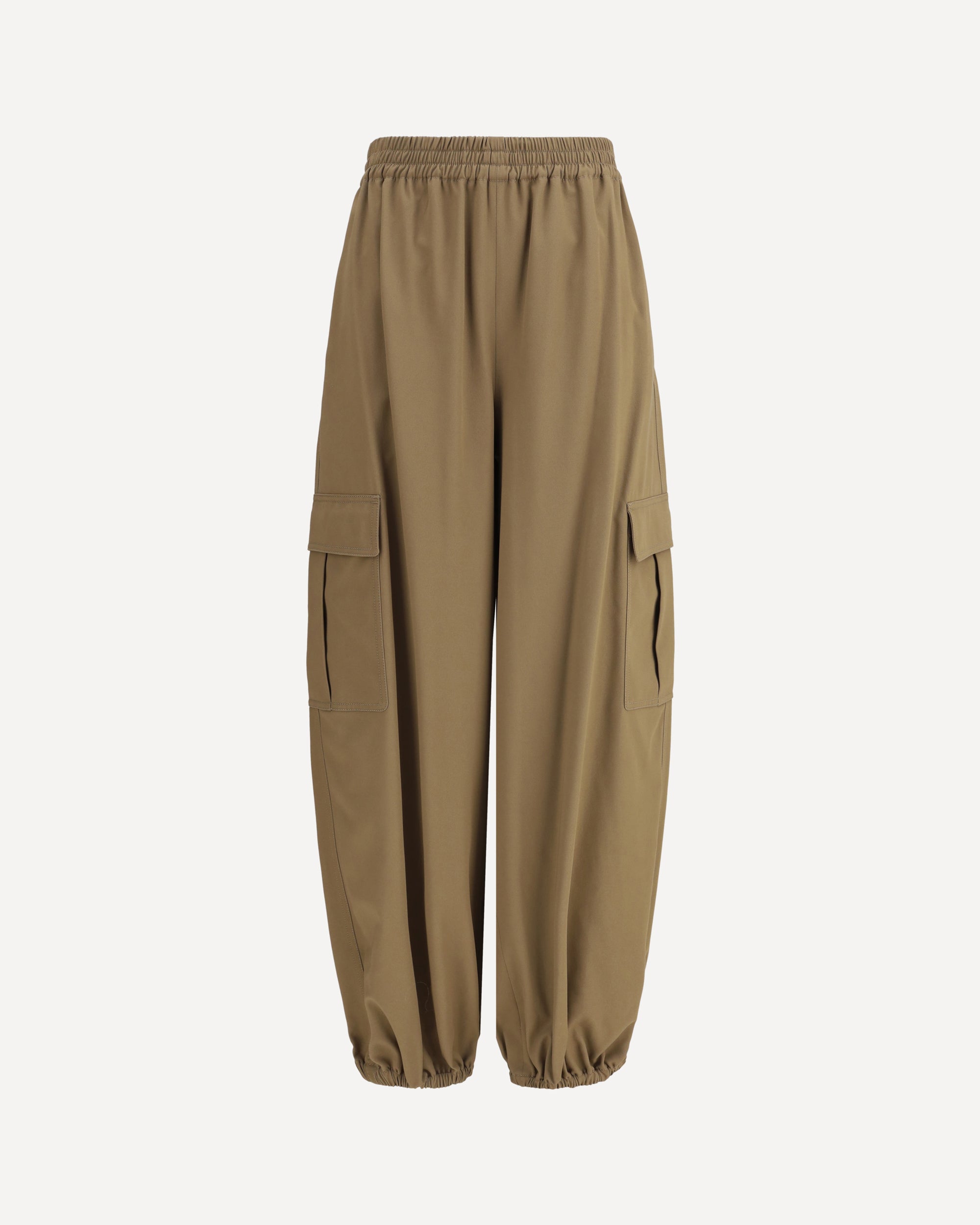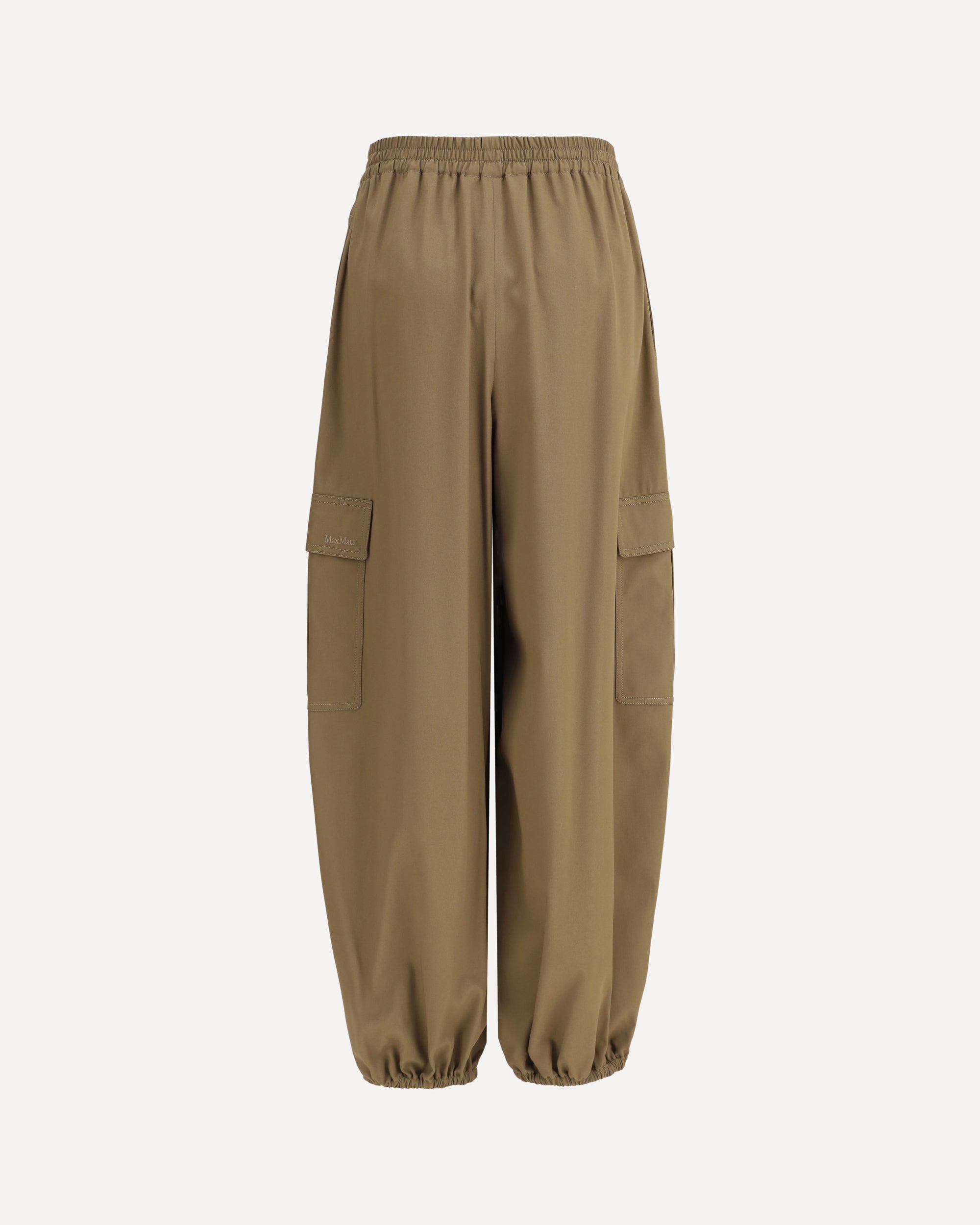 I Pantaloni Glauco di Max Mara sono un modello baggy a vita alta, pensato per coniugare comfort e stile contemporaneo. Realizzati in twill di puro cotone fluido, presentano vita e caviglie elasticizzate per una vestibilità pratica e dinamica. La gamba ampia dona movimento alla silhouette, mentre le tasche inserite nei fianchi e le tasche cargo con patta aggiungono un tocco utility. Completa il design il logo Max Mara ricamato sulla tasca sinistra, discreto ma distintivo.