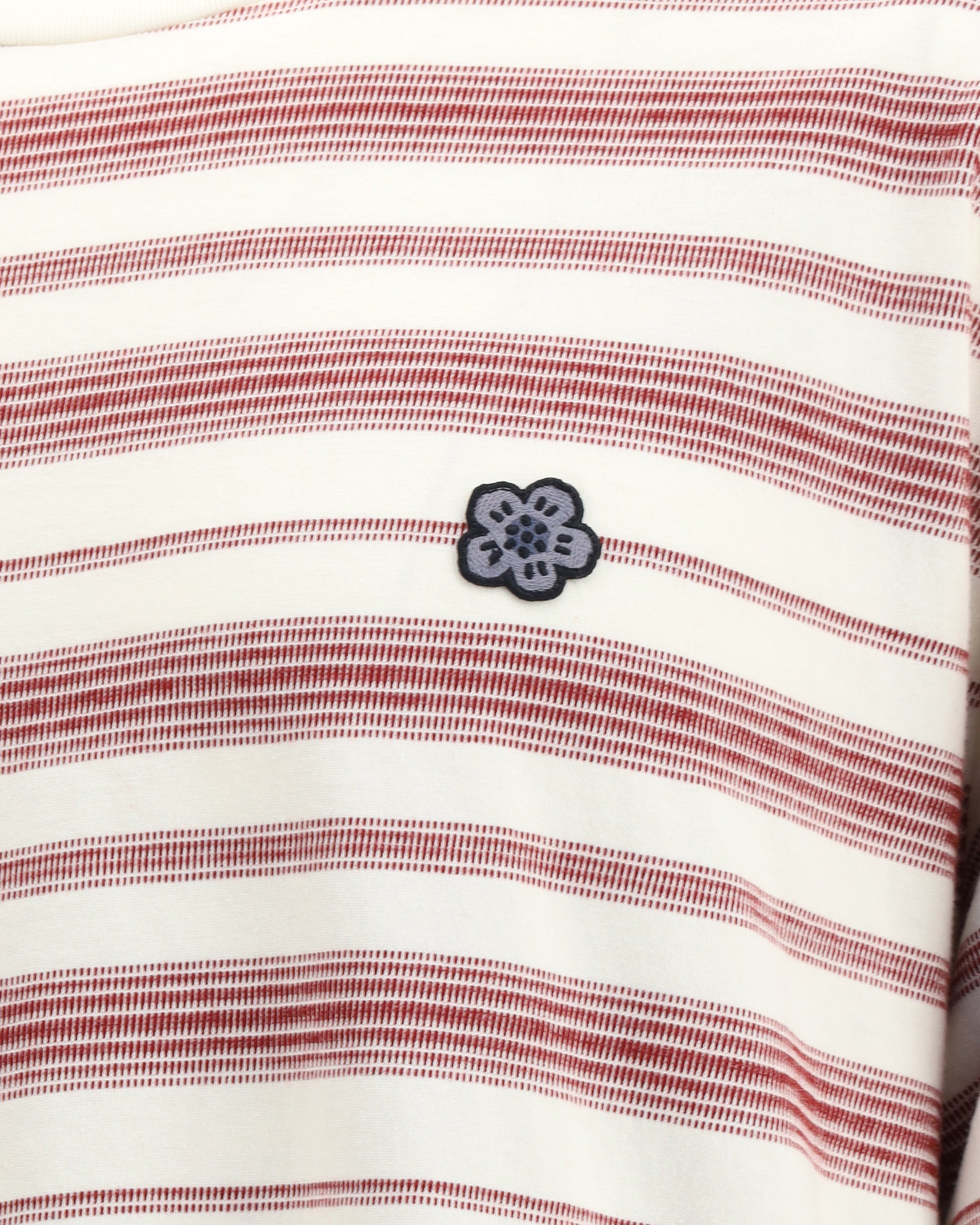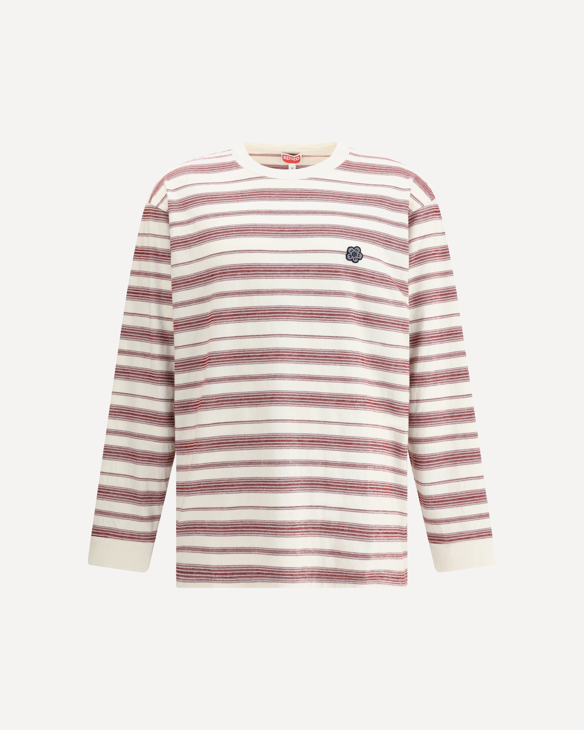 Maglia a Maniche Lunghe in cotone di Kenzo, caratterizzata da un girocollo a costine e una vivace fantasia a righe. Il design è impreziosito dall’iconico fiore applicato sul fronte, dettaglio distintivo che richiama l’estetica creativa del brand. Un capo dallo stile fresco e riconoscibile, ideale per aggiungere un tocco grafico al look quotidiano.