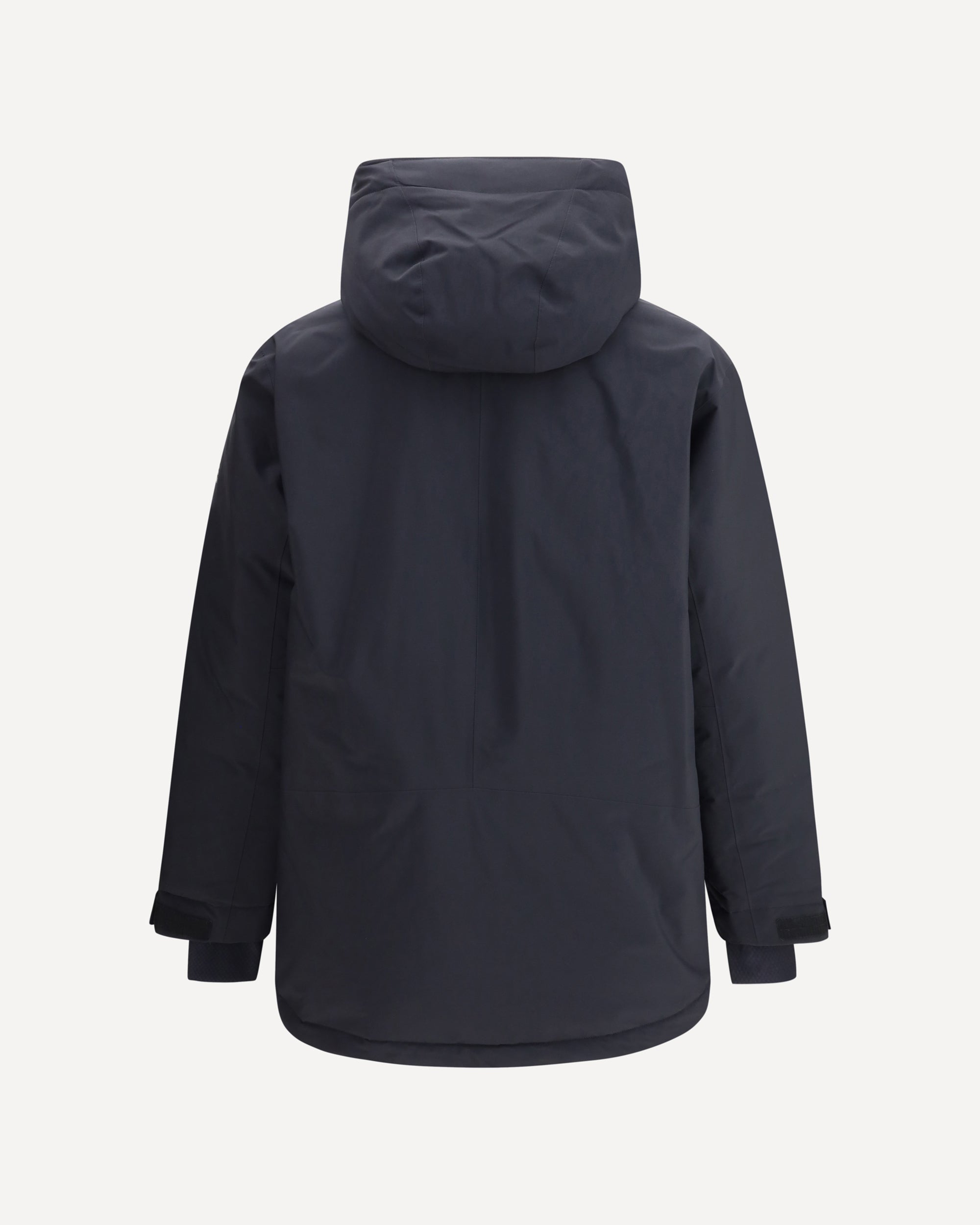 Il Parka Salomon X MM6 fonde estetica d’avanguardia e spirito tecnico in un equilibrio perfetto tra funzionalità e design. Realizzato in nylon water resistant e antivento, presenta un’imbottitura in piuma con trapuntatura orizzontale che garantisce calore e leggerezza. Il cappuccio con coulisse, la chiusura con zip a due vie e i dettagli termonastrati assicurano massima protezione dagli agenti atmosferici. Le tasche con zip, i polsini regolabili e il fondo con coulisse definiscono una vestibilità rilassata e contemporanea. Le iconiche impunture bianche sul retro e l’etichetta Salomon X MM6 sulla manica completano un capo che celebra l’incontro tra innovazione outdoor e ricerca stilistica.