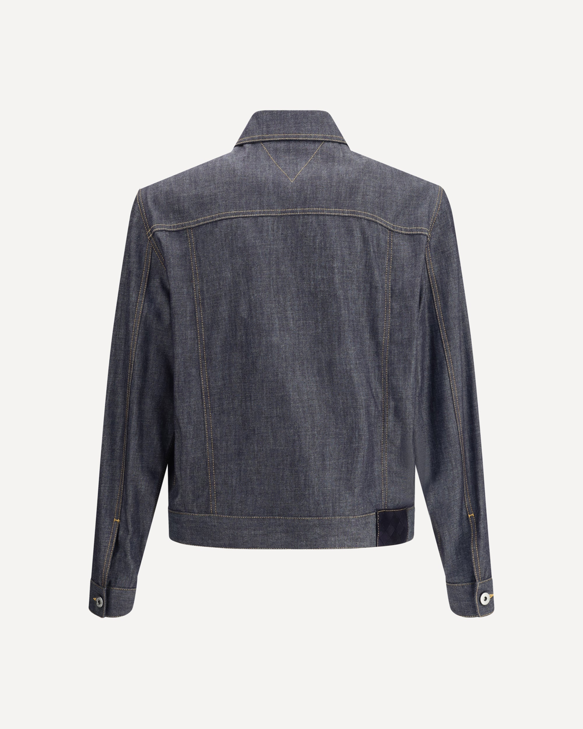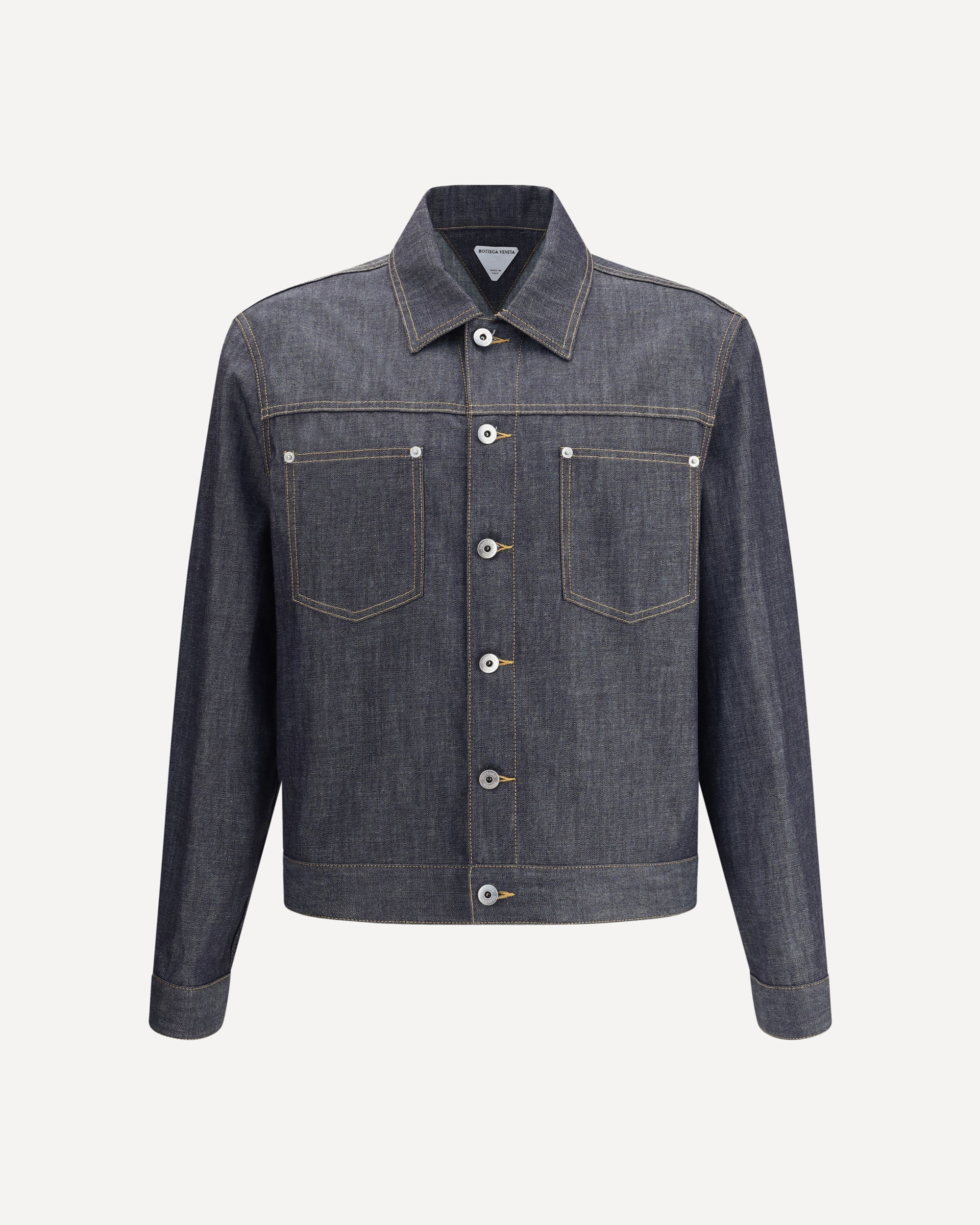 Giacca in cotone di Bottega Veneta dal design ispirato al denim, perfetta per uno stile casual ma ricercato. Dotata di colletto classico, chiusura frontale con bottoni e polsini regolabili con bottoncino, combina funzionalità e stile. Completano il capo due tasche frontali con patta applicata, per un look strutturato e contemporaneo.